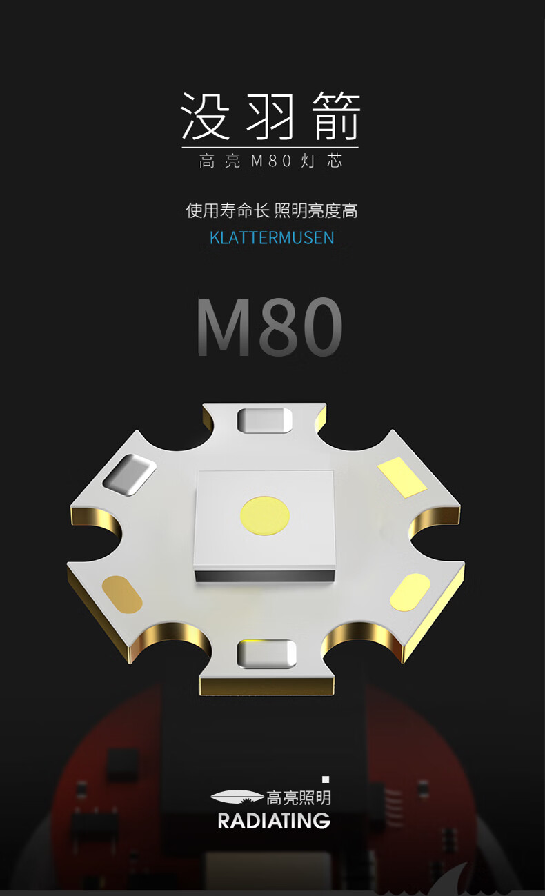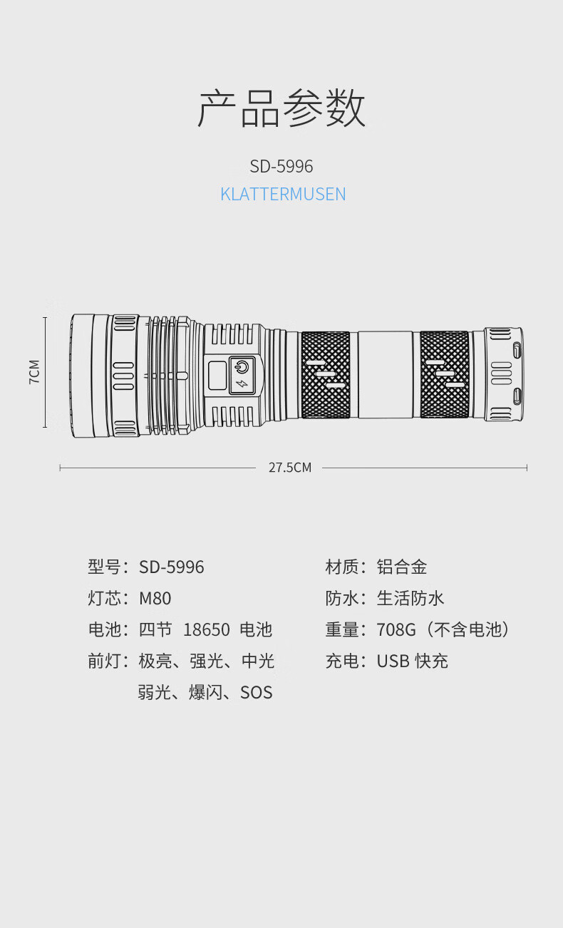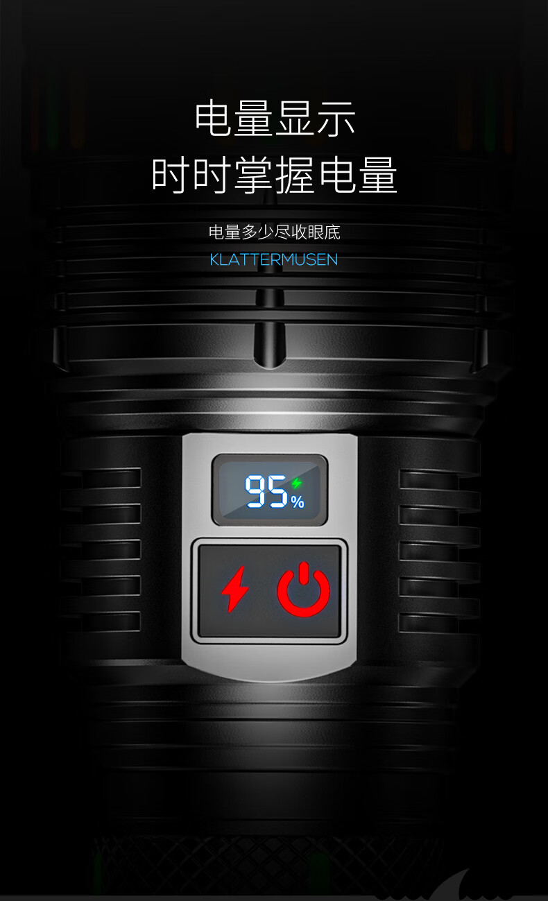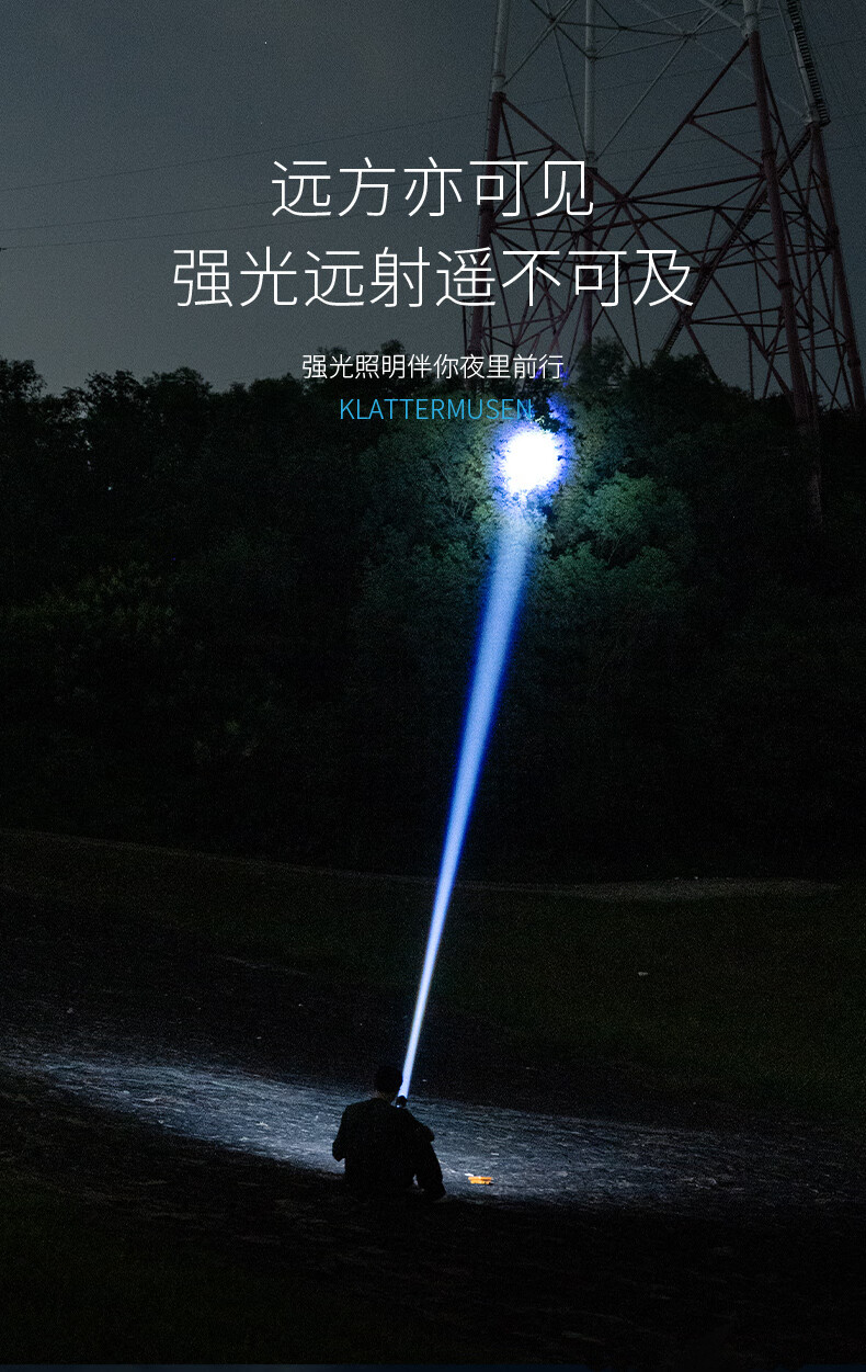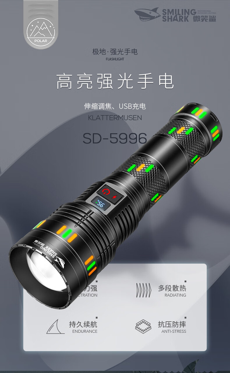 微笑鲨夜魂强光手电筒超长续航户外充电应急灯家用变焦远射激光探照灯 夜光长款-M80灯芯【8电】