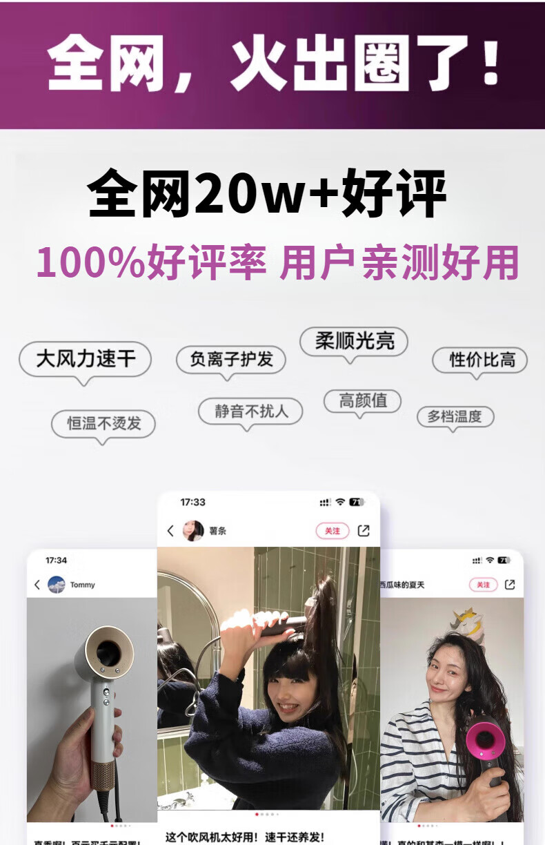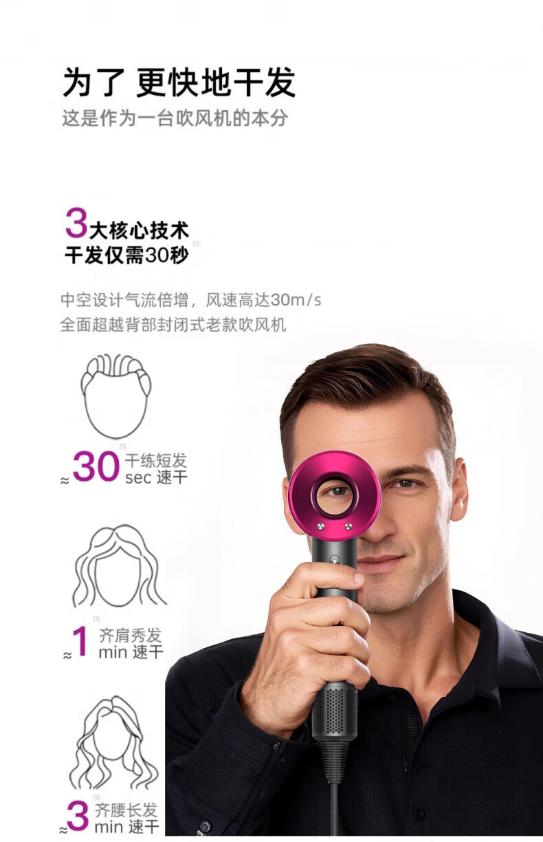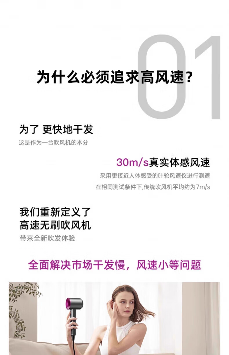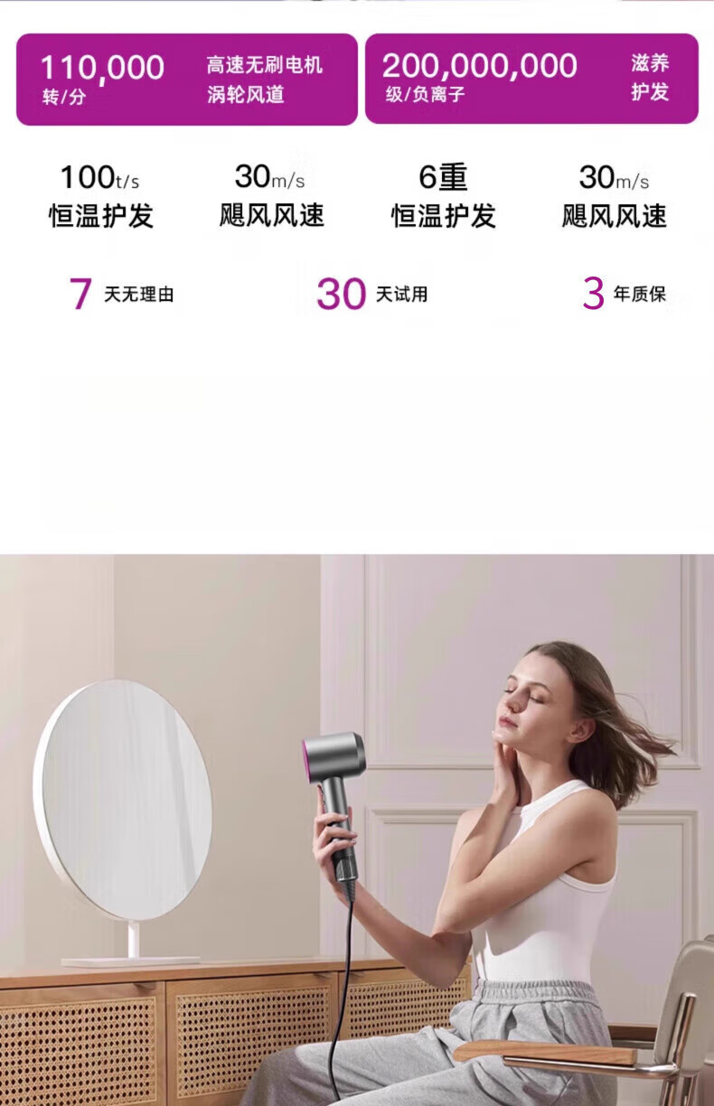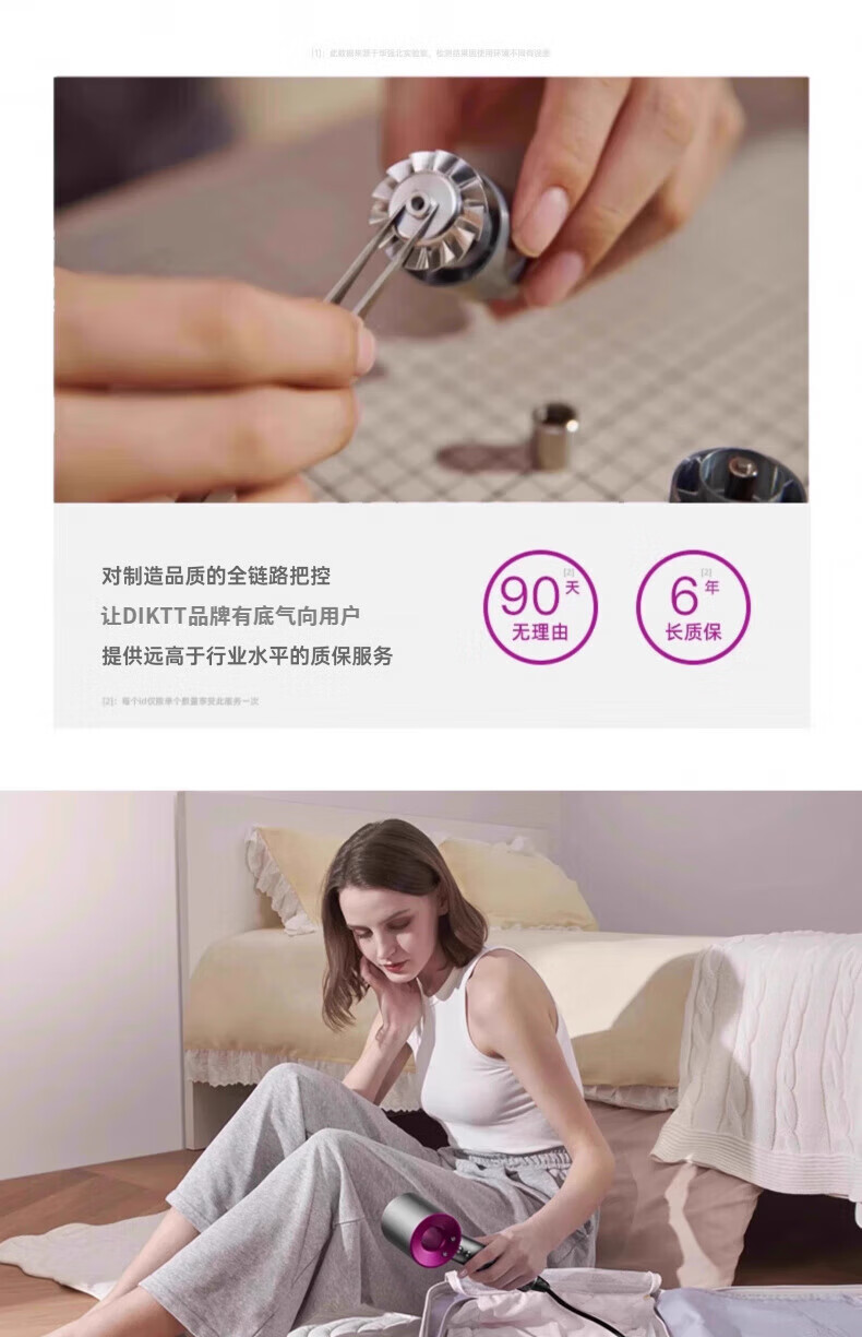 DIKTT【德国】无叶高速电吹风机恒温吹风筒速干家用静音大功率不伤发婴儿理发店发廊吹风机华强北 玫红色 单风嘴 30亿负离子 520情人节礼物