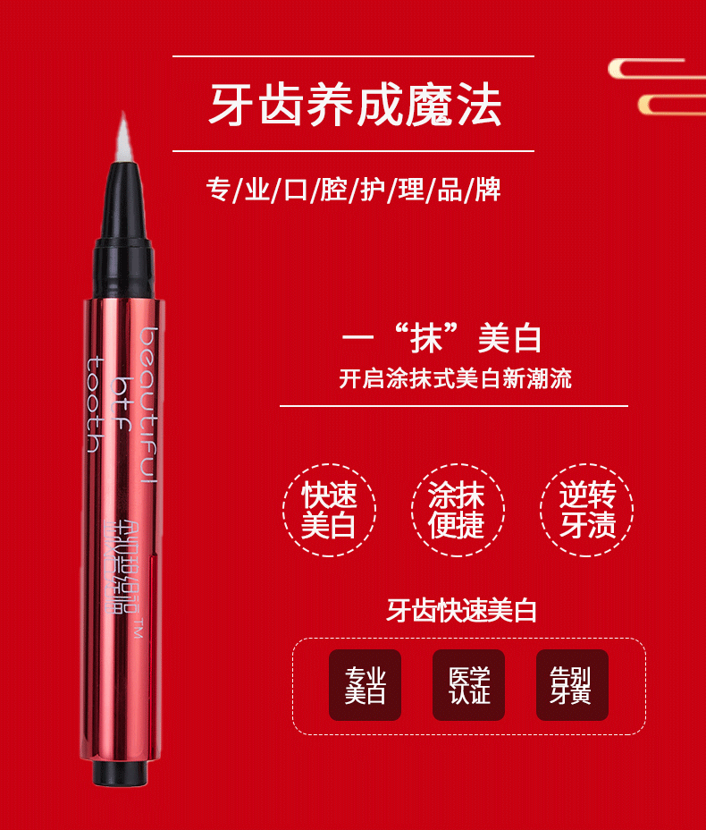 碧缇福美牙笔液体牙贴夜间牙齿美白精华涂抹凝胶去黄去渍非美牙白仪牙膏 美白精华笔2支