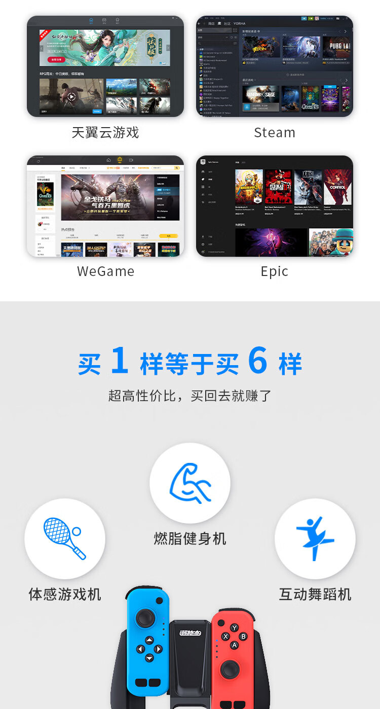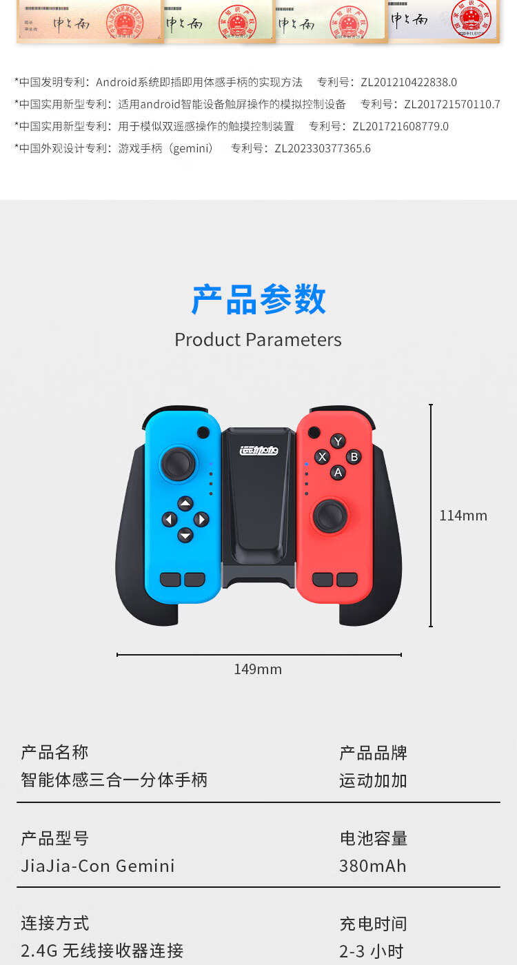 运动加加Gemini智能体感三合一分体手柄体感互动健身跳舞云游戏3A大作2.4G无线即插即用 运动加加Gemini游戏手柄