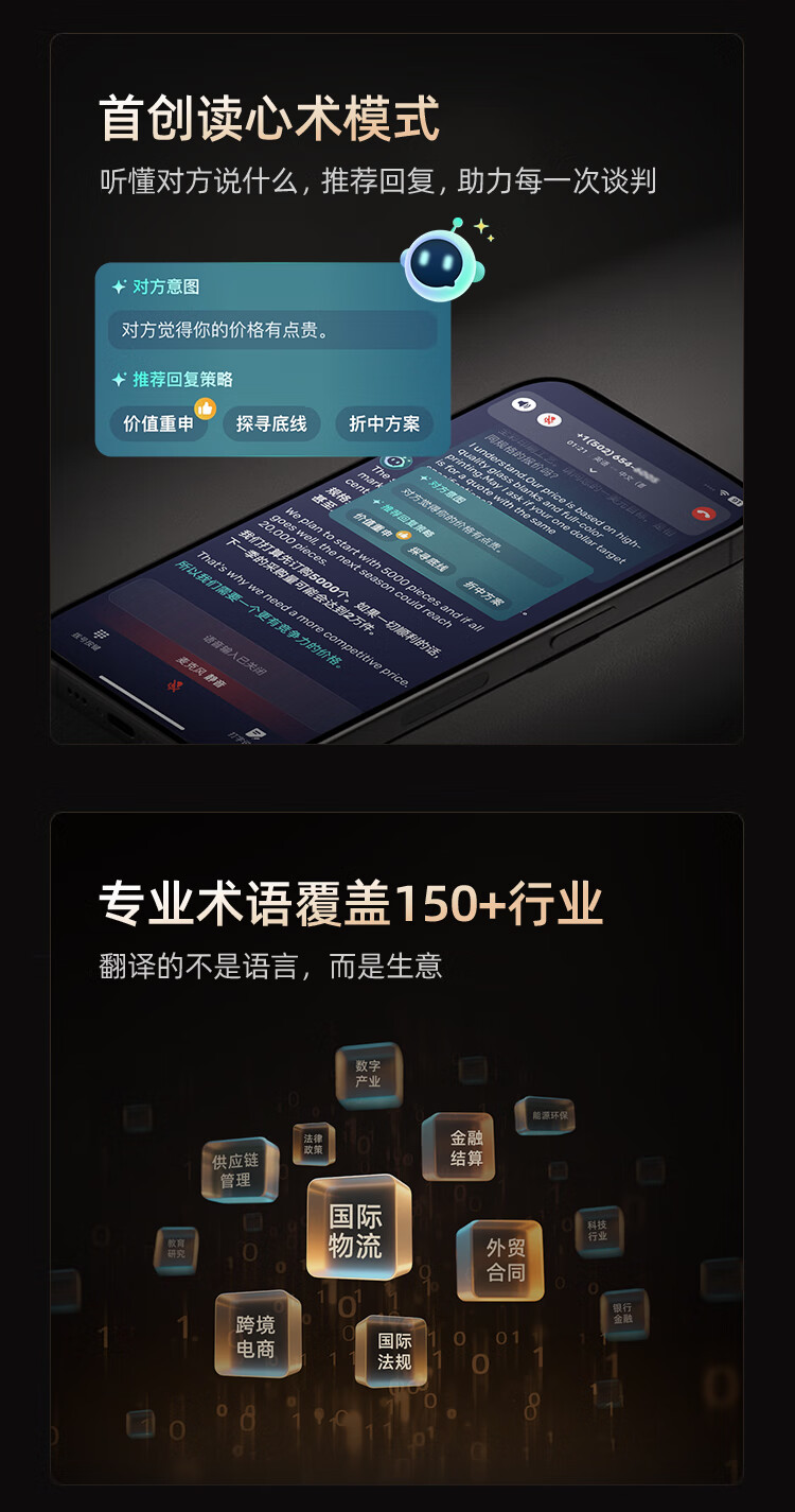 TRANSAIGENIE翻译耳机AI智能耳机实时同声传译电话视频展会洽谈外贸商务翻译神器挂耳式出国必备 黑色