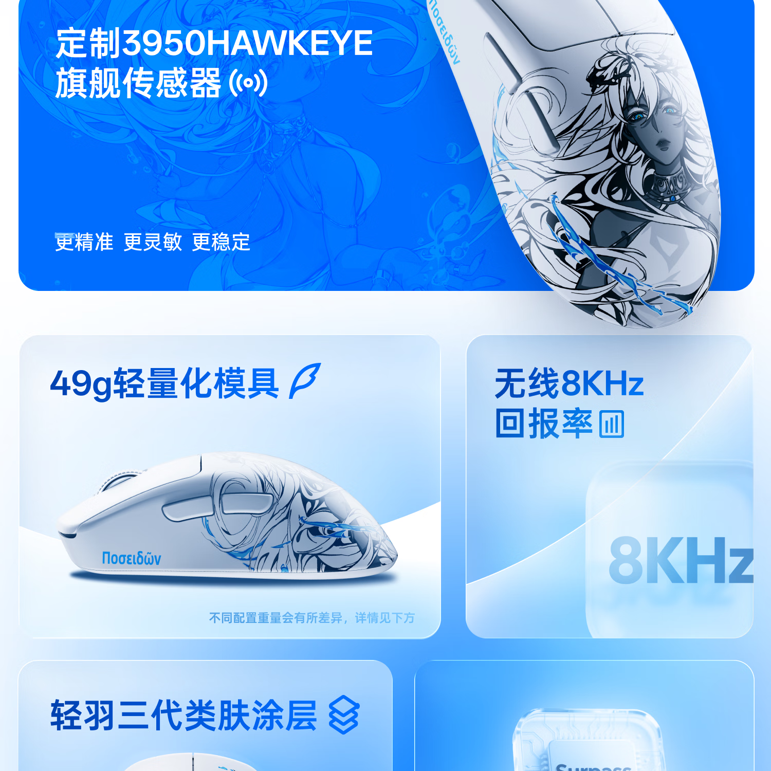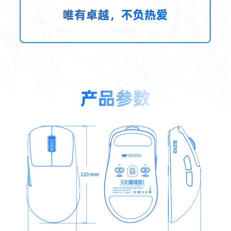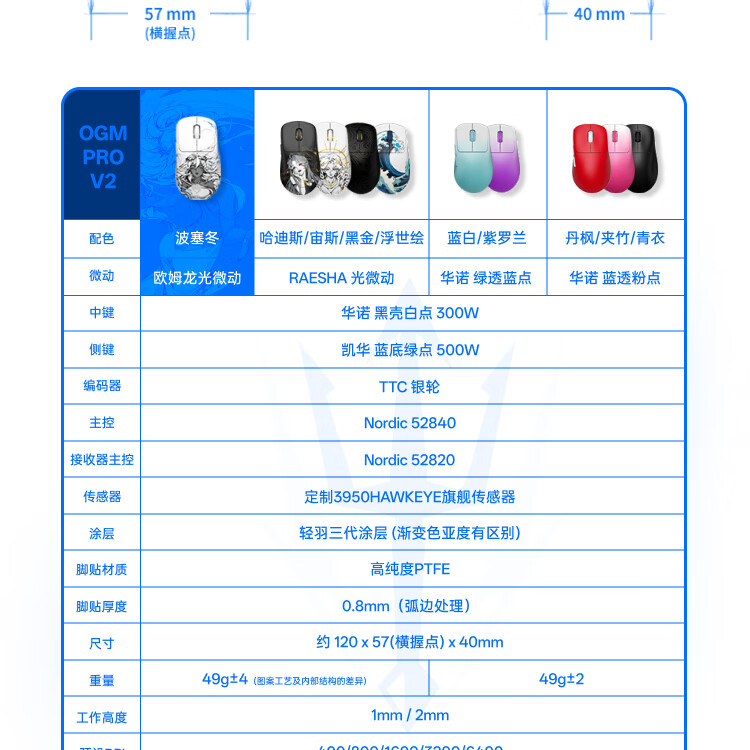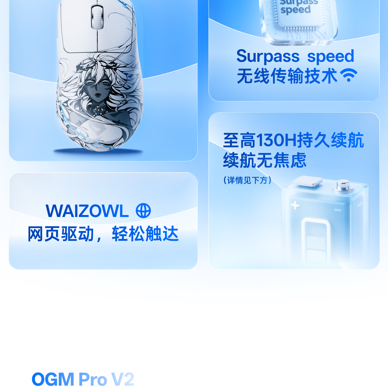 WAIZOWL唯卓 OGM PRO V2游戏鼠标 3950鼠标 无线蓝牙三模电竞鼠标 轻量化人体工学鼠 支持8K回报率 csgo OGM Pro V2浮世绘-光微动