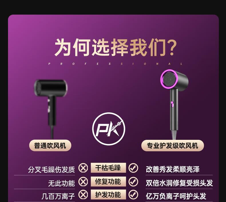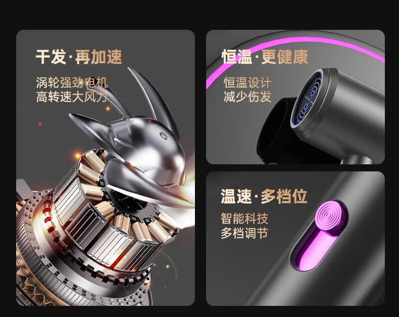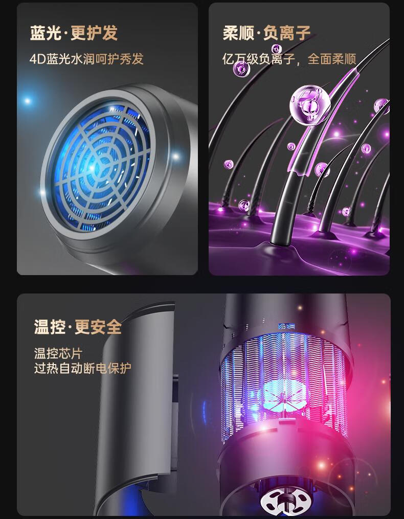 小米宝宝系列吹风机静音发廊负离子家用大功率不伤发宿舍 渐变粉【1800W】大风力+双层隔热