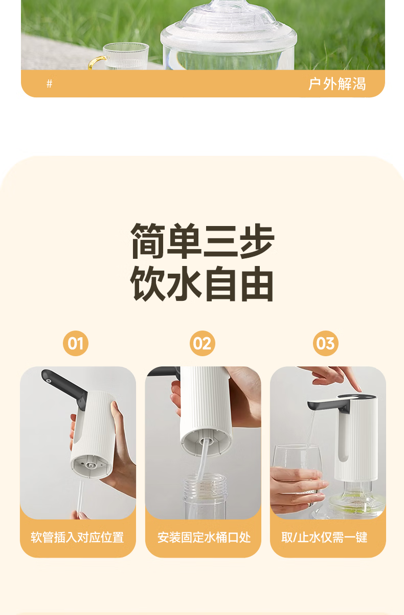 奥克斯桶装水抽水器电动饮水机家用取水器自动压水器纯净水抽水泵小型上水器矿泉水吸水器 【定量】秒速出水-大桶可用-折叠