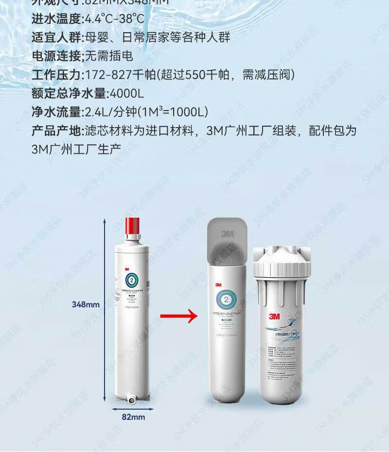 3M家用净水器DWS2500-C-CN滤芯原装替换滤芯通用DWS2596 2598 1868滤芯cc350【双支装补15%】 DWS2500滤芯