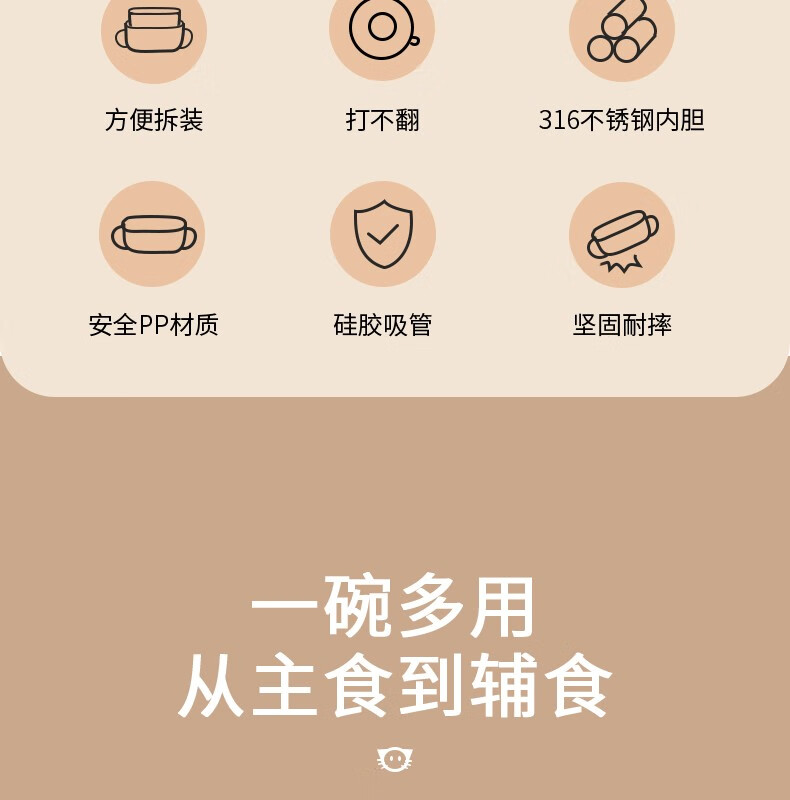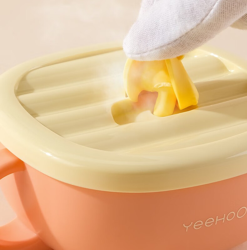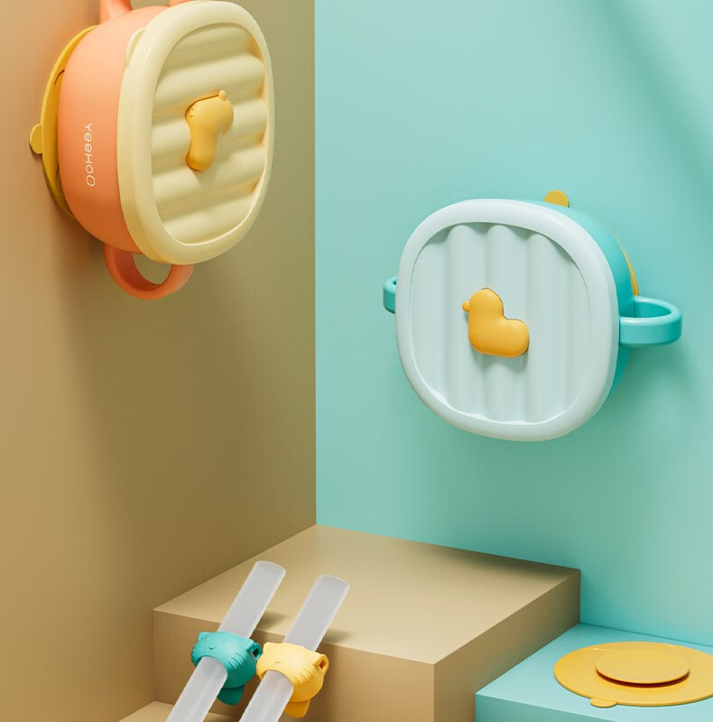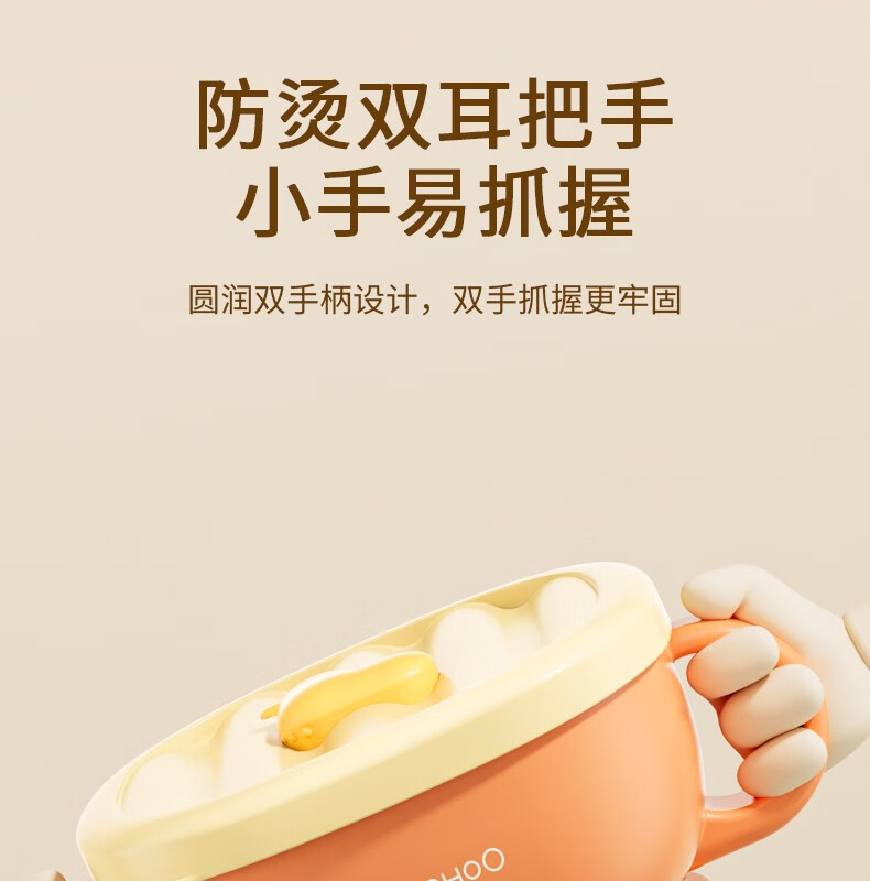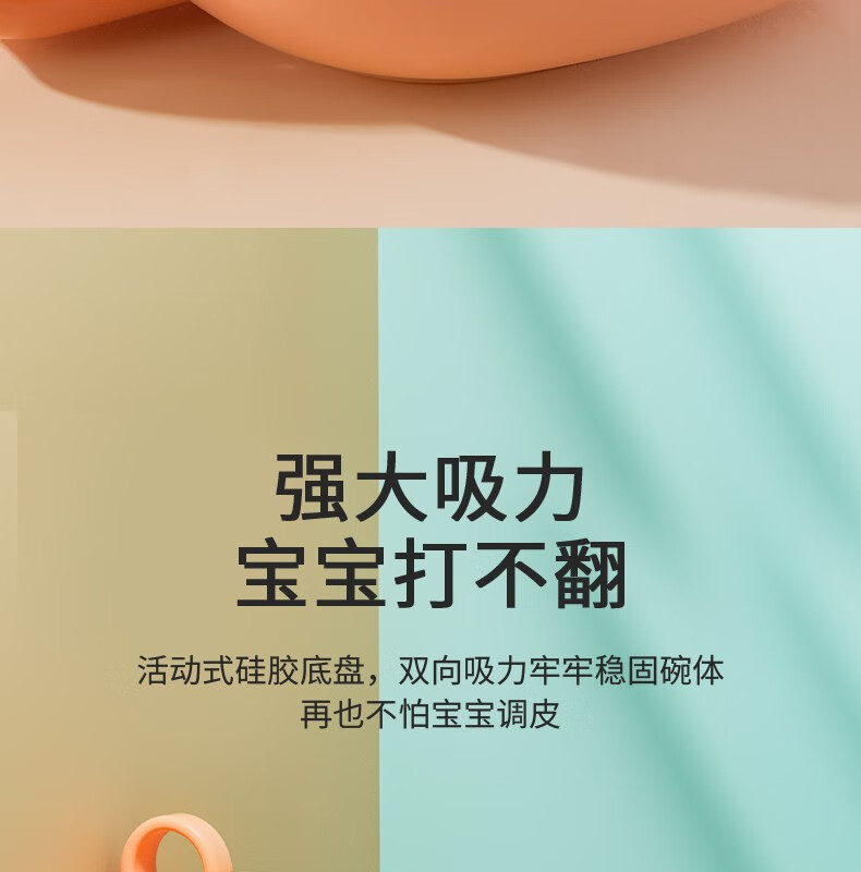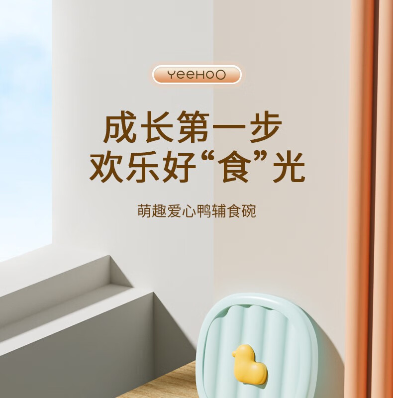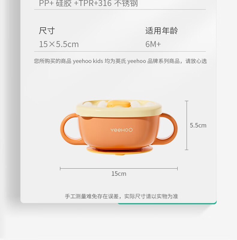 英氏(YEEHOO)宝宝吸管碗喝汤婴儿专用辅食碗吸盘碗三合一儿童吃饭餐具 典雅橙+吸管