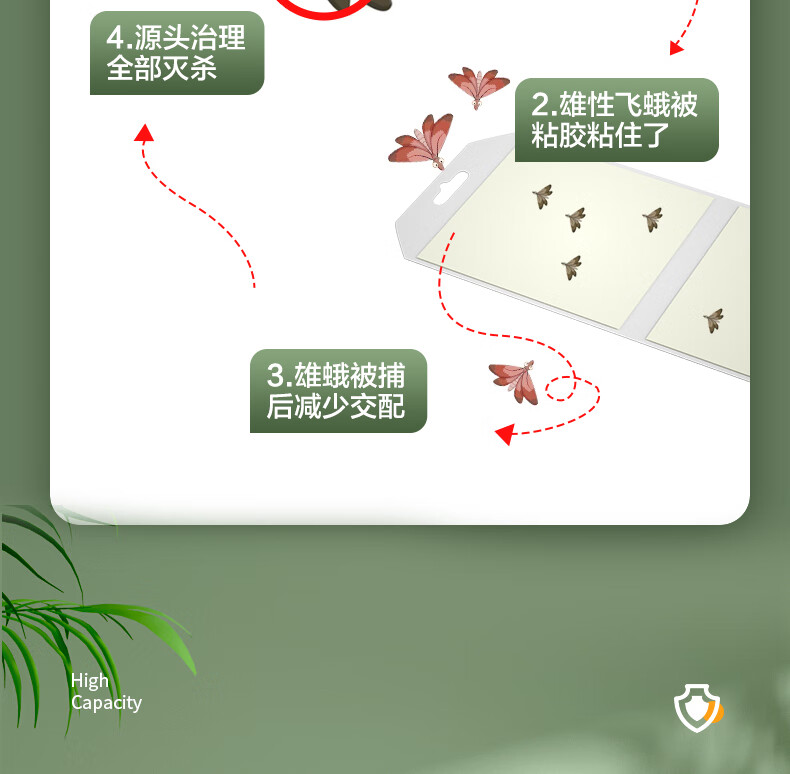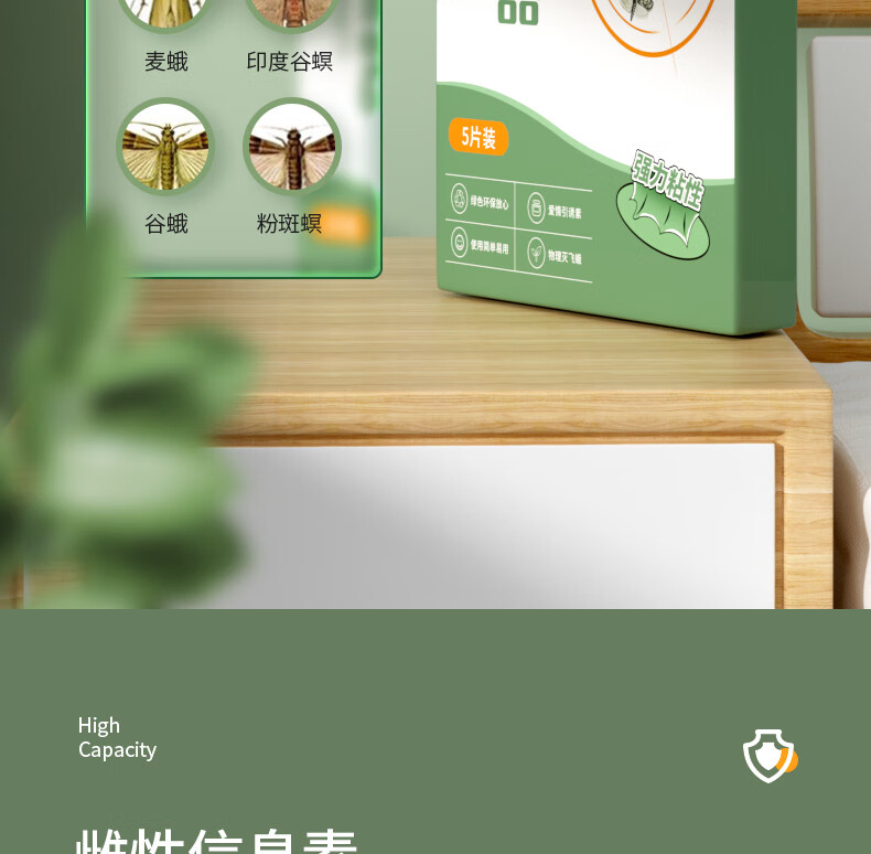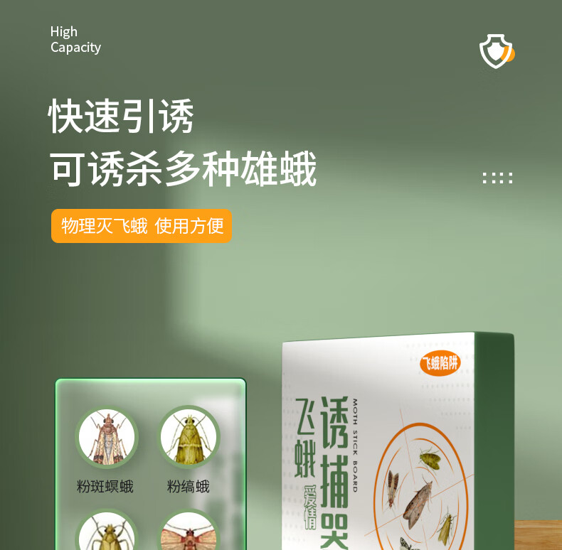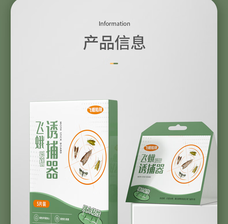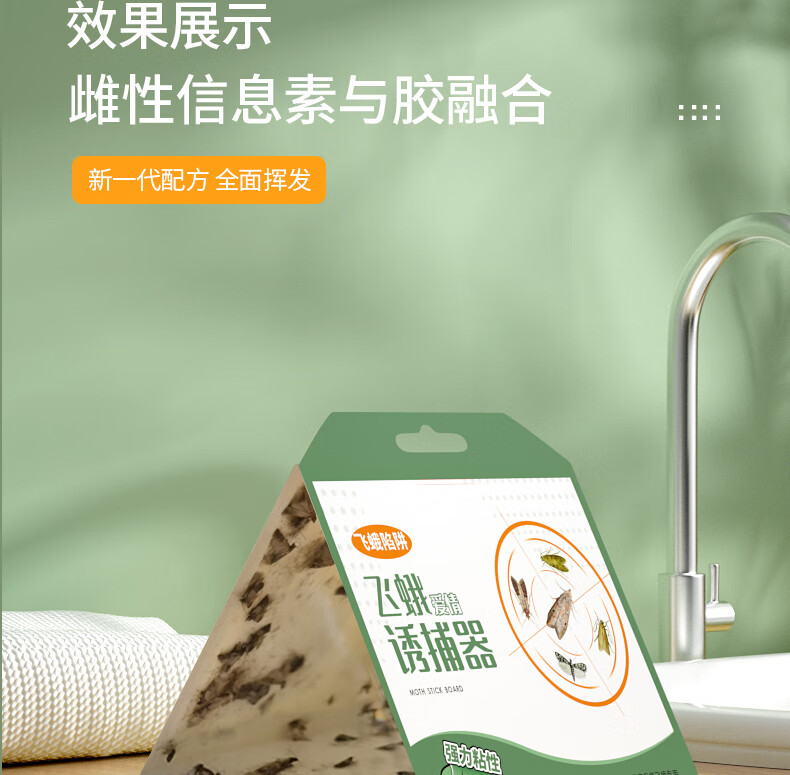 加品惠飞蛾诱捕器强效家用灭飞蛾衣蛾蚋蛾蠓米面蛾子粘板5片装QC-2066