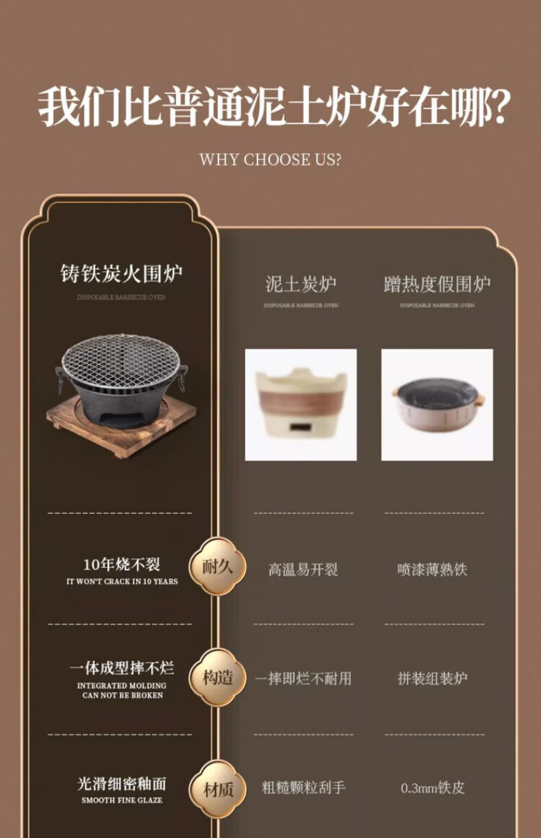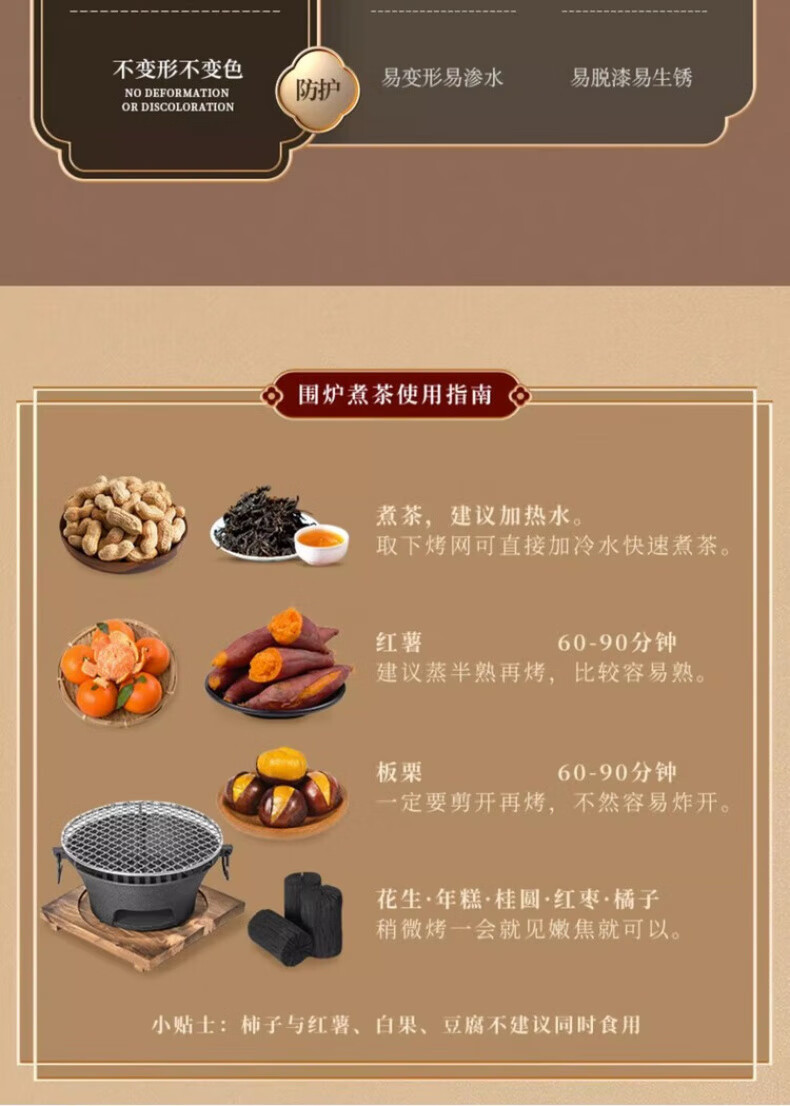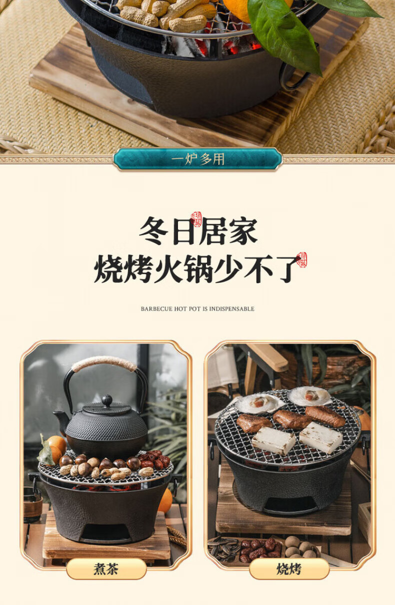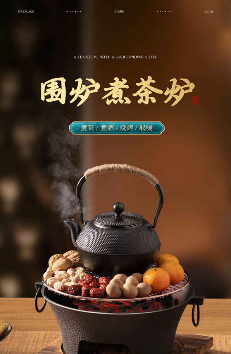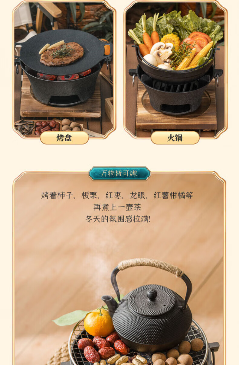 DEATKN德国茶壶围炉煮茶家用室内烤火炉套装器具全套围聚炉子冬日烧烤炉 【烤奶茶罐中号23cm全套】碳炉+烤奶茶罐+烤网+木底座