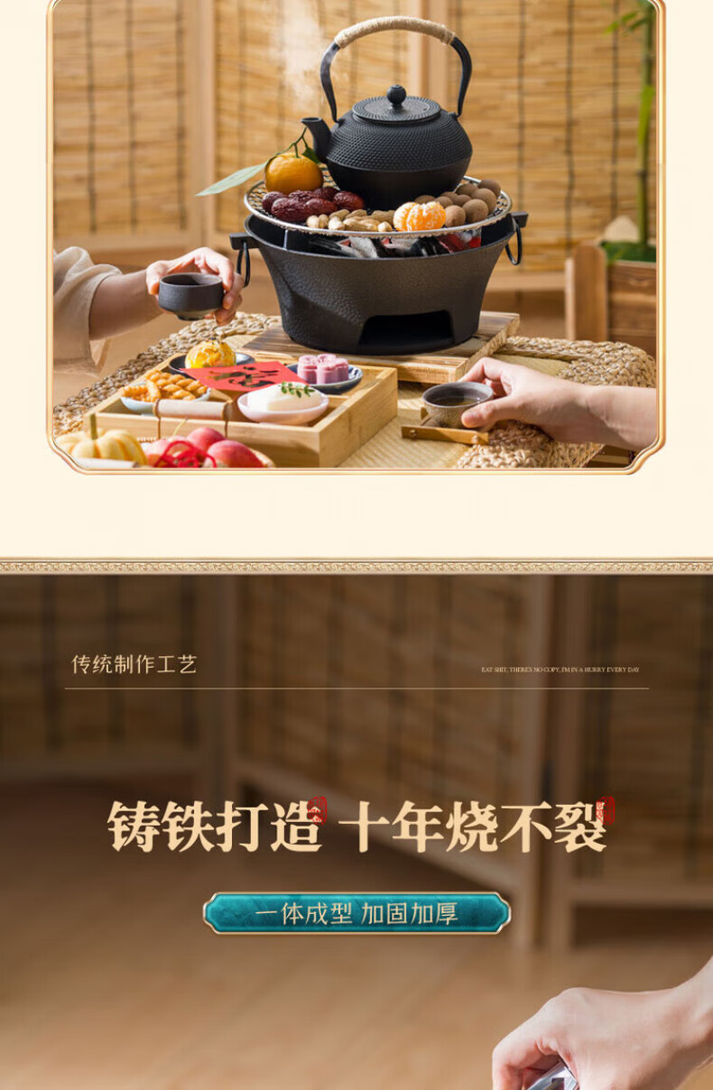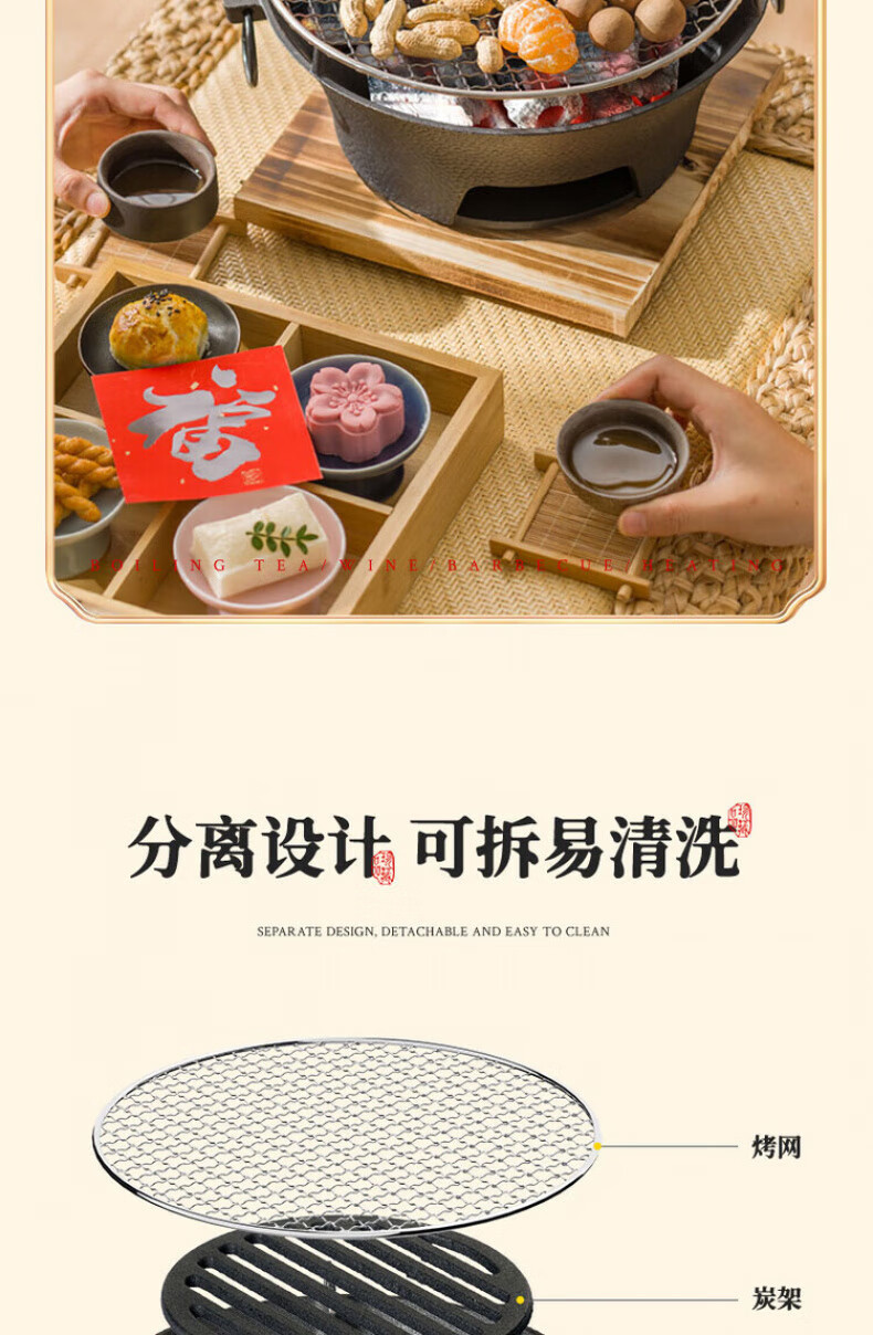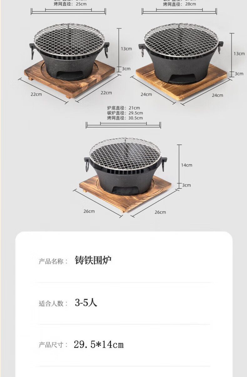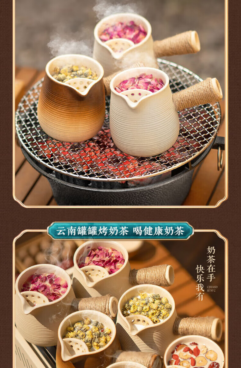 DEATKN德国茶壶围炉煮茶家用室内烤火炉套装器具全套围聚炉子冬日烧烤炉 【烤奶茶罐中号23cm全套】碳炉+烤奶茶罐+烤网+木底座