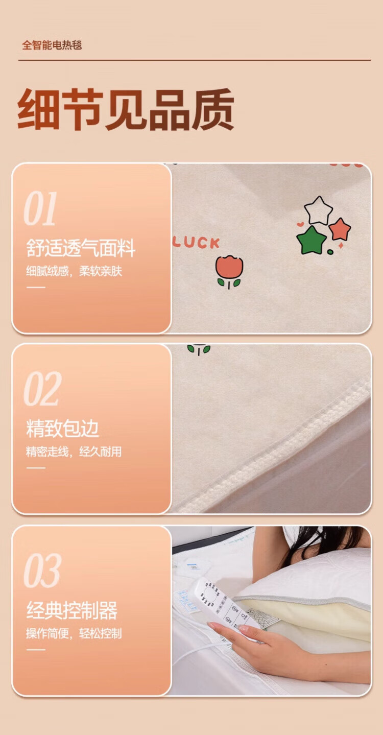 昕科电热毯单双人电褥子双控调温学生床安全家用多功能可水洗恒温定时 英伦格【180*150cm双温双控】