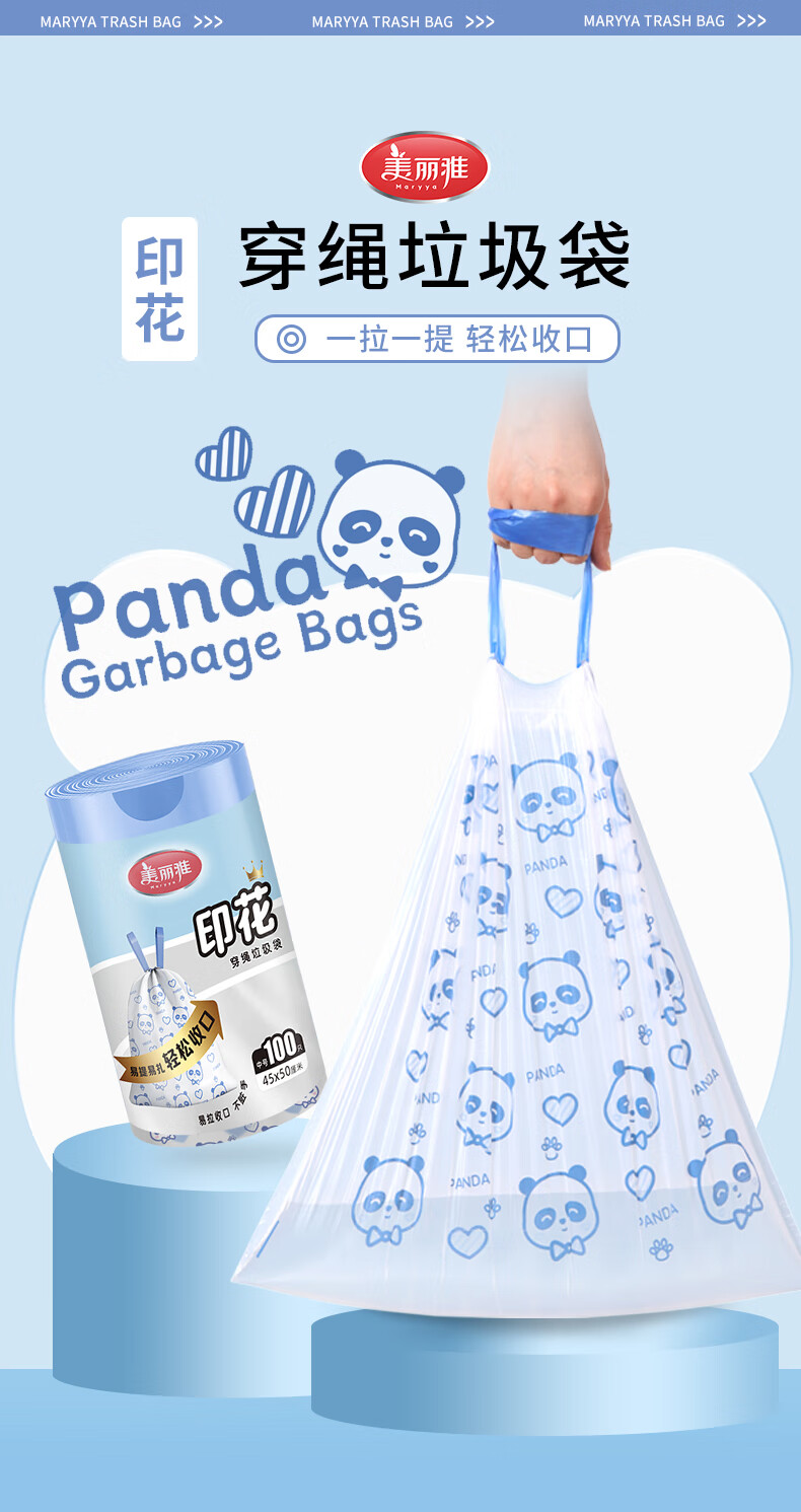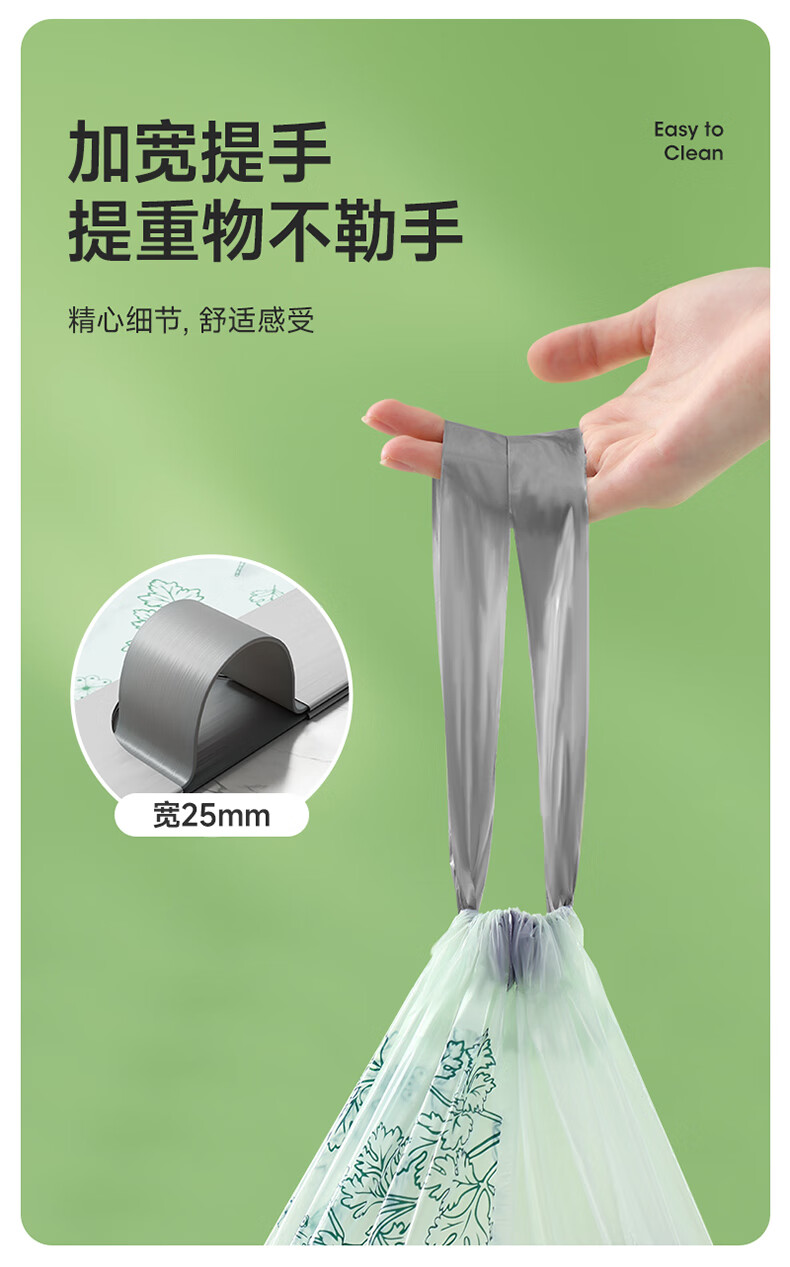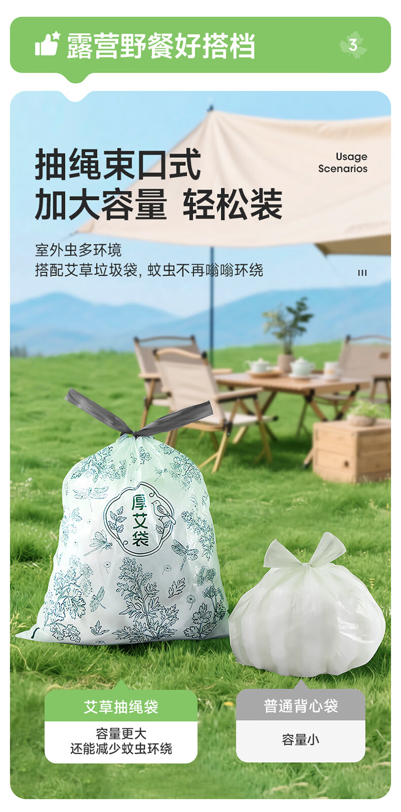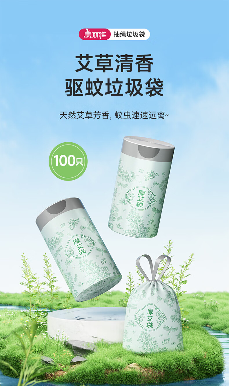 美丽雅(MARYYA)【任嘉伦同款】穿绳垃圾袋 手提式家用一次性抽绳塑料垃圾袋 【1.2丝】艾草垃圾袋45*50cm*100只
