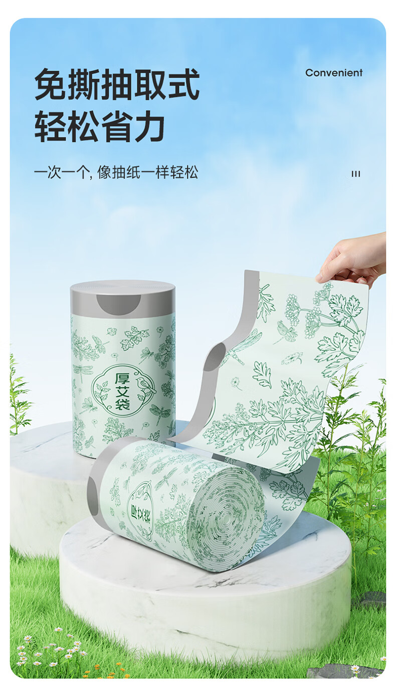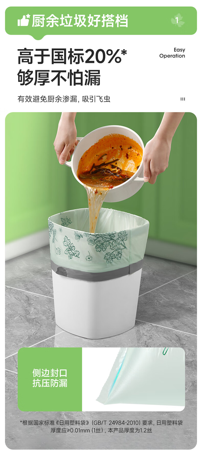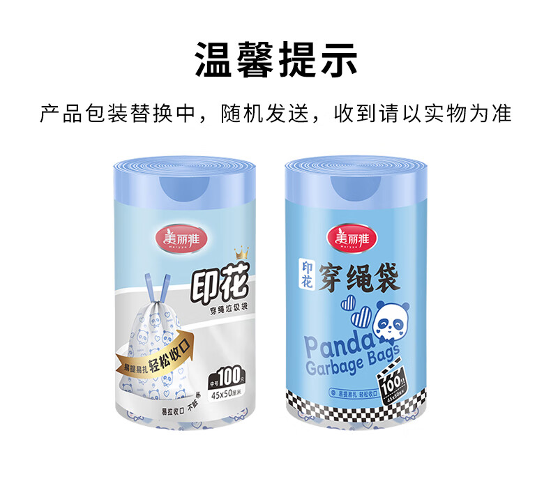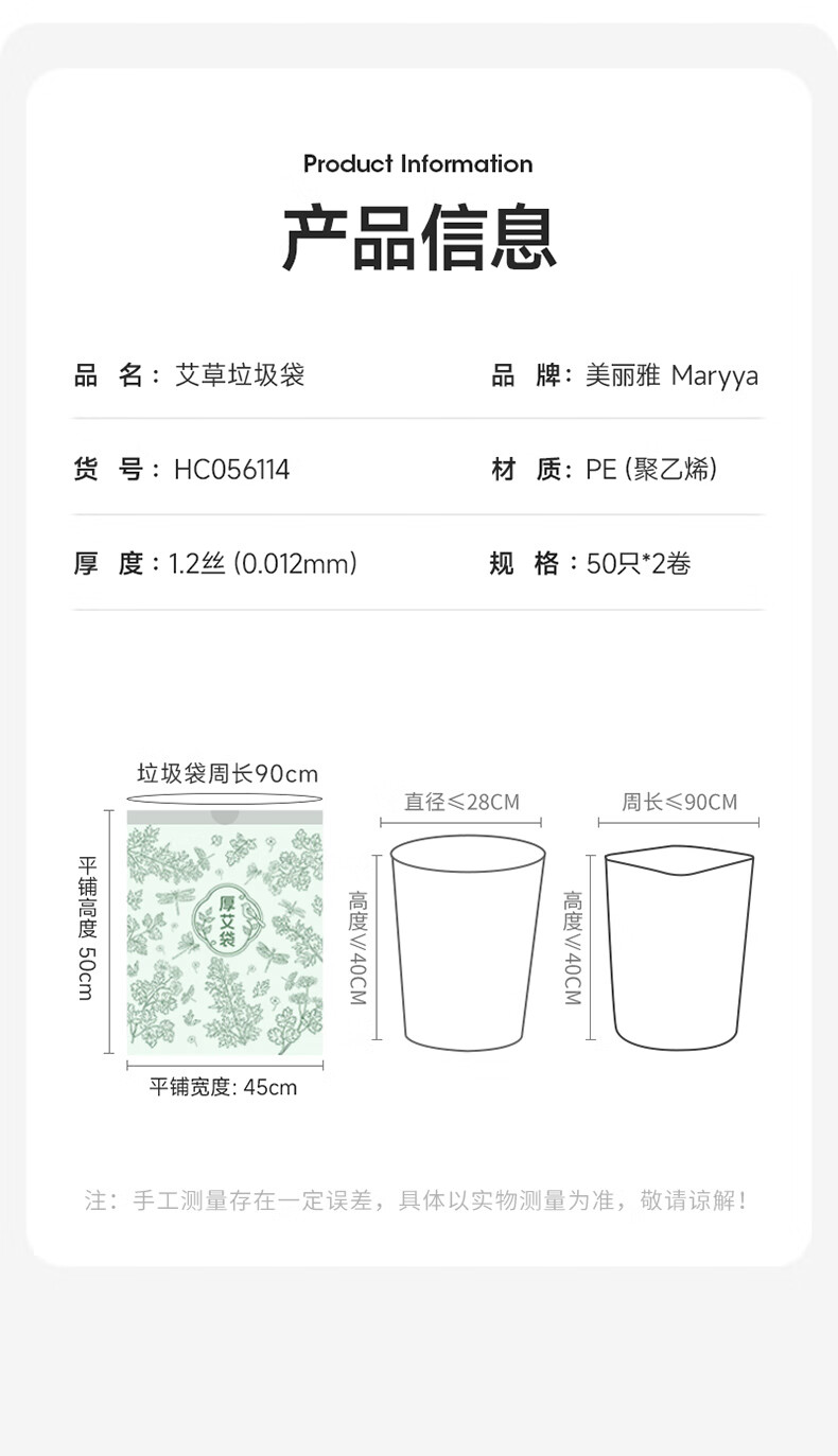 美丽雅(MARYYA)【任嘉伦同款】穿绳垃圾袋 手提式家用一次性抽绳塑料垃圾袋 【1.2丝】艾草垃圾袋45*50cm*100只