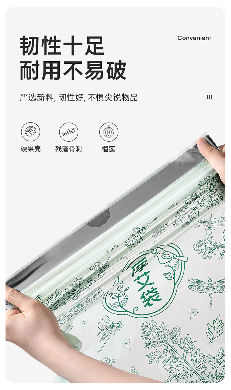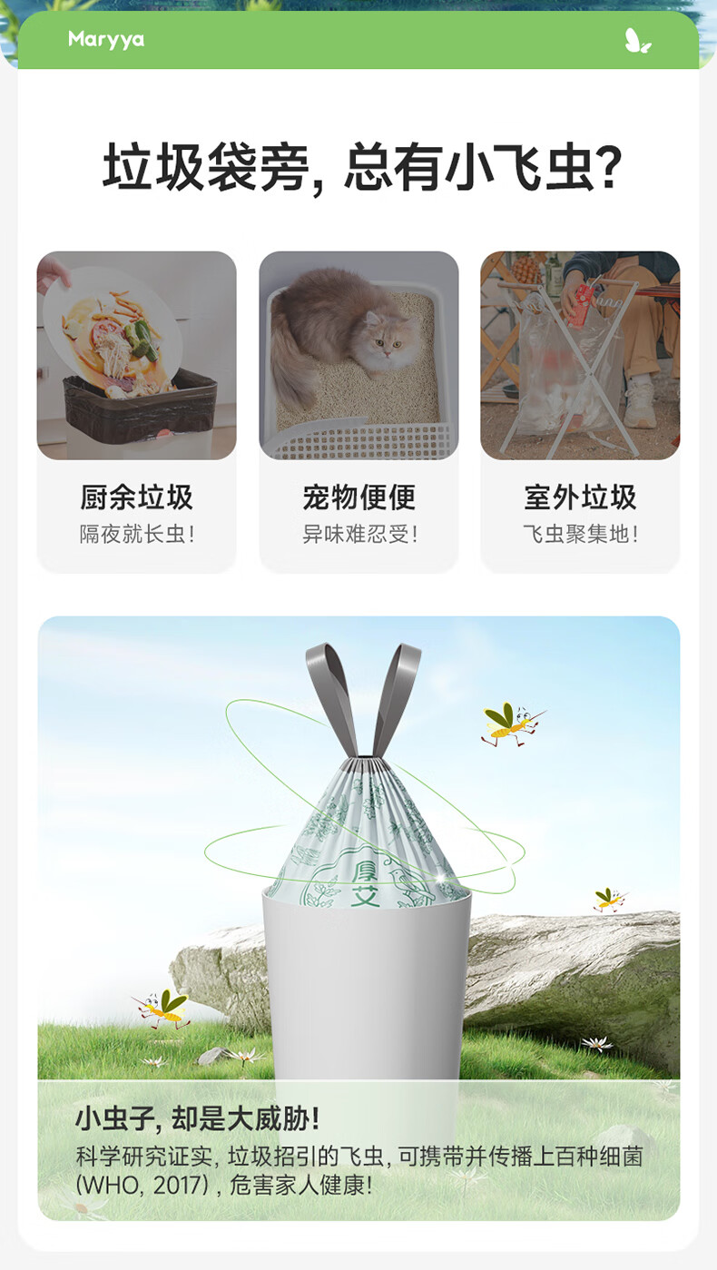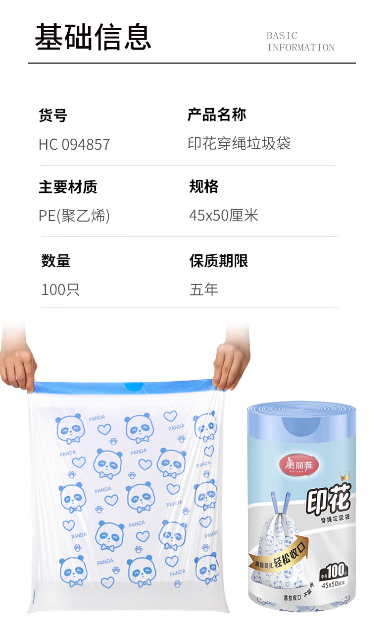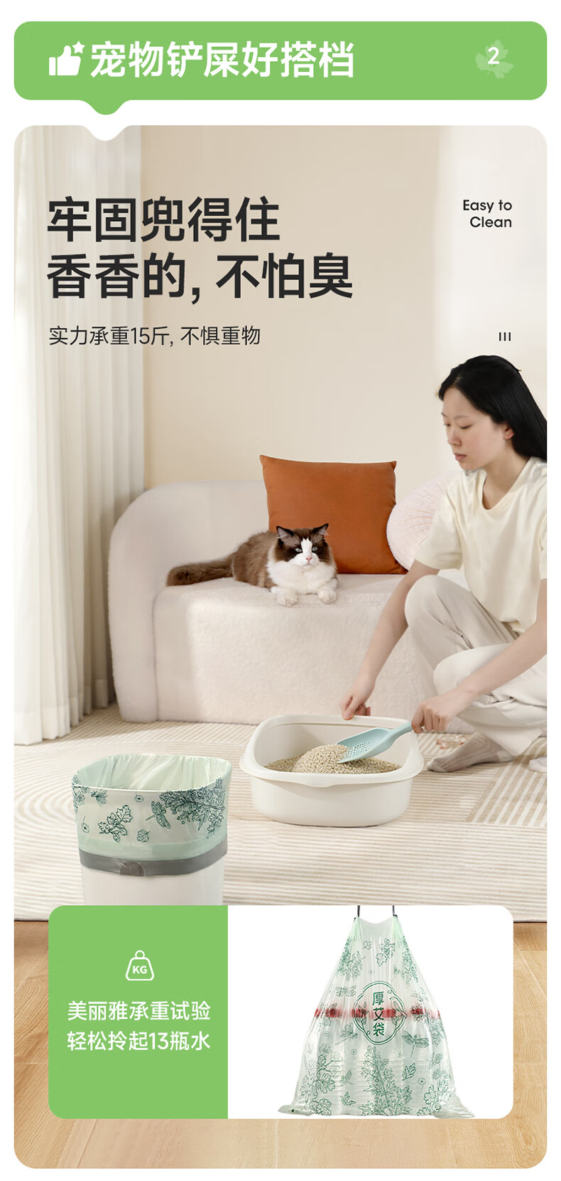 美丽雅(MARYYA)【任嘉伦同款】穿绳垃圾袋 手提式家用一次性抽绳塑料垃圾袋 【1.2丝】艾草垃圾袋45*50cm*100只