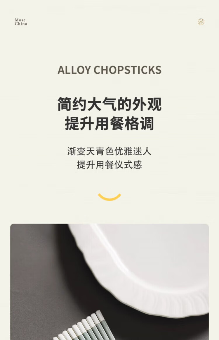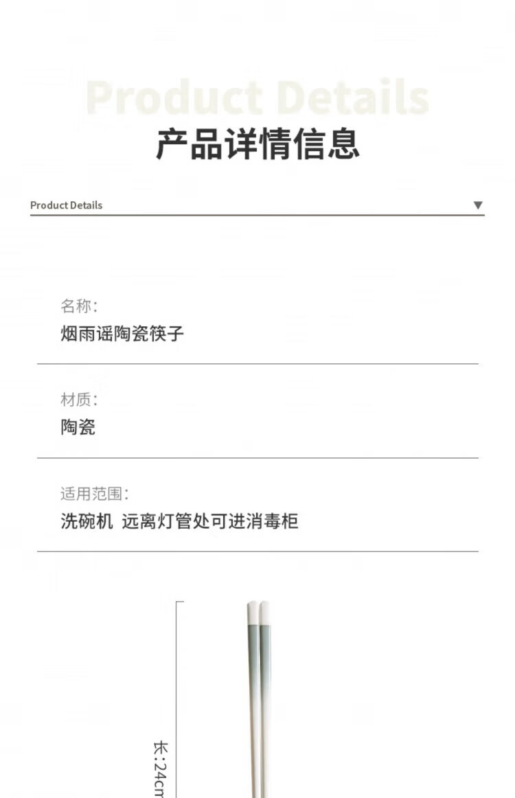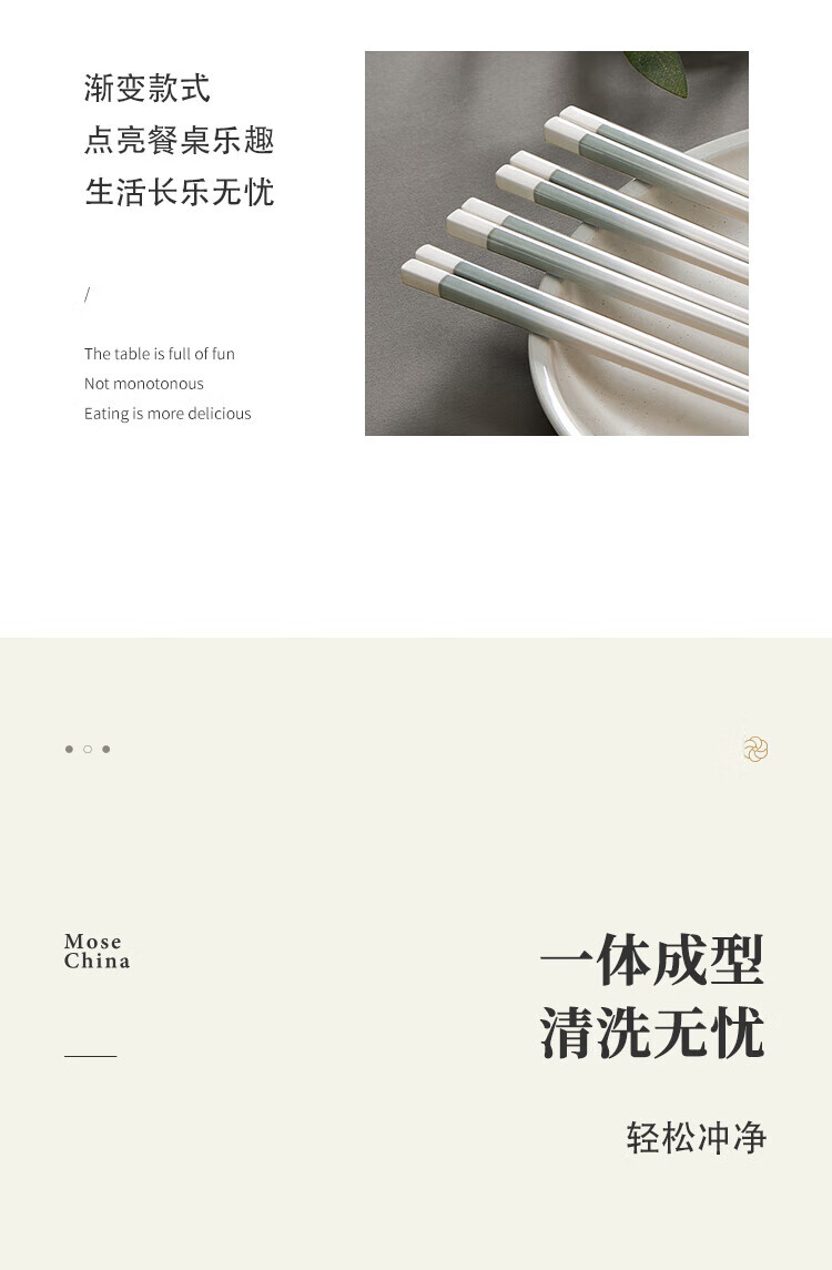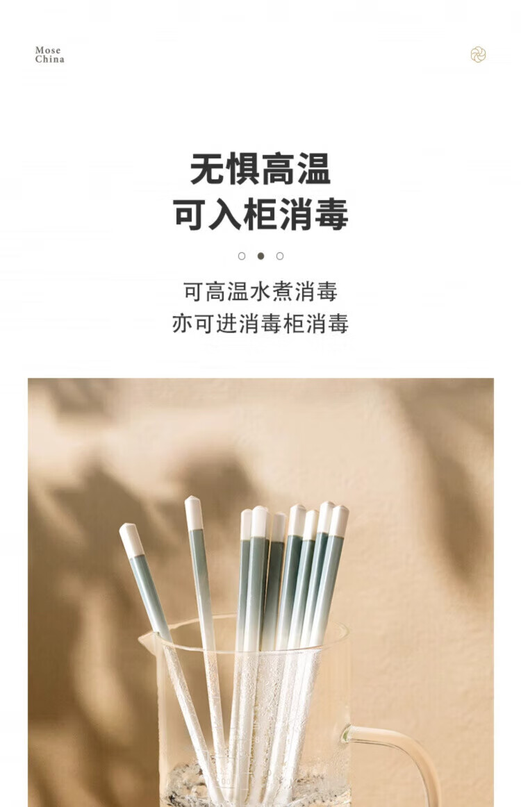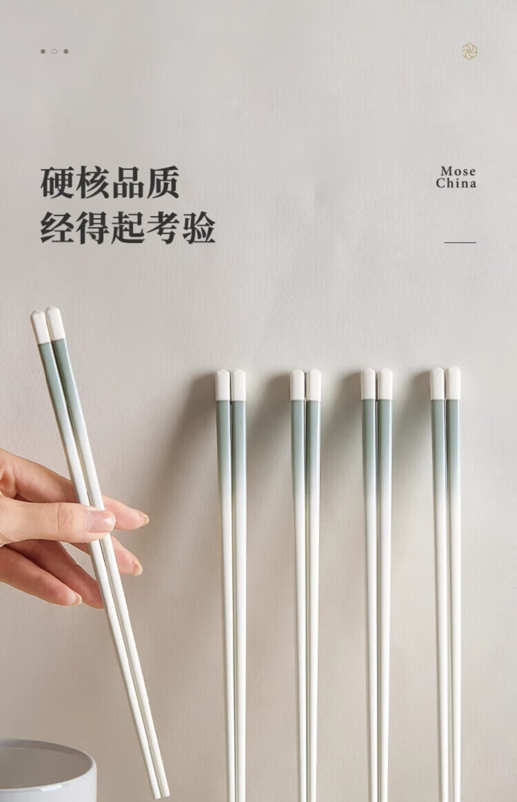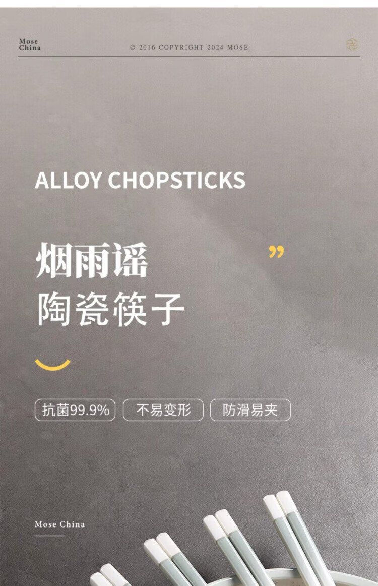 WCZ德国陶瓷筷子家用防滑2026新款高颜值家庭用轻奢感瓷 5双【烟雨谣】 5双