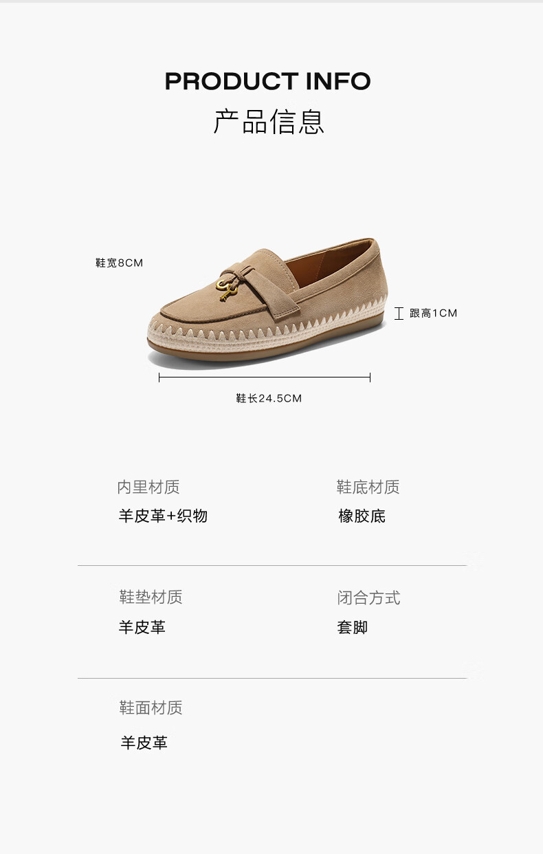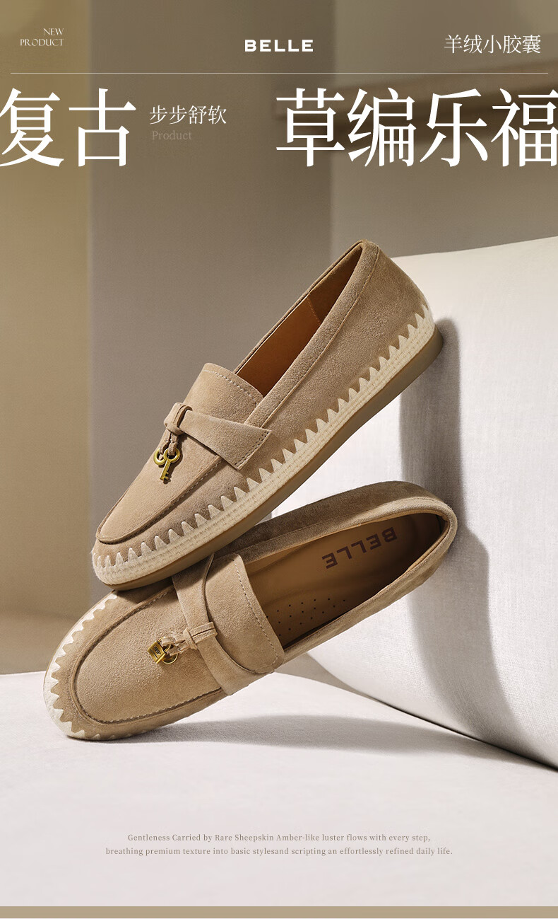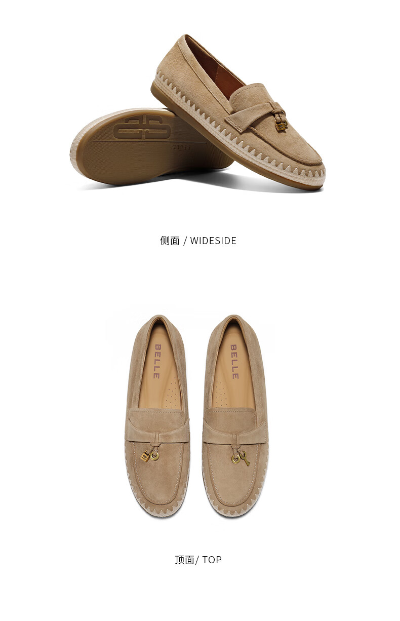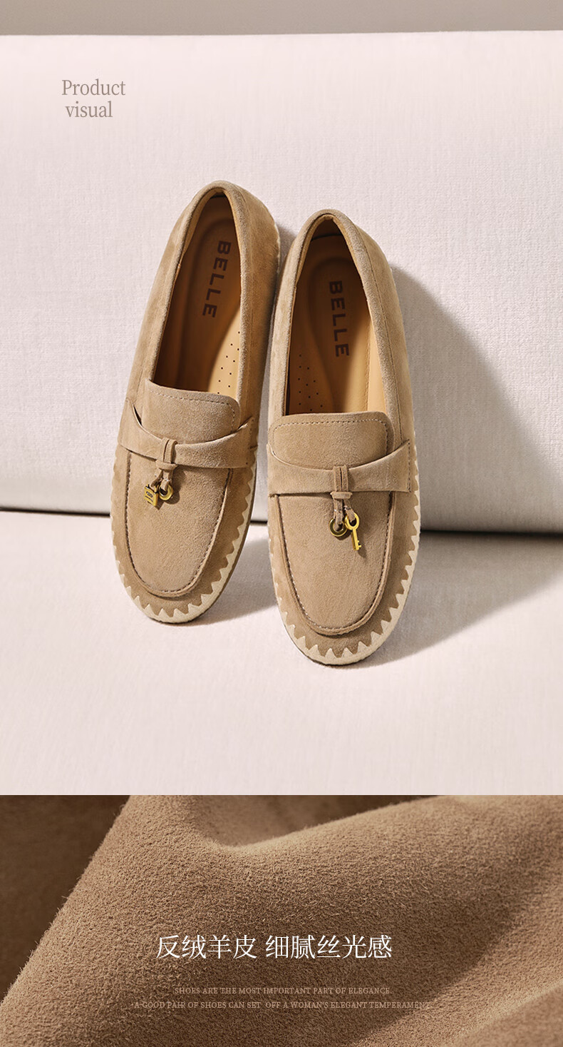 百丽(Belle)复古羊皮乐福鞋女2025秋新商场同款轻便薄底休闲单鞋E7S1DCA5 杏色 36