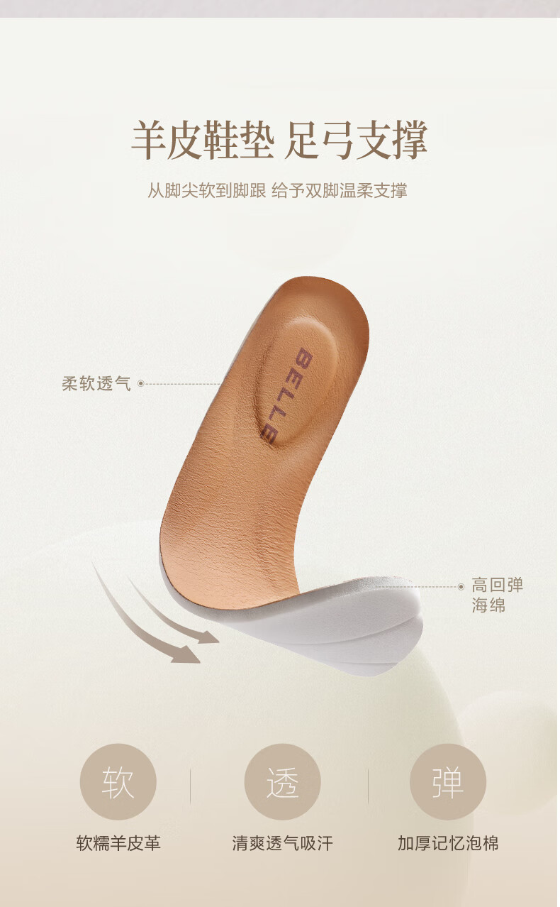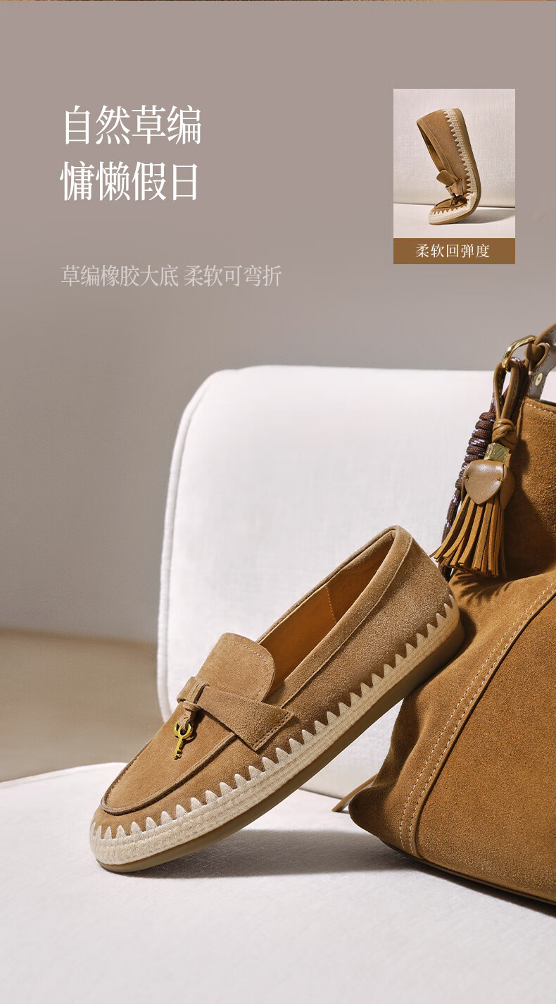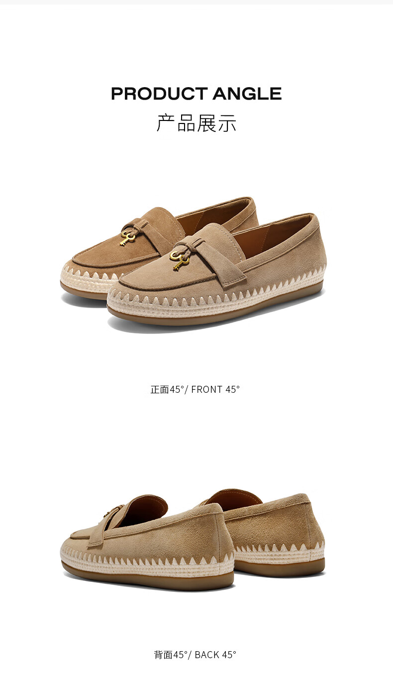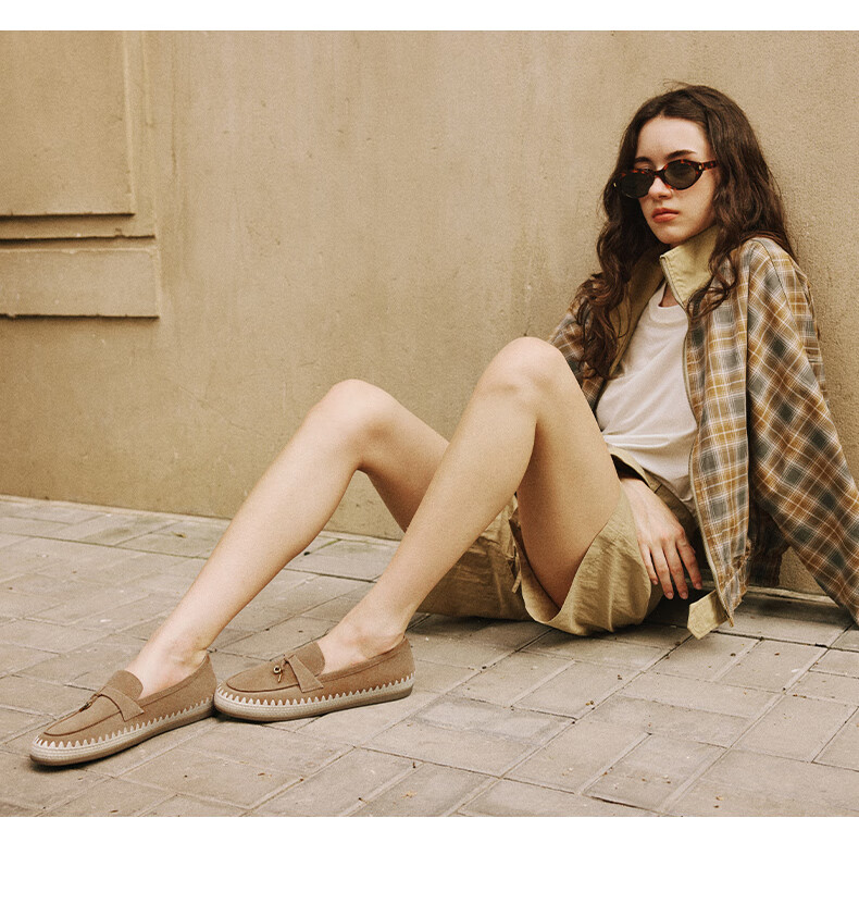 百丽(Belle)复古羊皮乐福鞋女2025秋新商场同款轻便薄底休闲单鞋E7S1DCA5 杏色 36