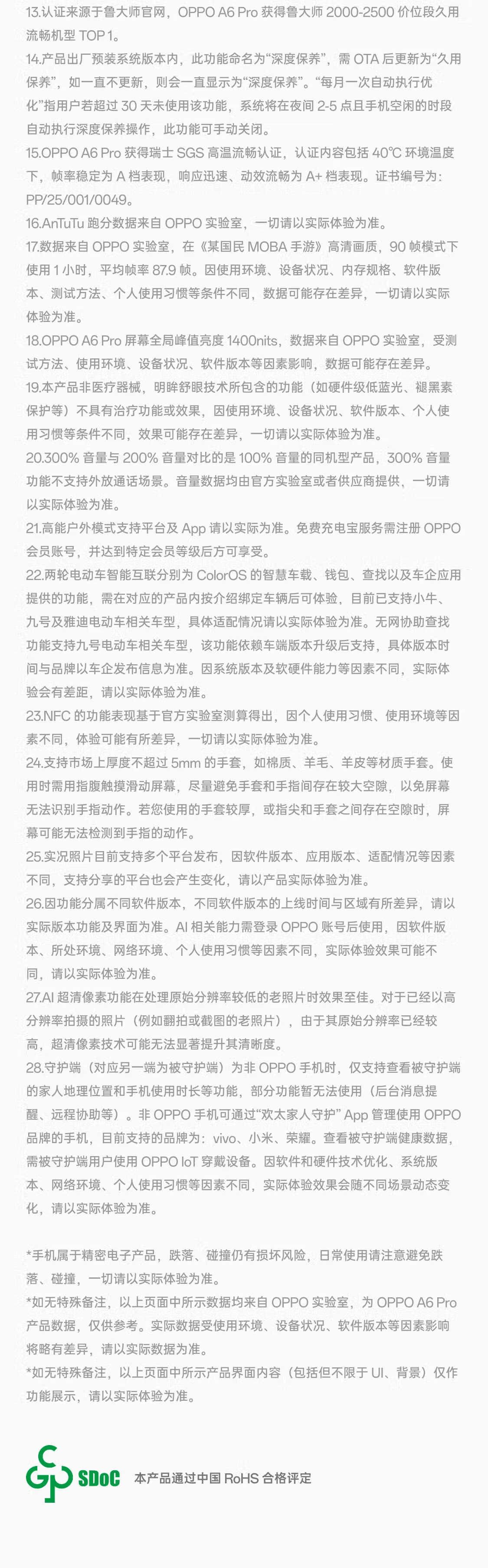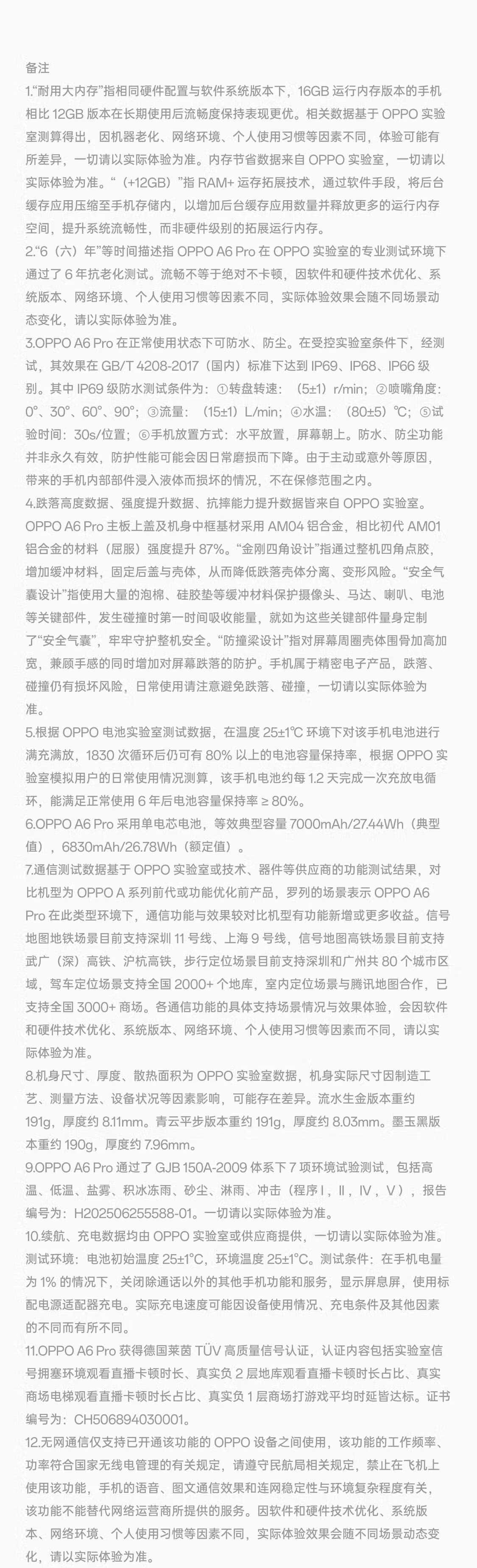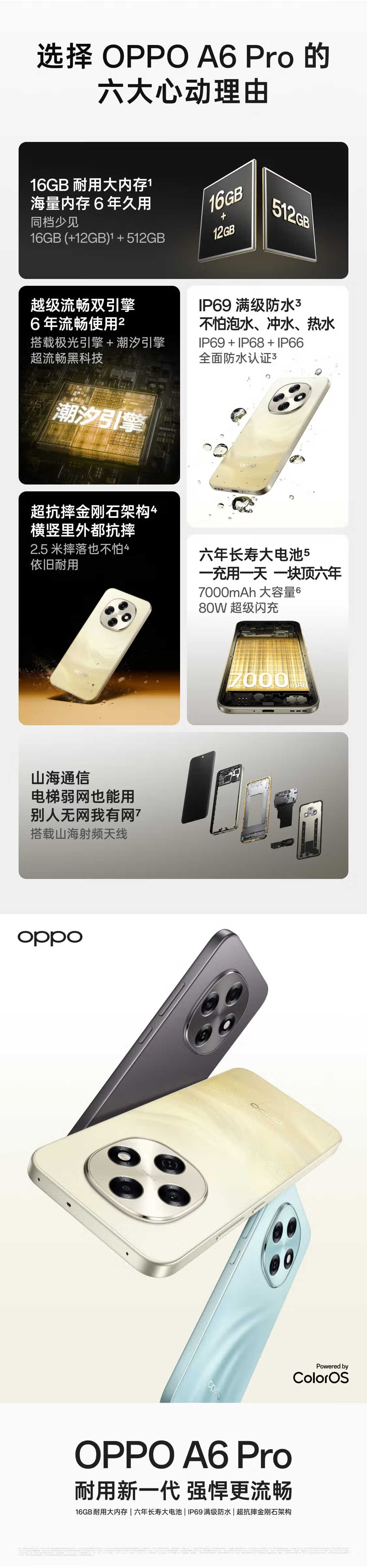 OPPO A6 Pro 16GB+512GB 青云平步 7000mAh大电池 抗摔耐用 5G手机【京东快递】