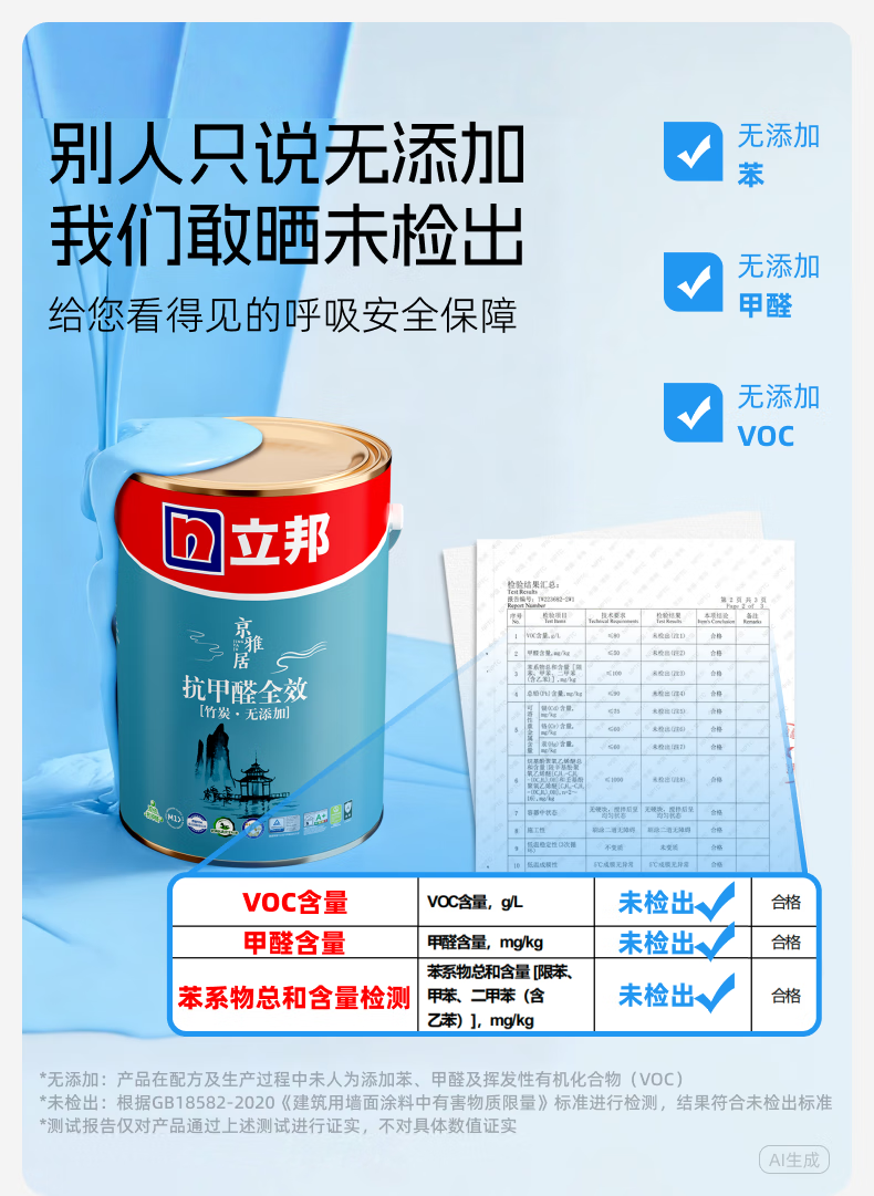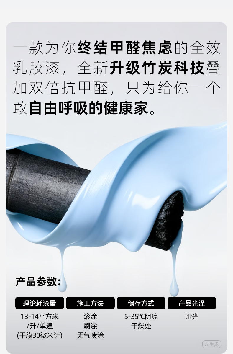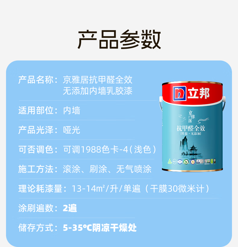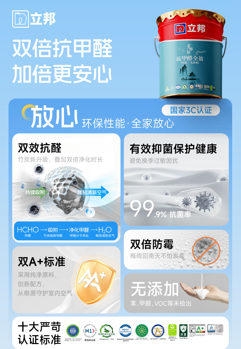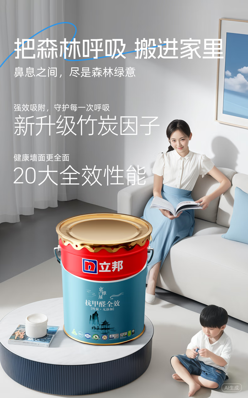 立邦乳胶漆竹炭抗甲醛全效双倍防霉抗甲醛内墙漆无添加环保油漆 【升级竹炭净醛】15L