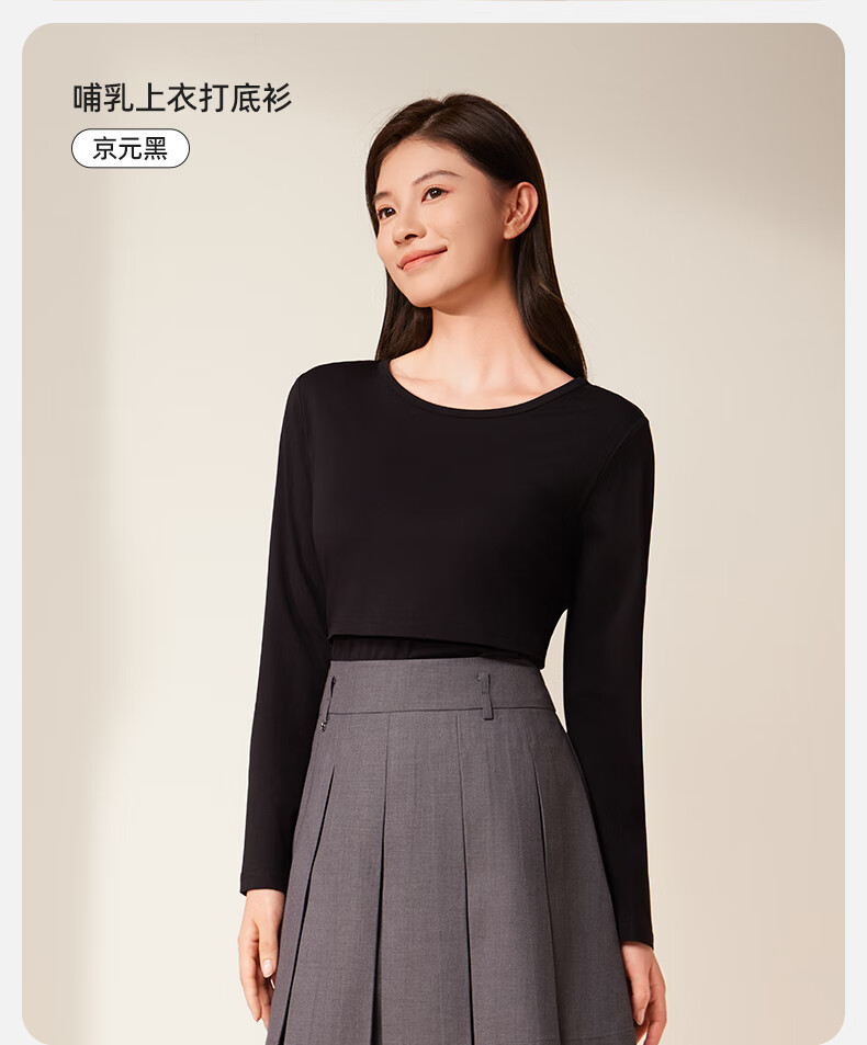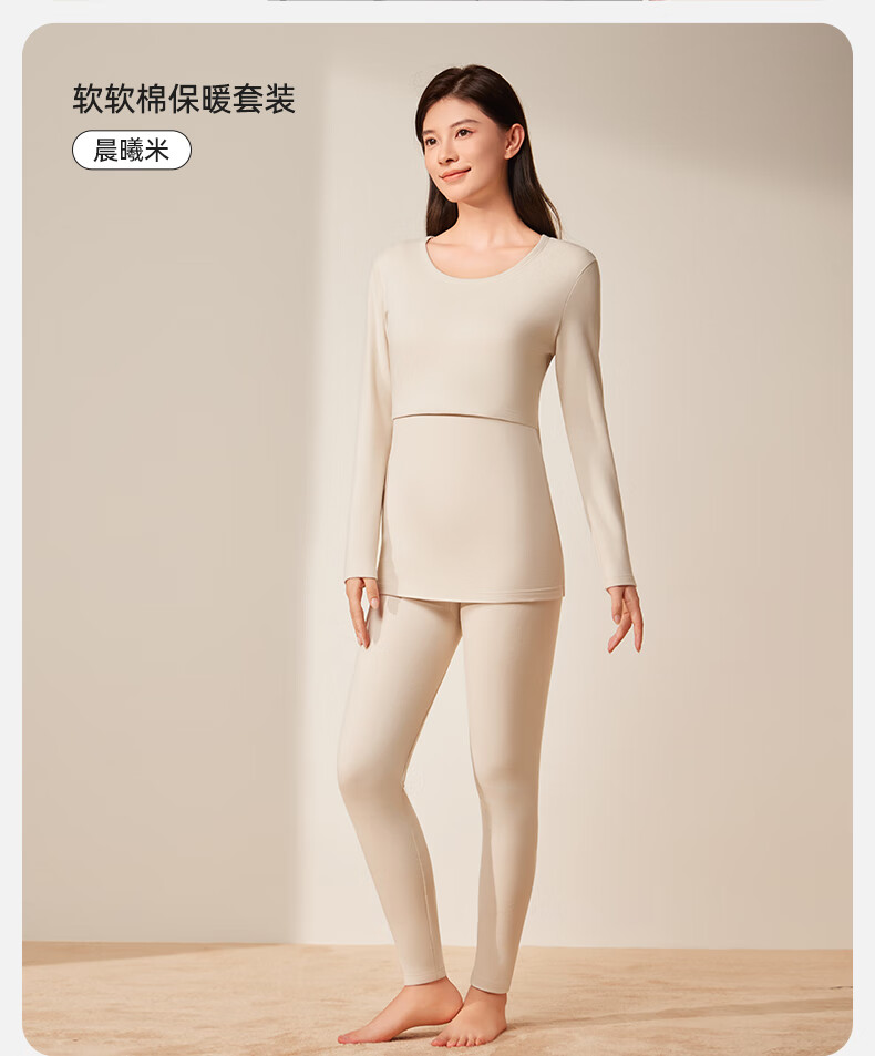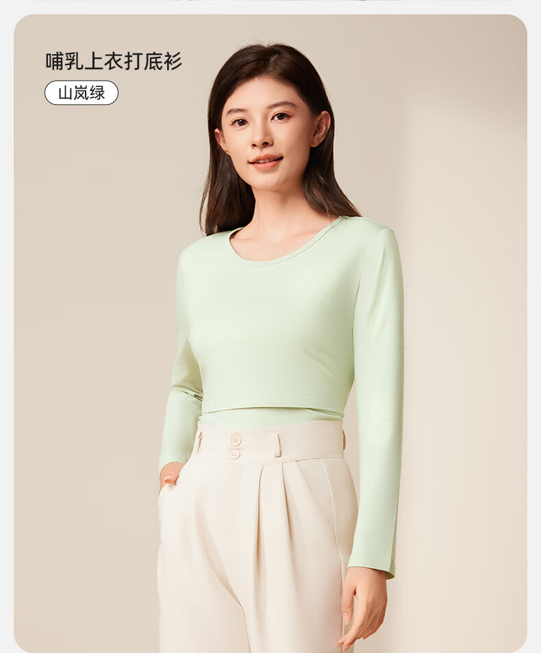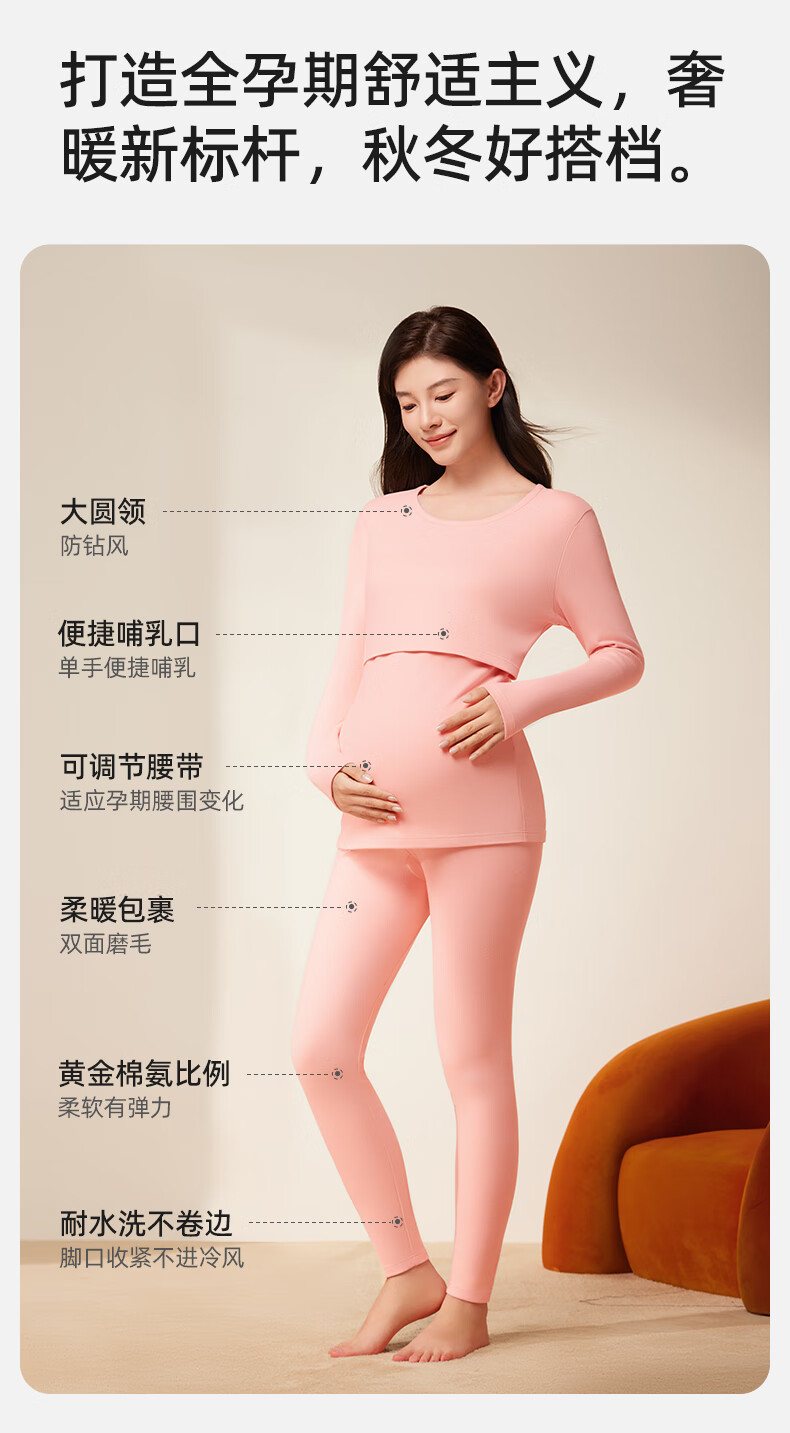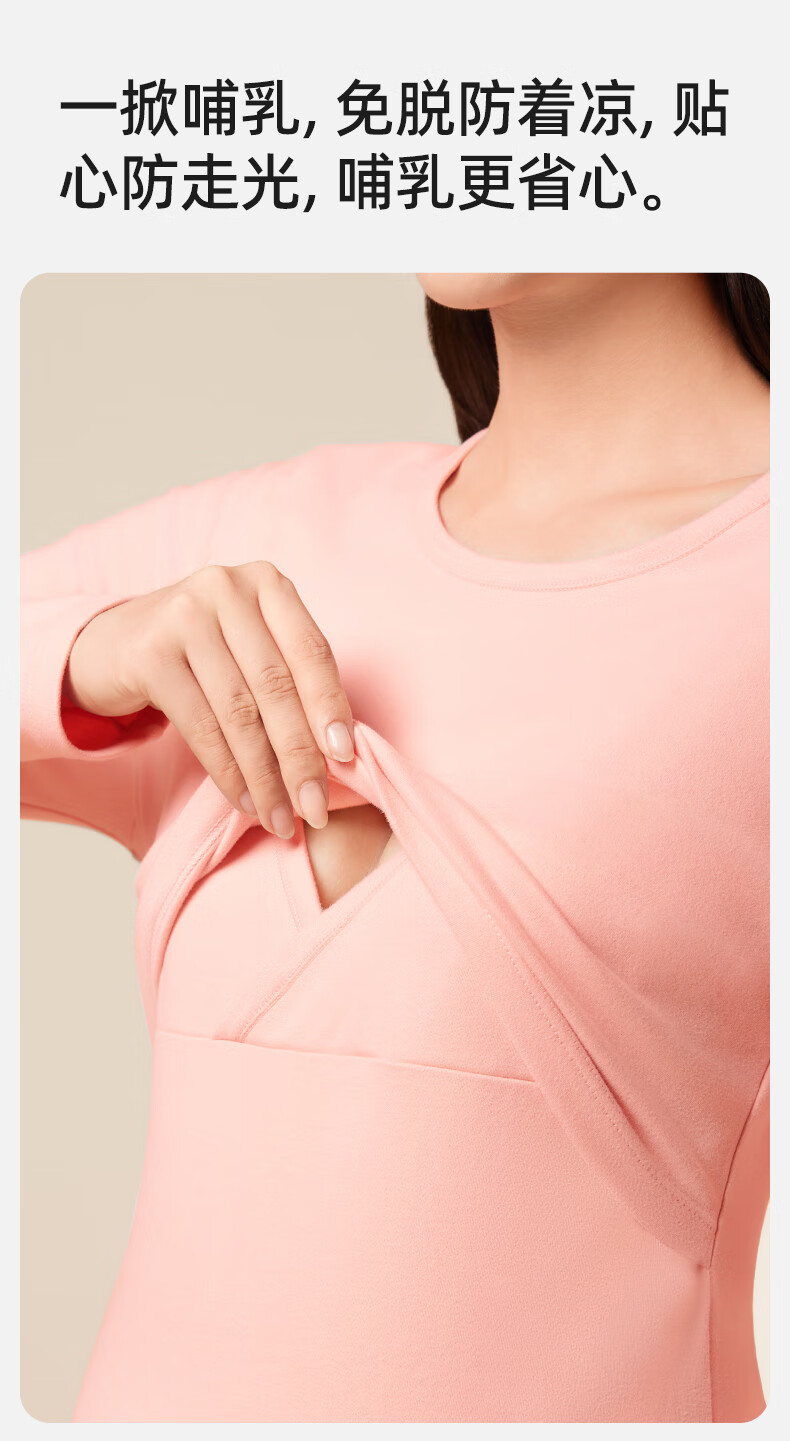 十月结晶孕妇秋衣哺乳上衣打底衫睡衣春季冬季产后产妇潮妈哺乳衣 (上衣)凝脂肤-推荐15~25℃ L码