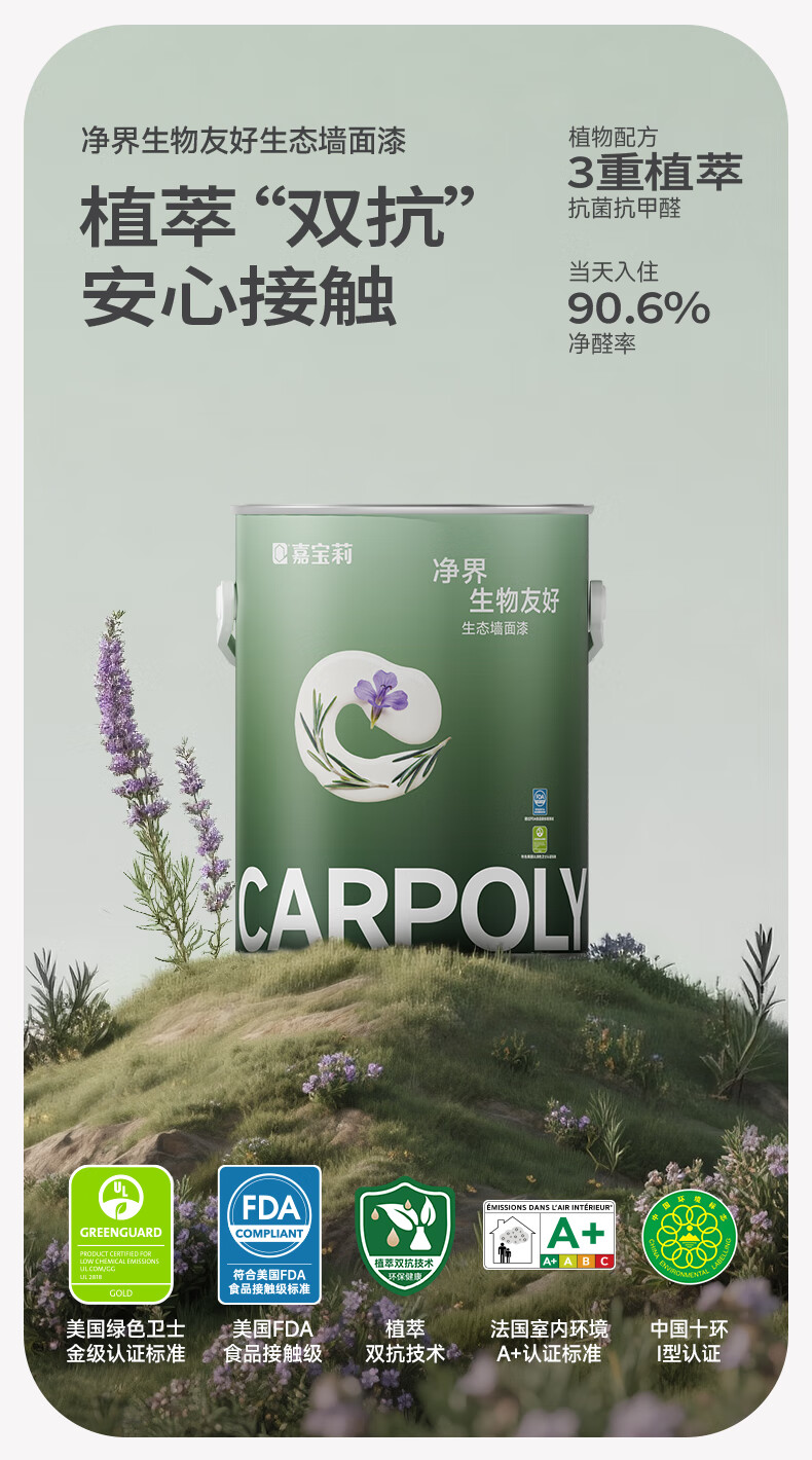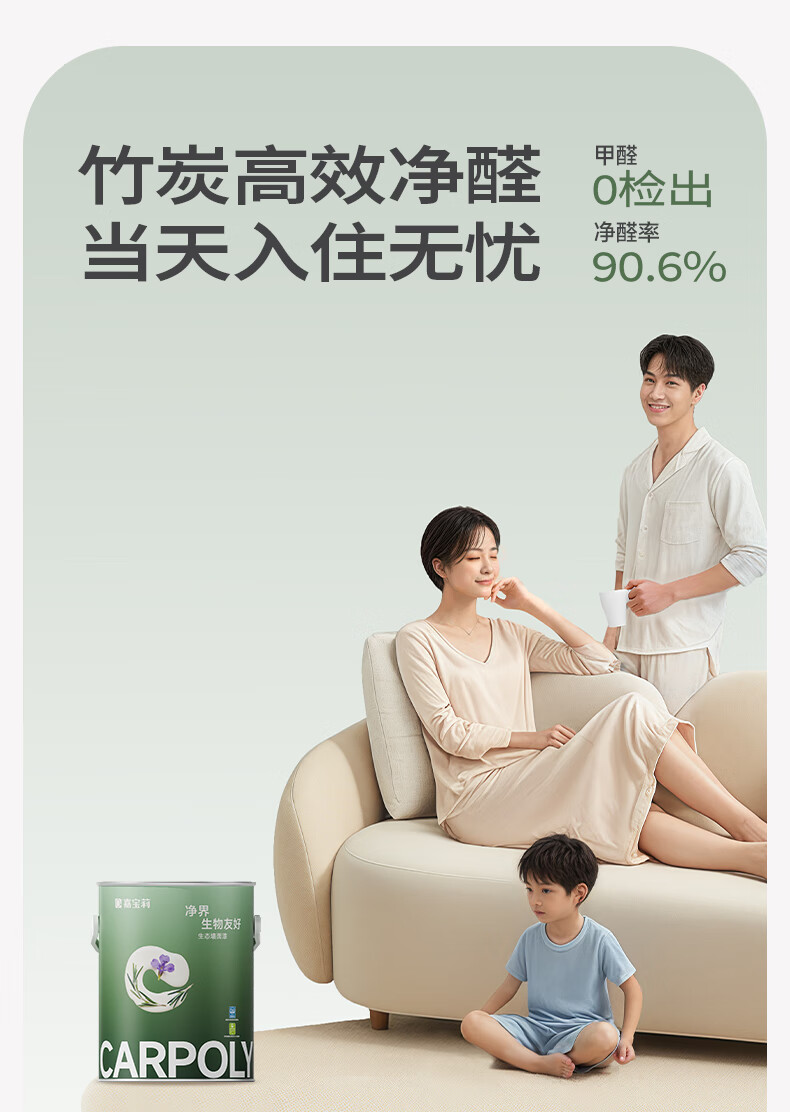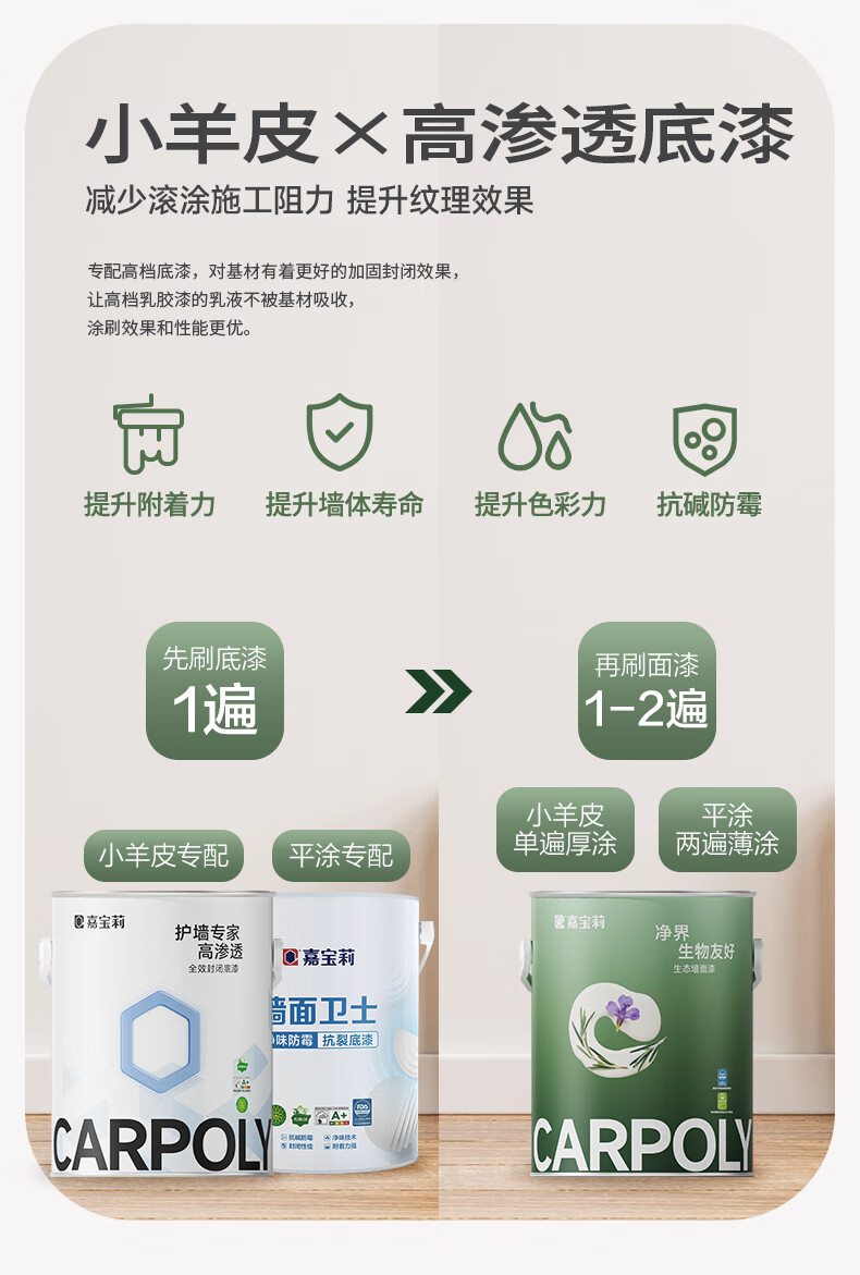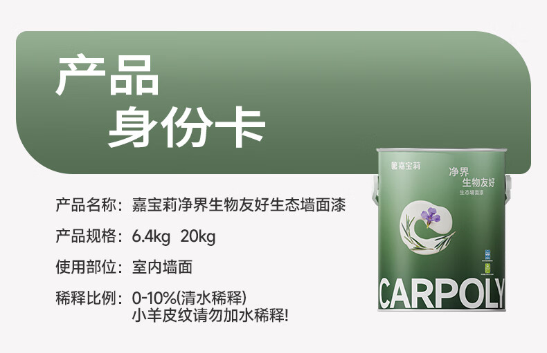 嘉宝莉(CARPOLY)净界生态漆净醛乳胶漆墙面漆净味多效白漆抗甲醛调色内墙漆 【小羊皮质感】面漆6.4kg