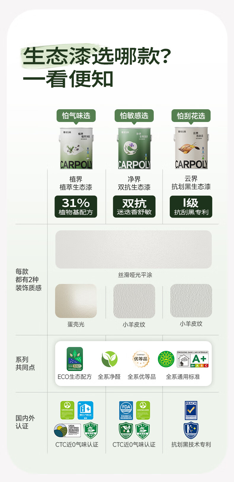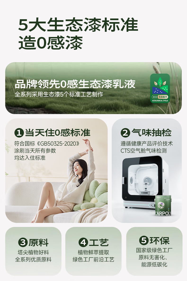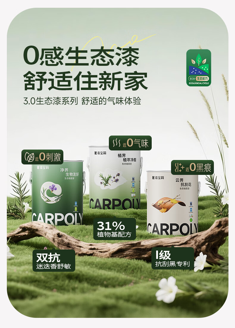 嘉宝莉(CARPOLY)净界生态漆净醛乳胶漆墙面漆净味多效白漆抗甲醛调色内墙漆 【小羊皮质感】面漆6.4kg