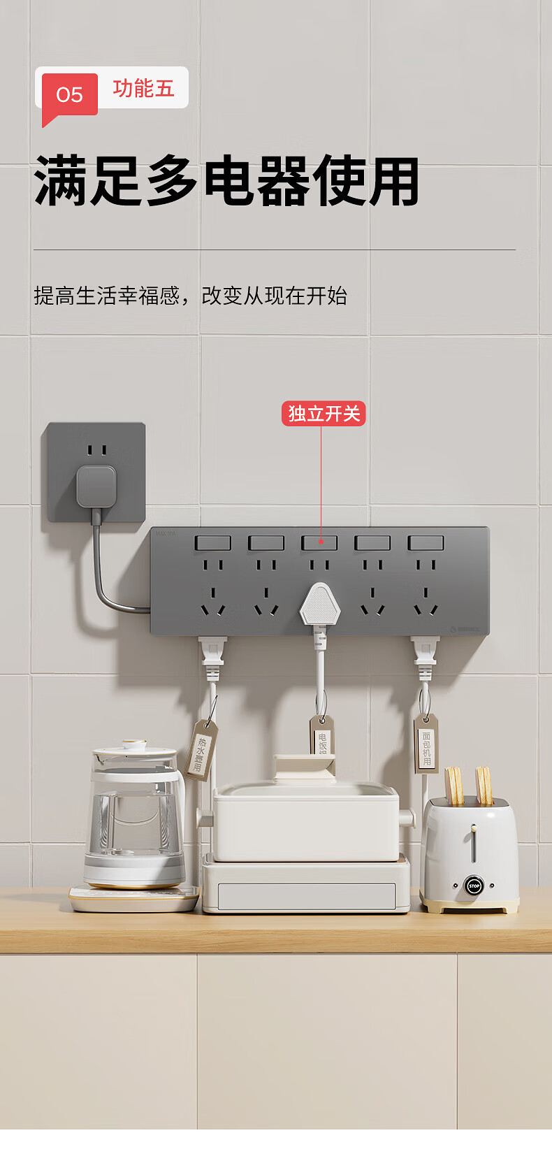 小米部依轨道插座德国品质电工可移动轨道插座明装式电力滑动导轨电源客厅 灰色60cm轨道(五孔-带灯*4)