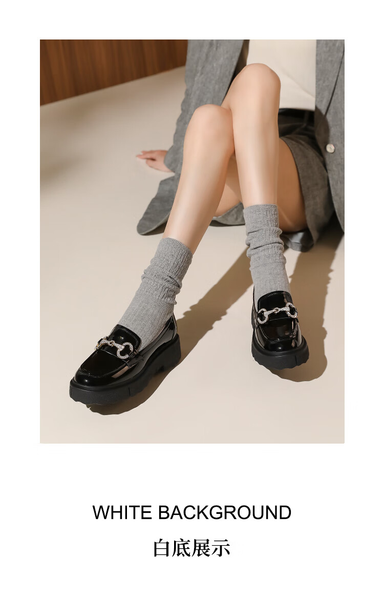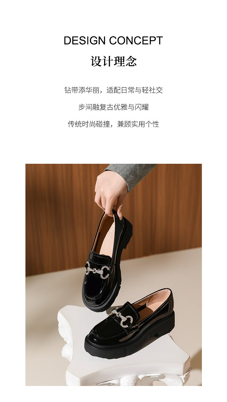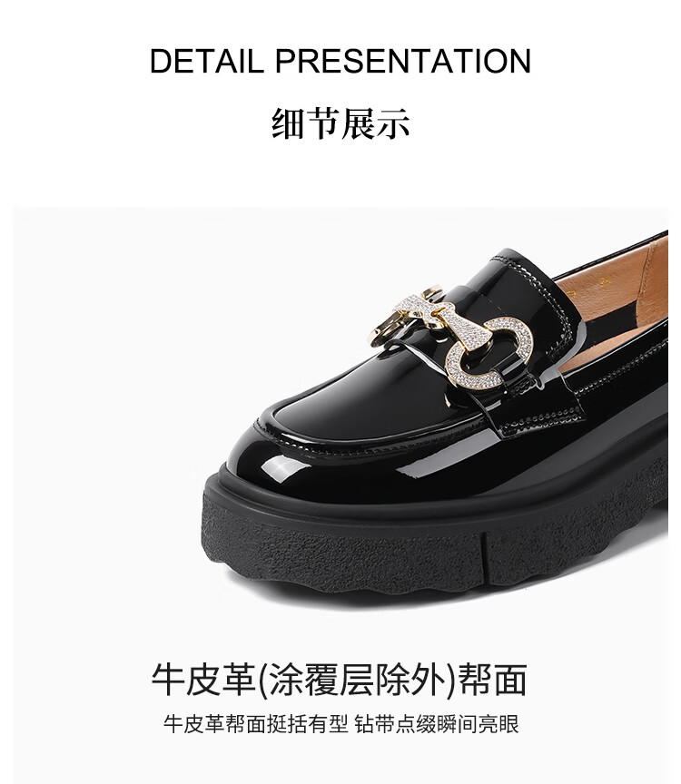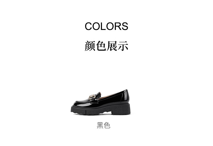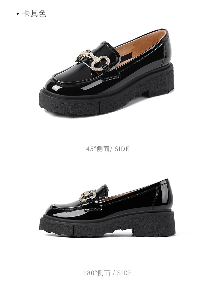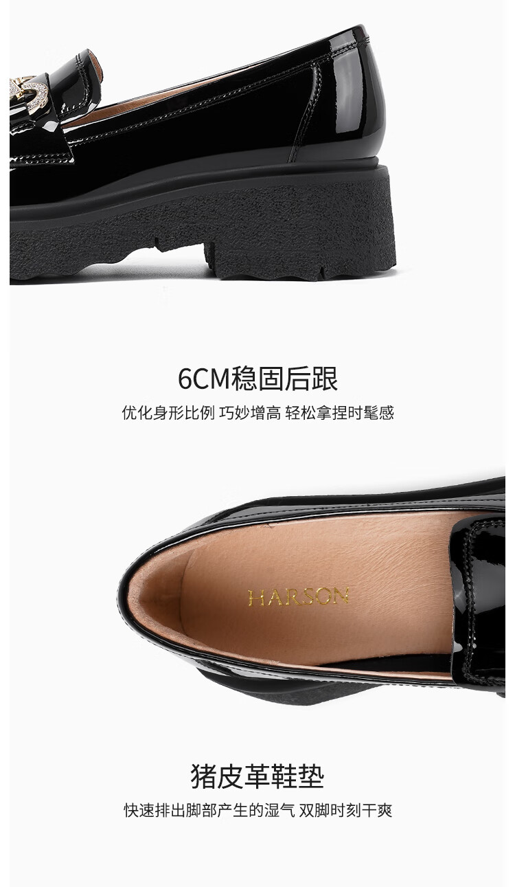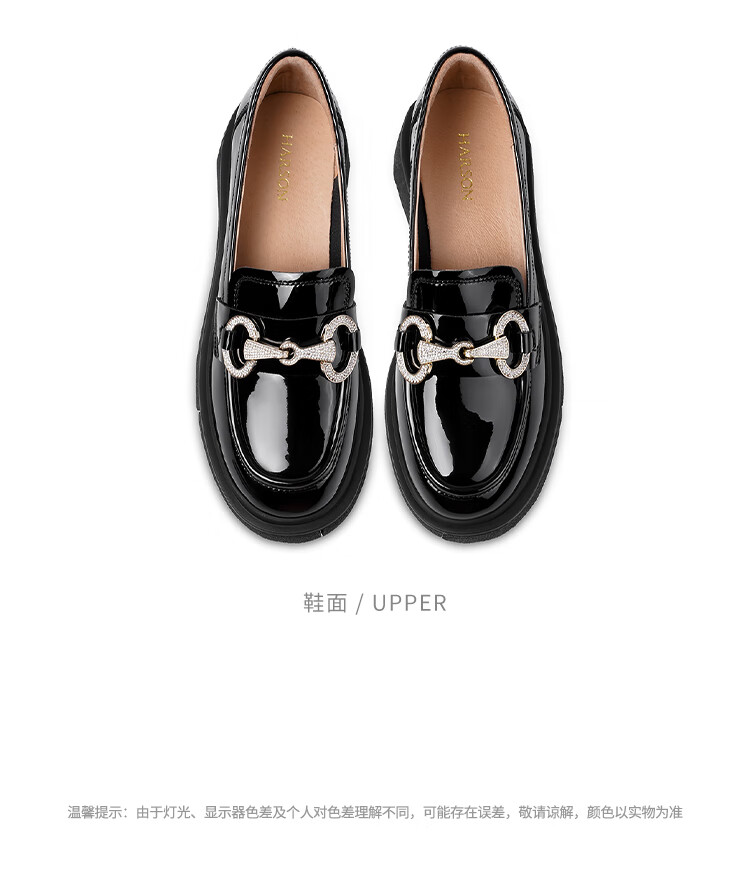 哈森(Harson)厚底乐福鞋女2025秋季新款英伦风小皮鞋牛漆皮通勤女单鞋HL259043 黑色 34