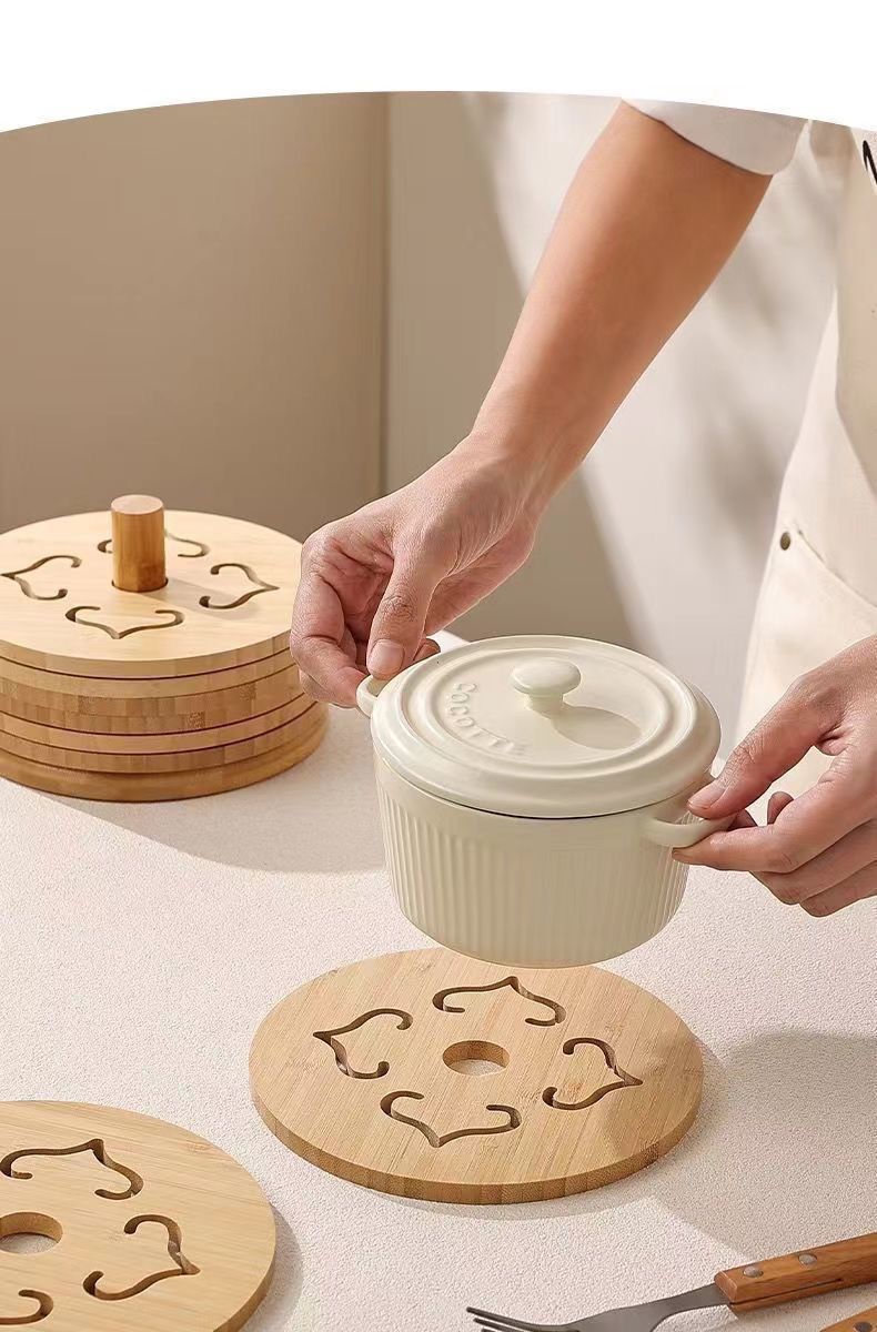 【严选直发】楠竹隔热垫创意防水防油防滑隔热垫碗垫盘垫杯垫厨房 桃花纹12cm*12cm*0.8mm 一片装