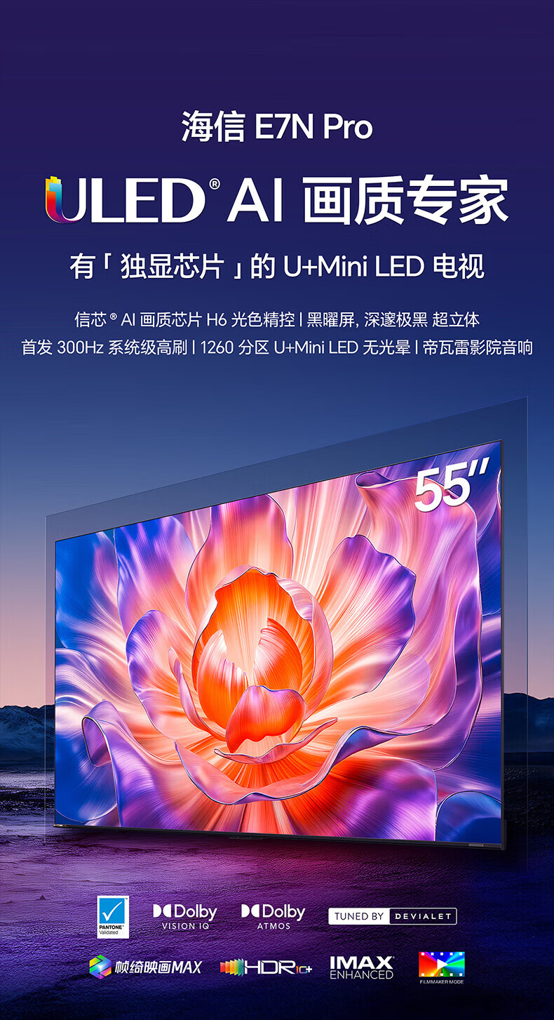 海信电视E7N Pro 55英寸 信芯芯片H6 U+Mini LED 黑曜屏 300Hz高刷DeepSeekAI55英寸 国家补贴 55英寸