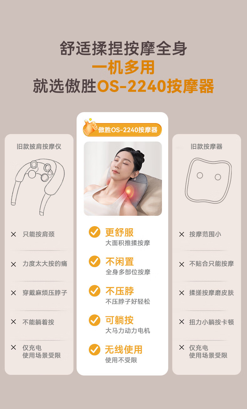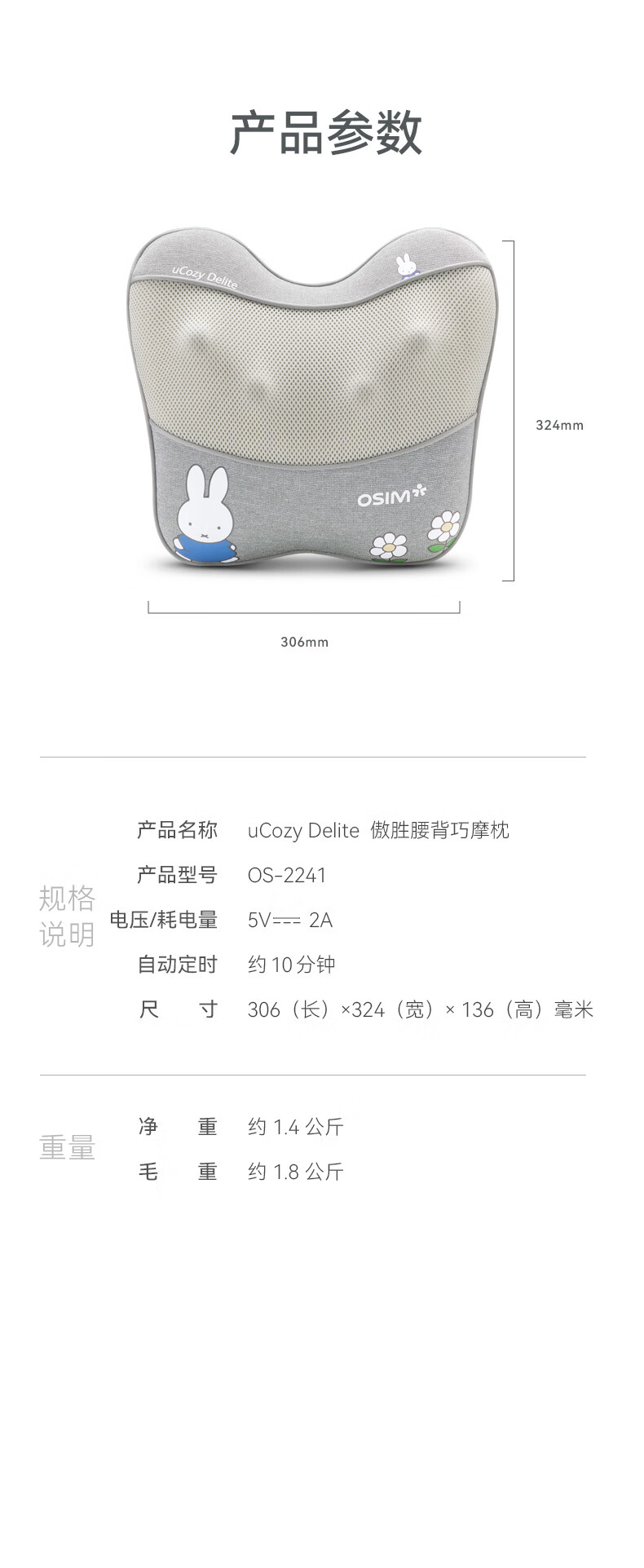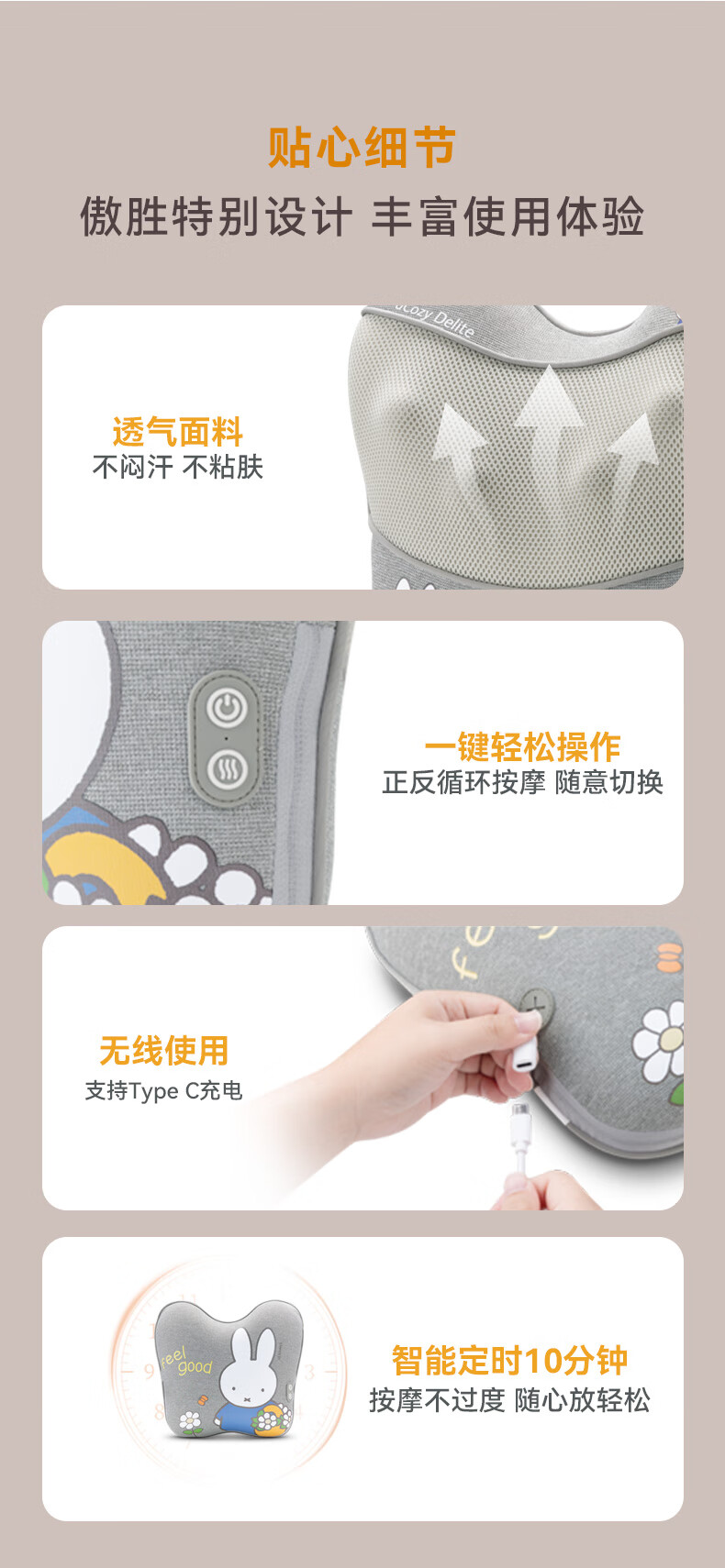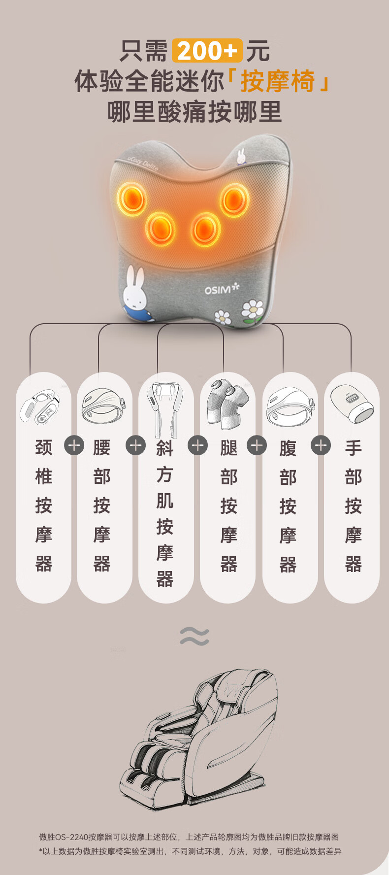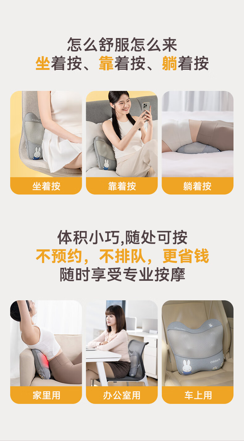 傲胜(OSIM)腰部按摩仪循环双感按摩头腰背肩颈按摩器全身按摩垫 OS-2240 米菲联名款 送父母亲中秋节礼物