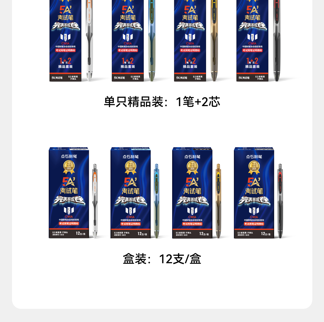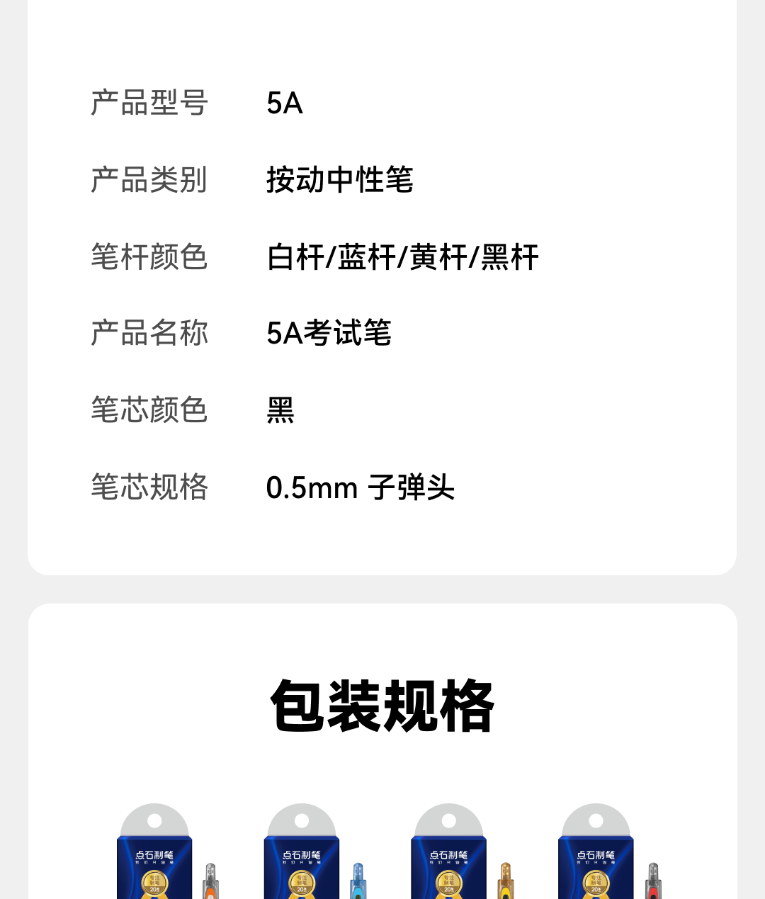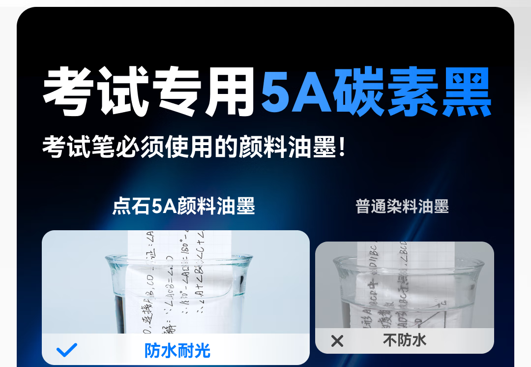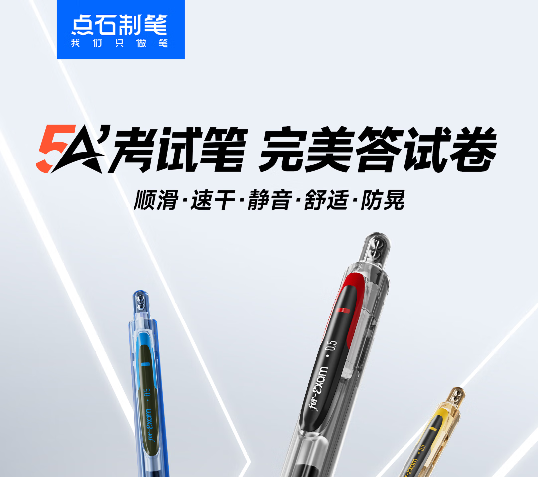 点石制笔 5a考试笔子弹头0.5mm黑色碳素笔速干笔学生作业刷题笔备考/考公/考研文具专用笔5A-E2 4支装