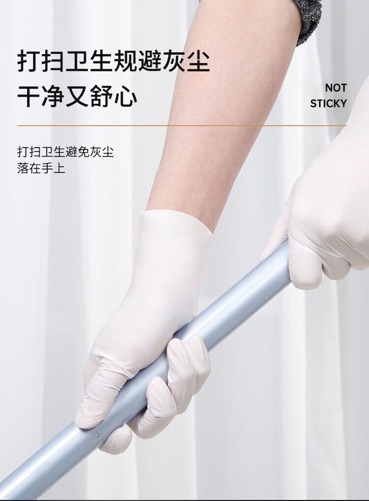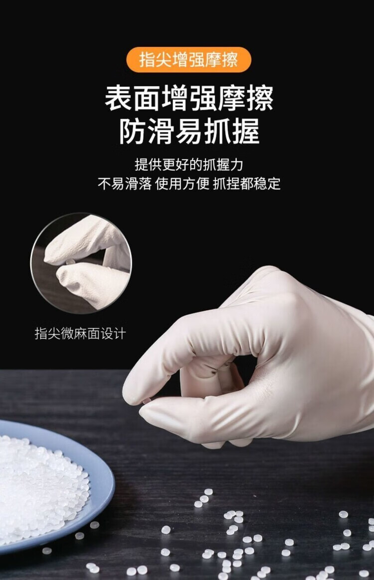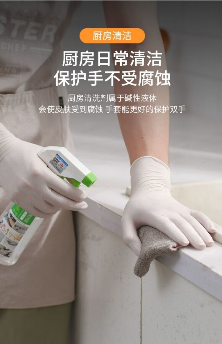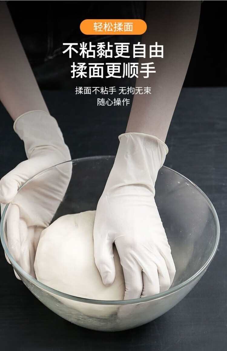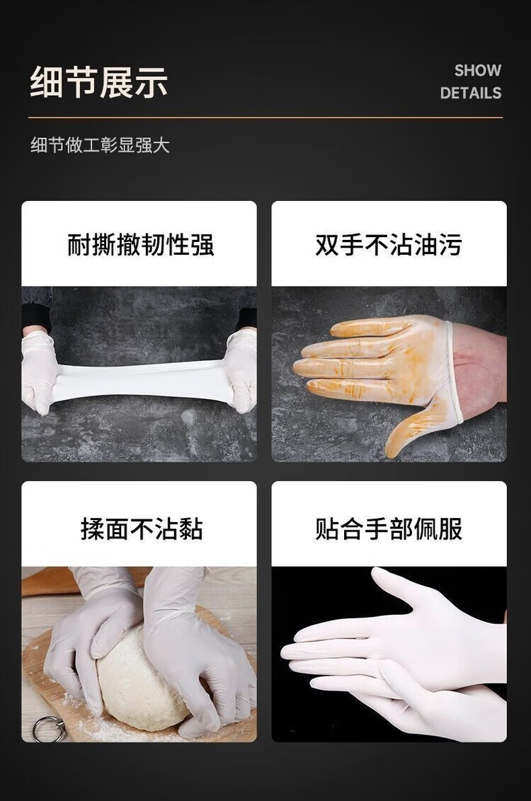 简漾一次性手套食品级餐饮乳胶防油不沾胶皮橡胶硅胶特厚耐磨带松紧 M码/中号 白色10只袋装