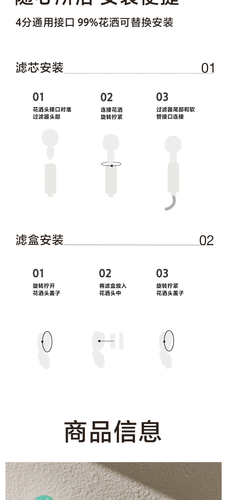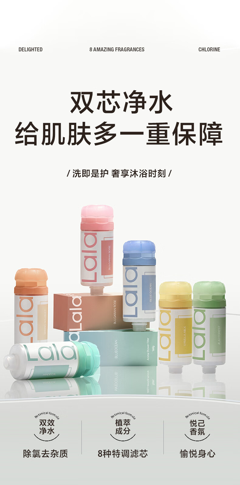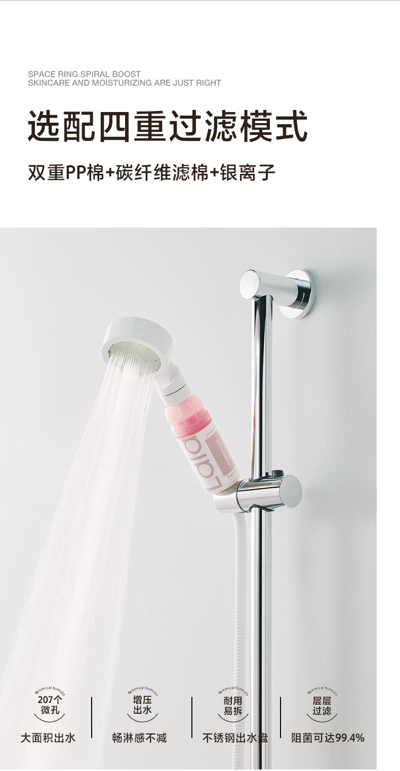LALAPERCARE淋浴花洒过滤芯3支除氯抑菌增压花洒喷头连接过滤器淋浴套装礼物 森林/蔷薇/牛奶+增压花洒