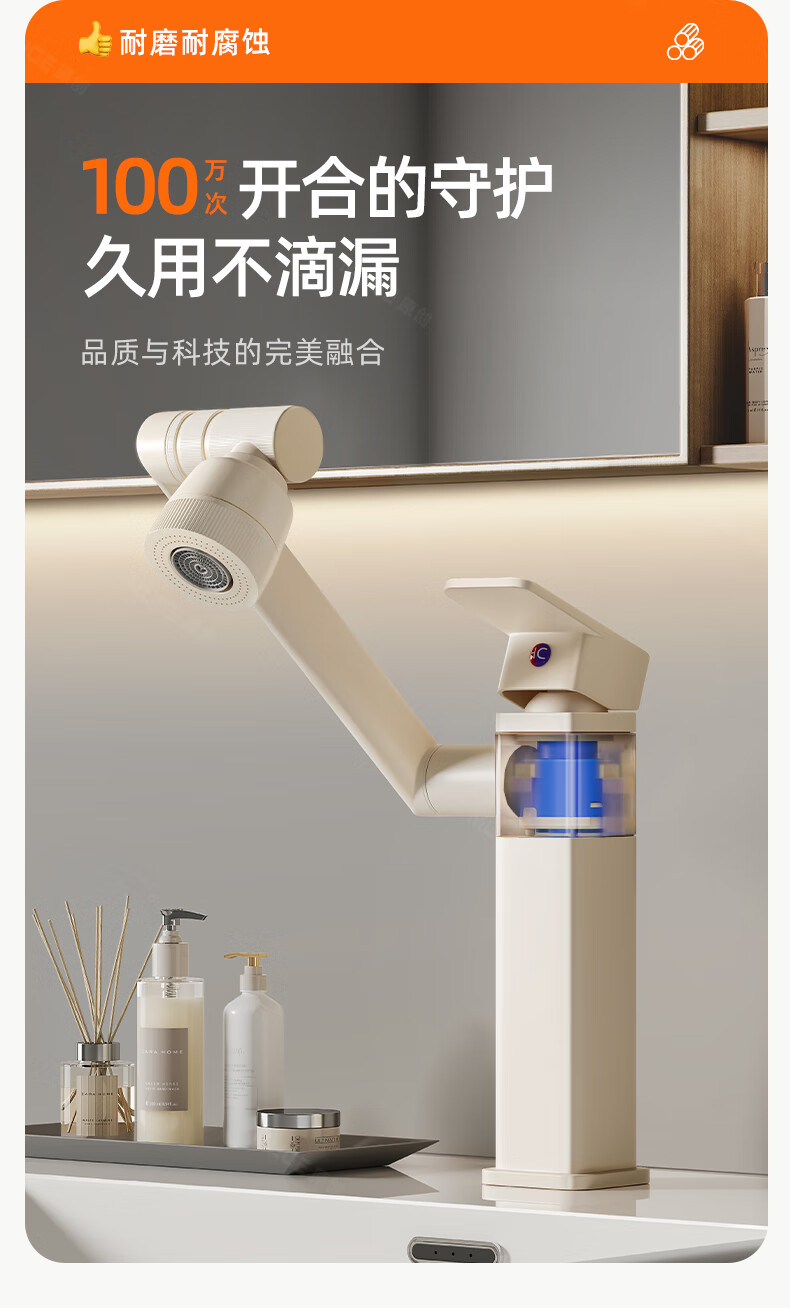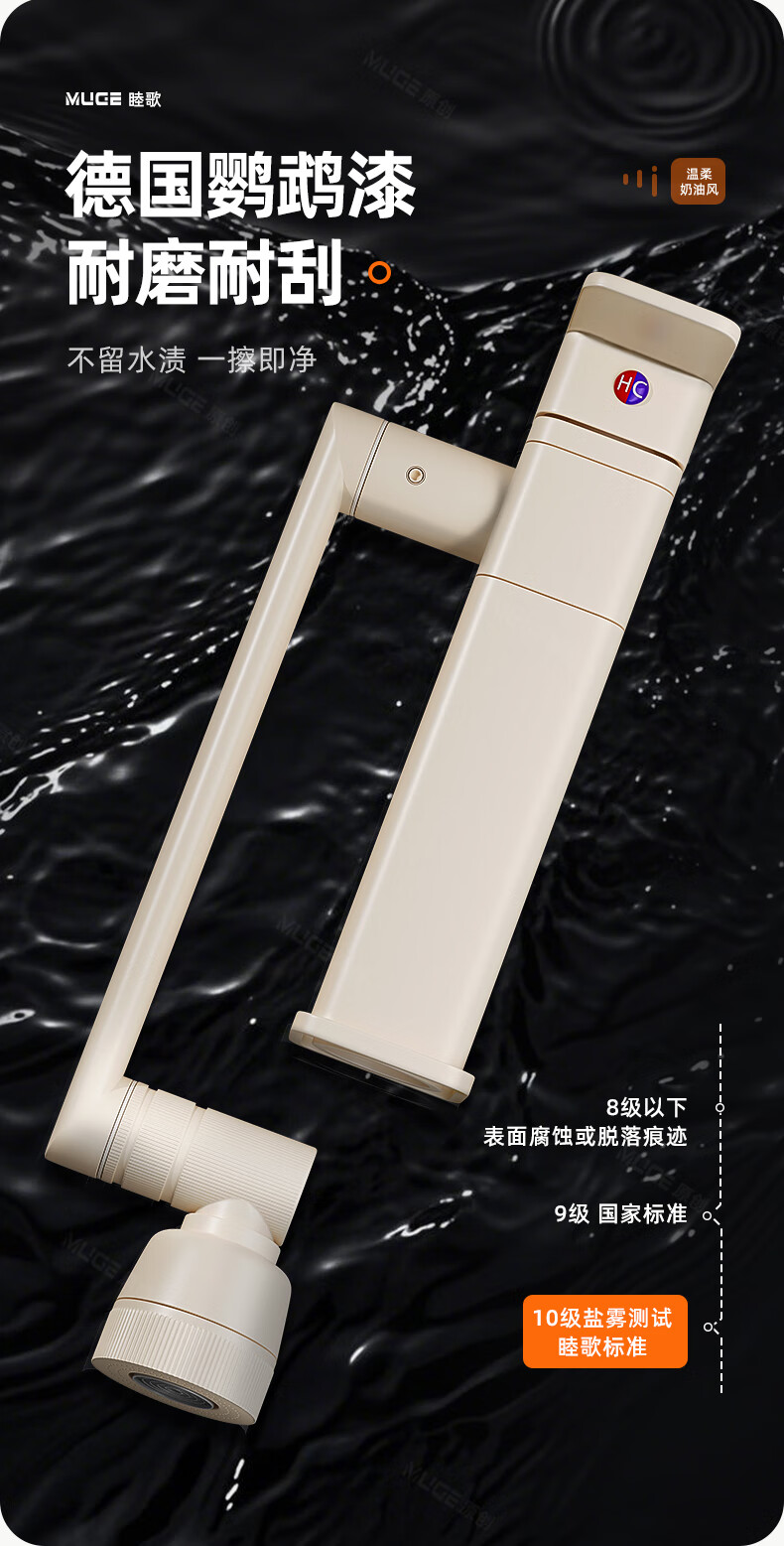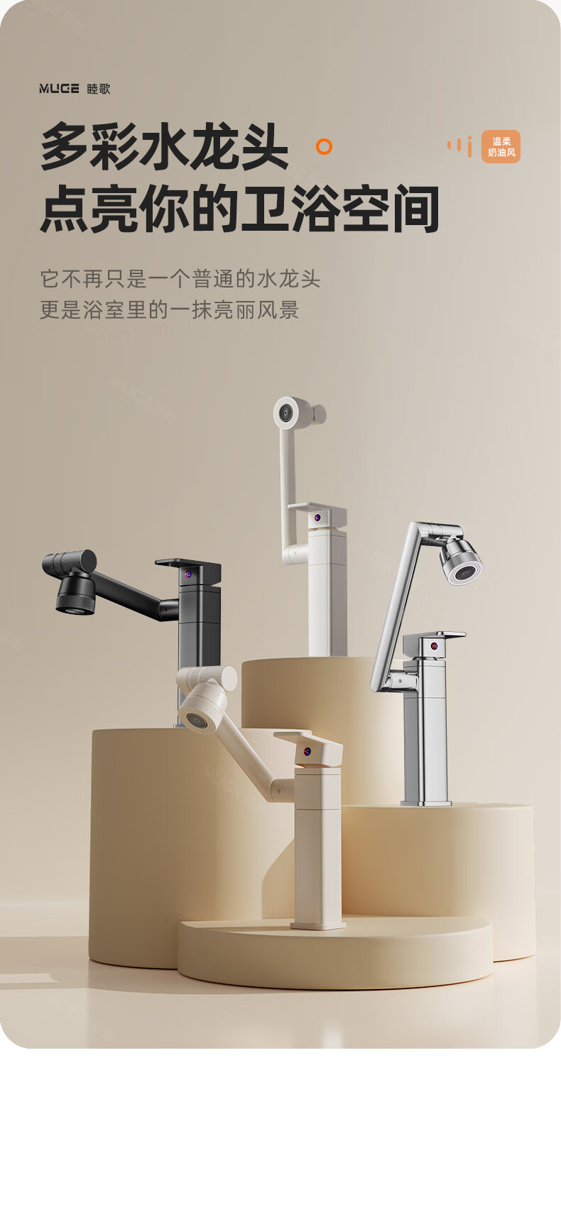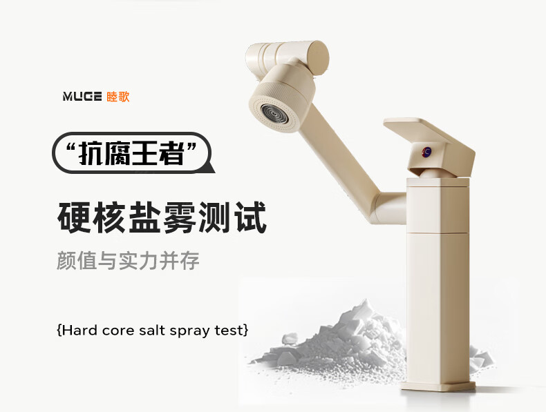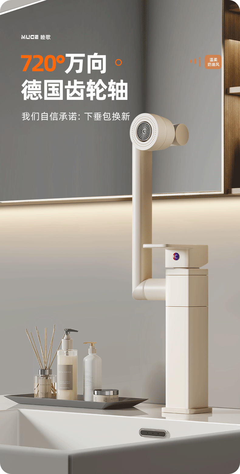 睦歌(MUGE)卫生间洗脸盆面盆水龙头洗手盆冷热浴室柜洗漱台机械臂万向水龙头 全铜加厚【奶油风】厨卫通用水龙头