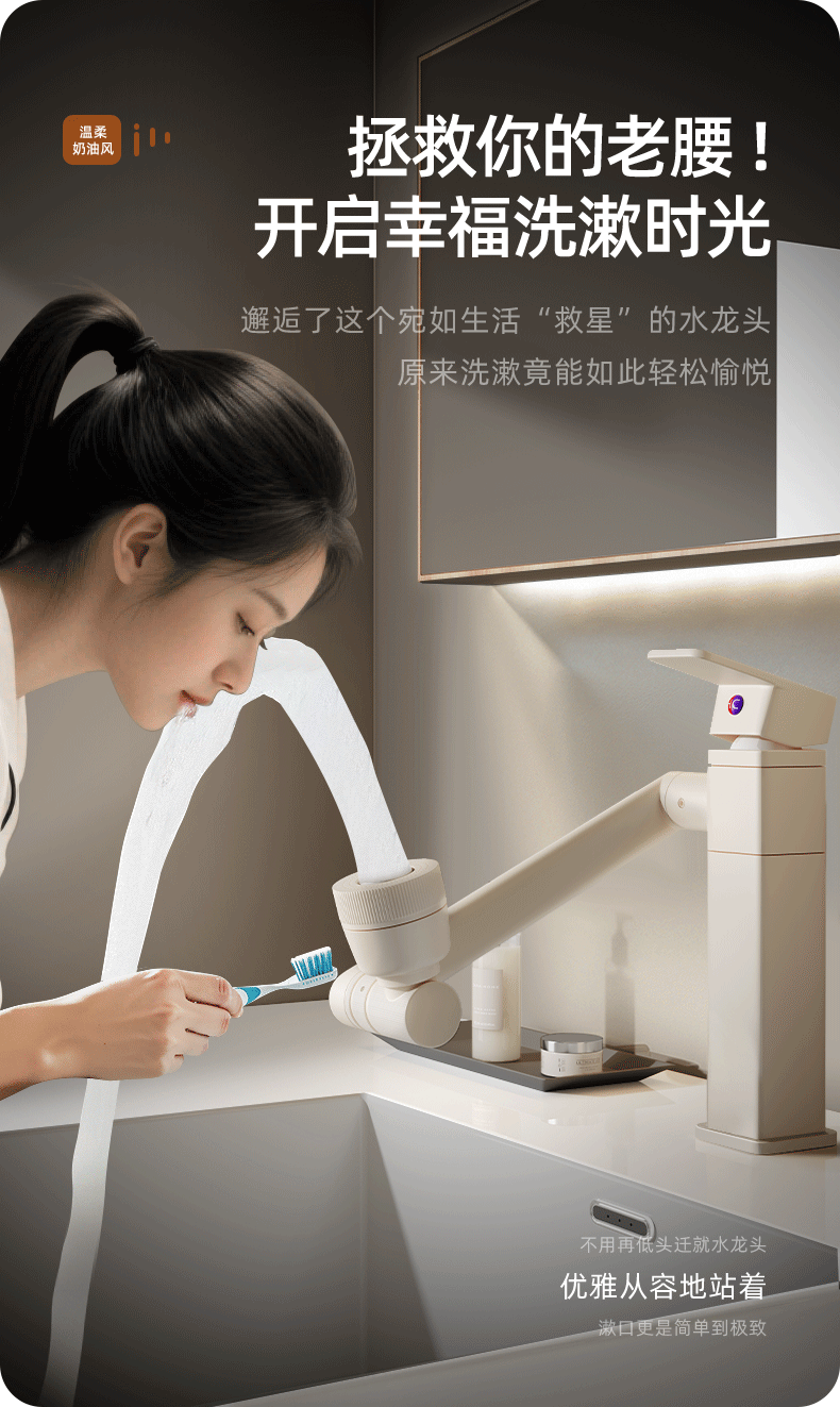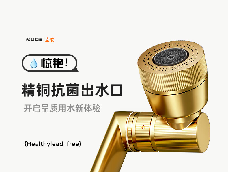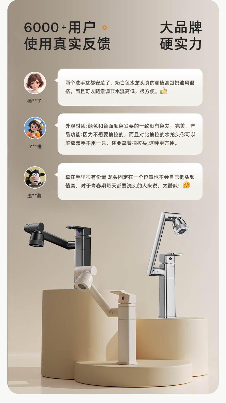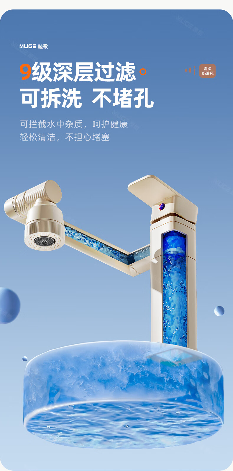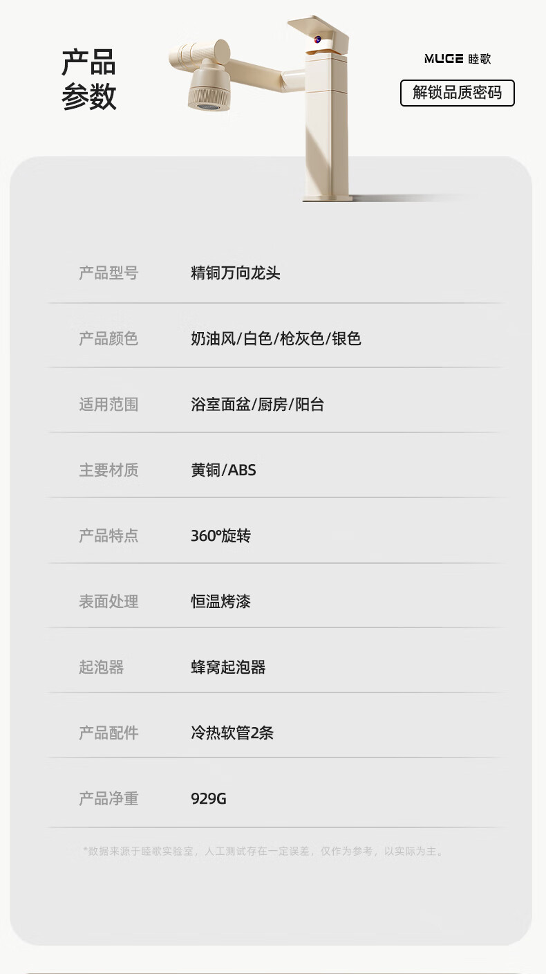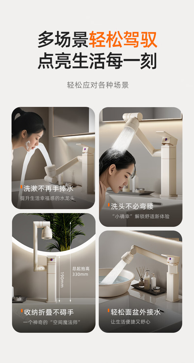 睦歌(MUGE)卫生间洗脸盆面盆水龙头洗手盆冷热浴室柜洗漱台机械臂万向水龙头 全铜加厚【奶油风】厨卫通用水龙头