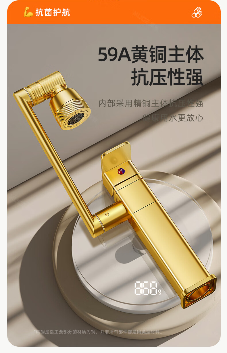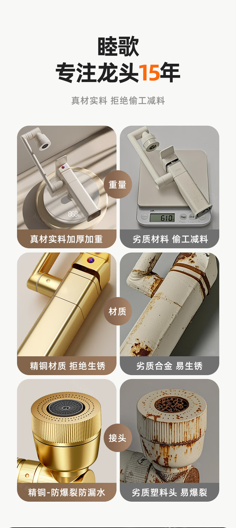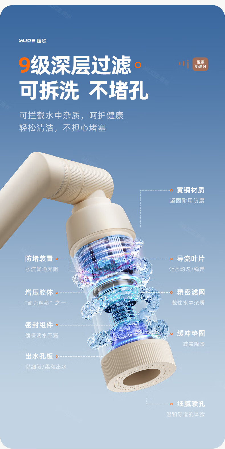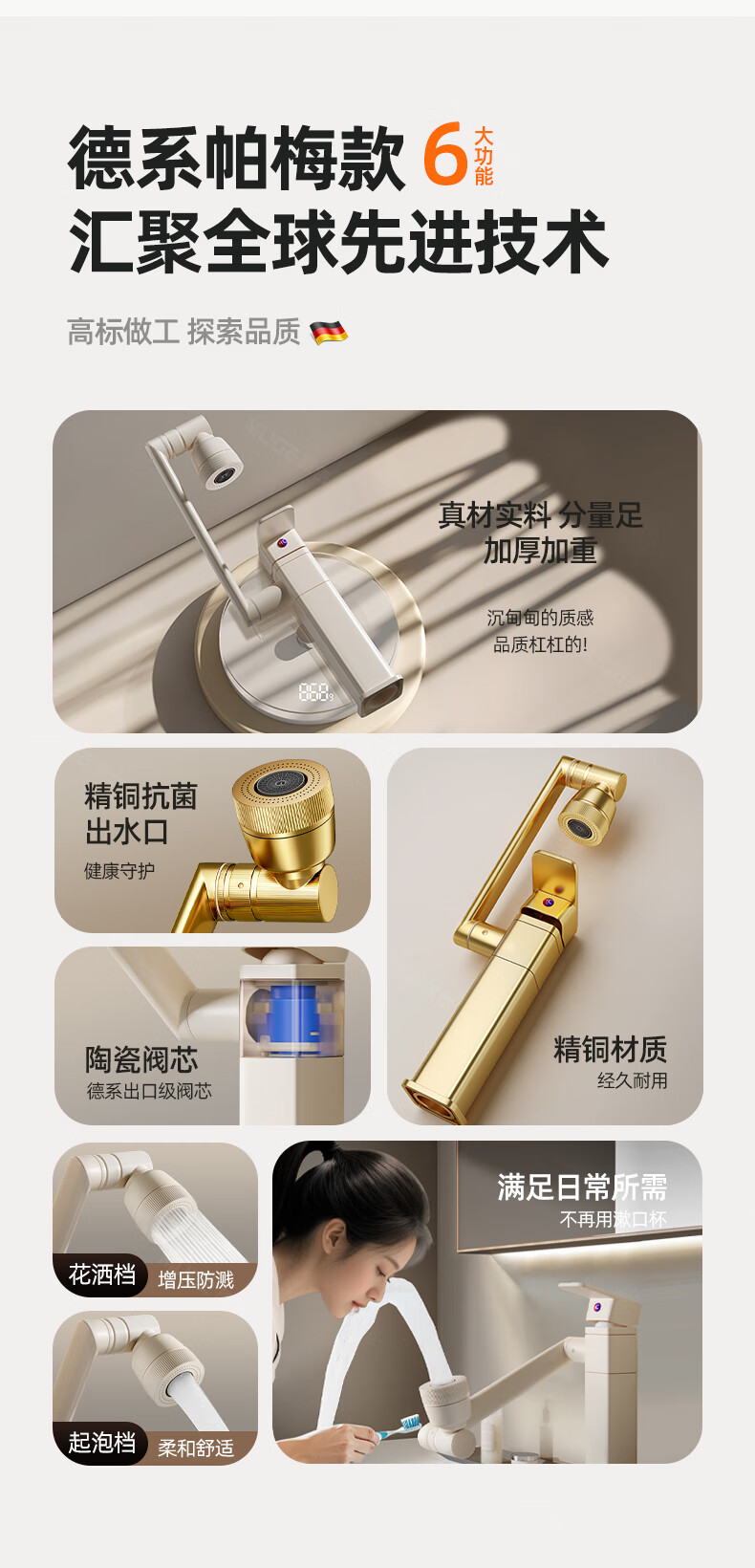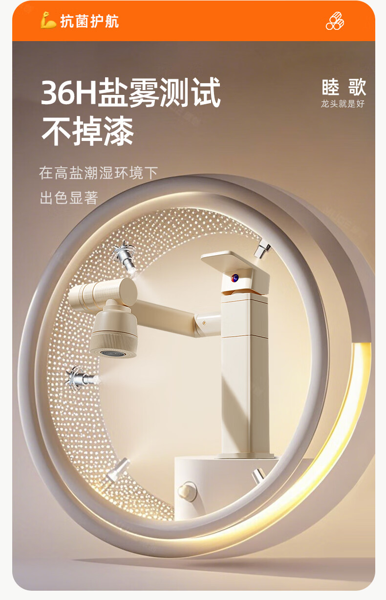 睦歌(MUGE)卫生间洗脸盆面盆水龙头洗手盆冷热浴室柜洗漱台机械臂万向水龙头 全铜加厚【奶油风】厨卫通用水龙头