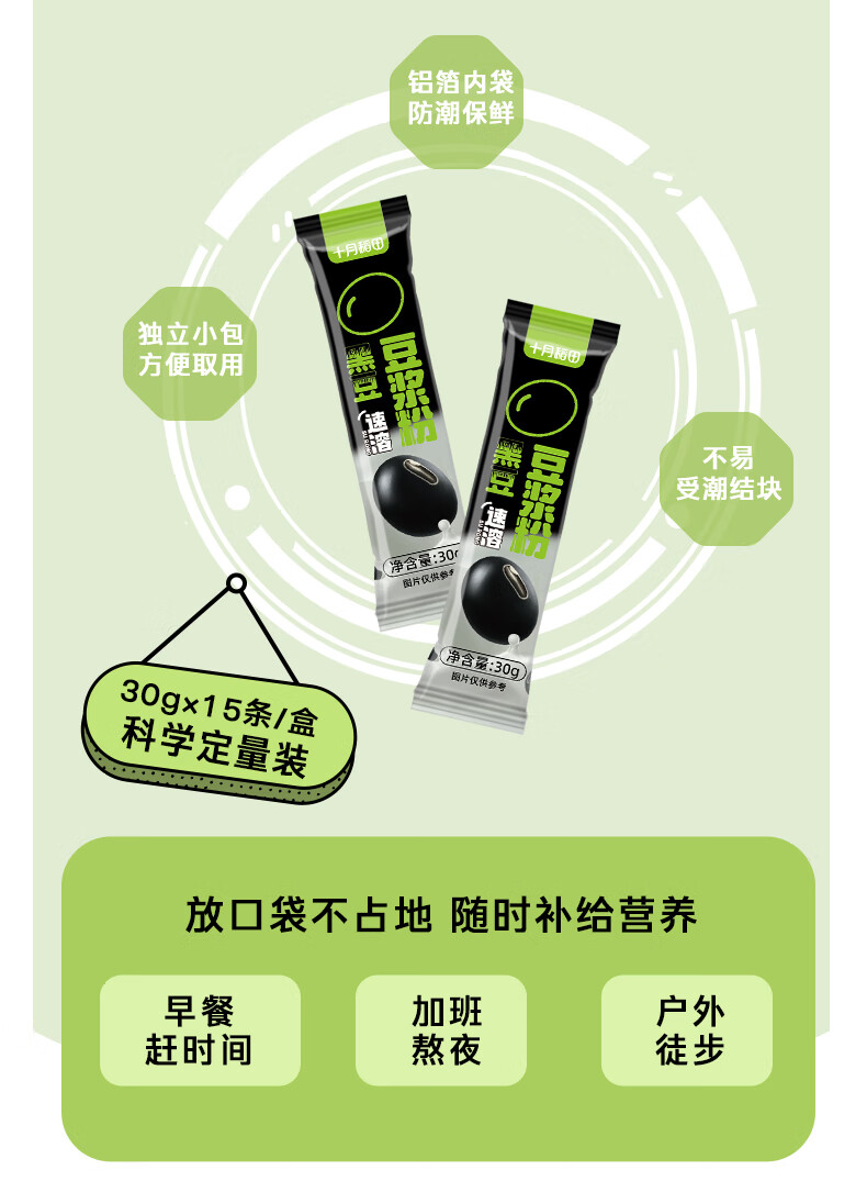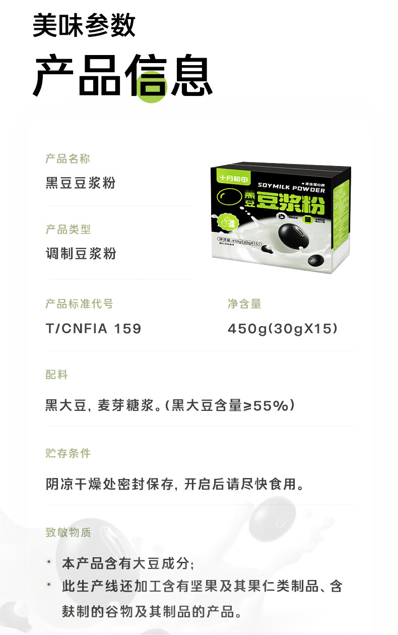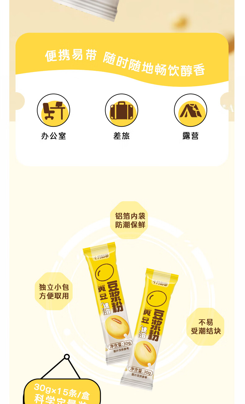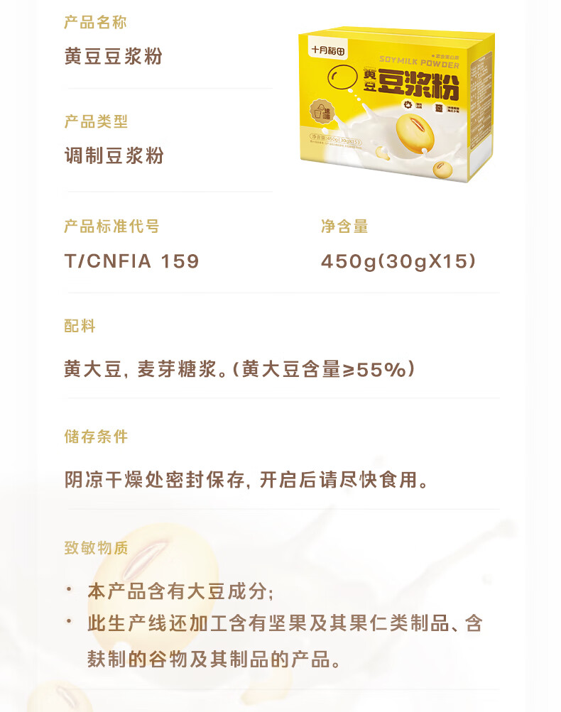 十月稻田 豆浆粉450g 独立包装 便携早餐 3秒速溶 富含高蛋白 黄豆豆浆粉450g(30g*15袋)