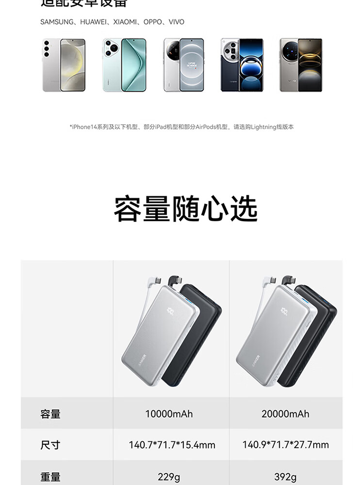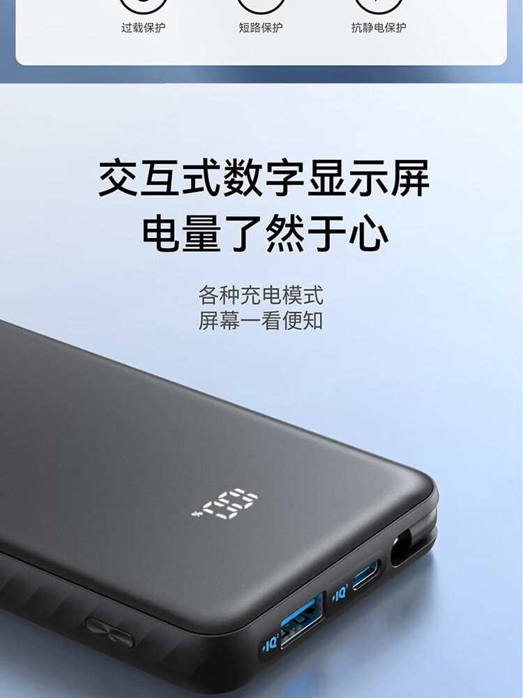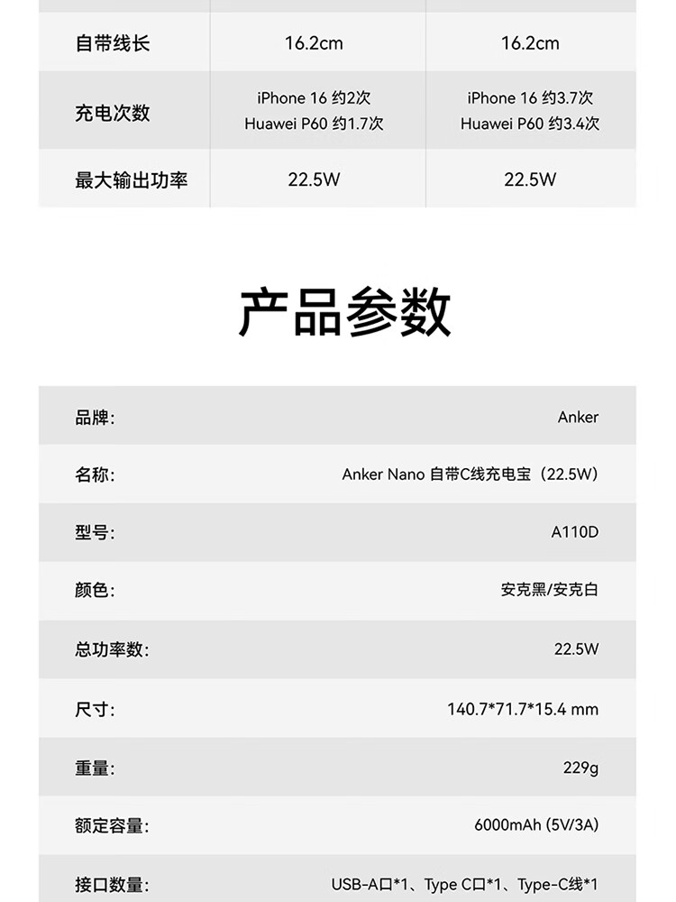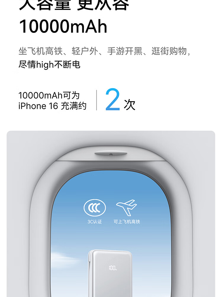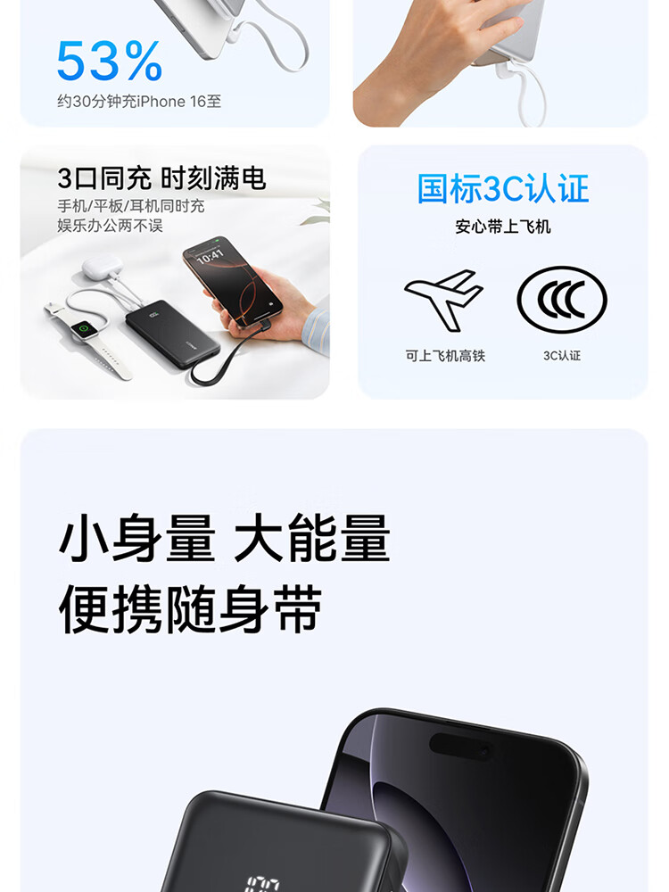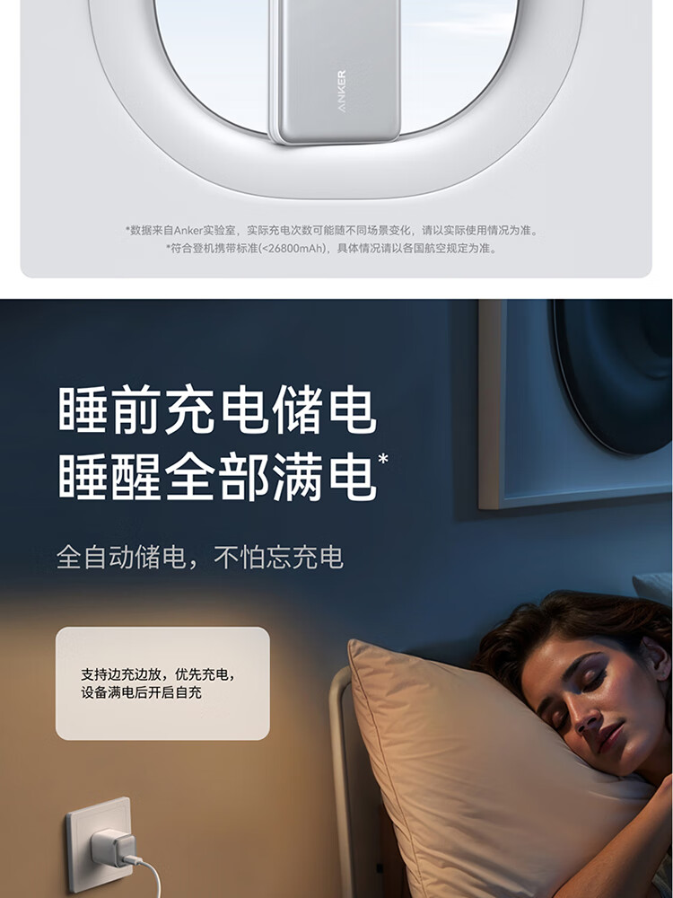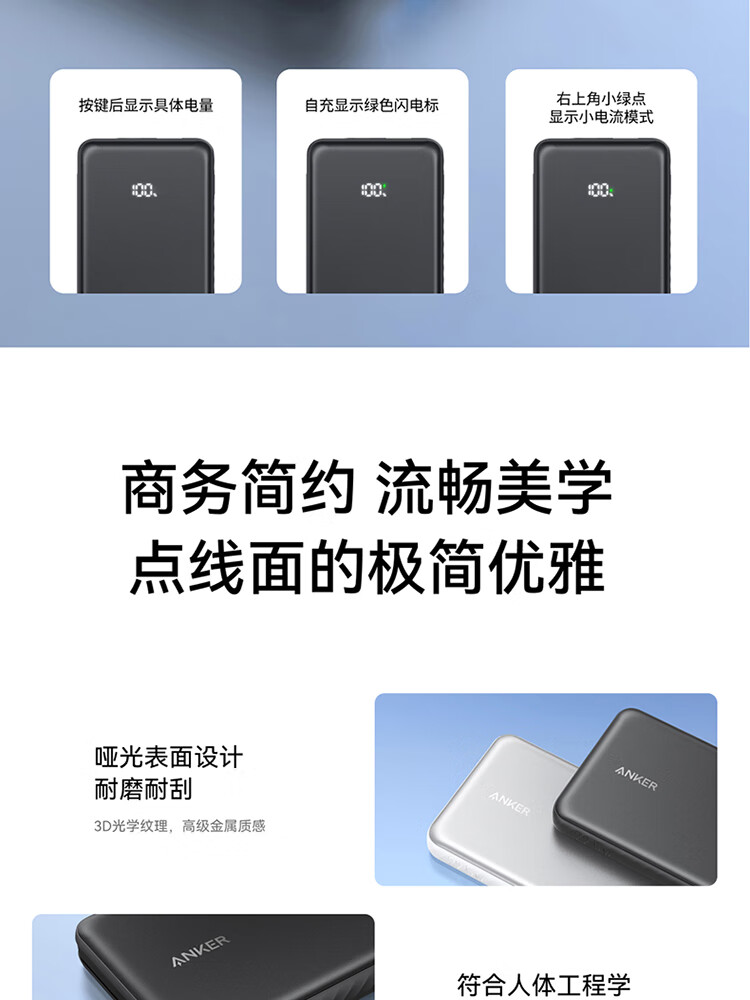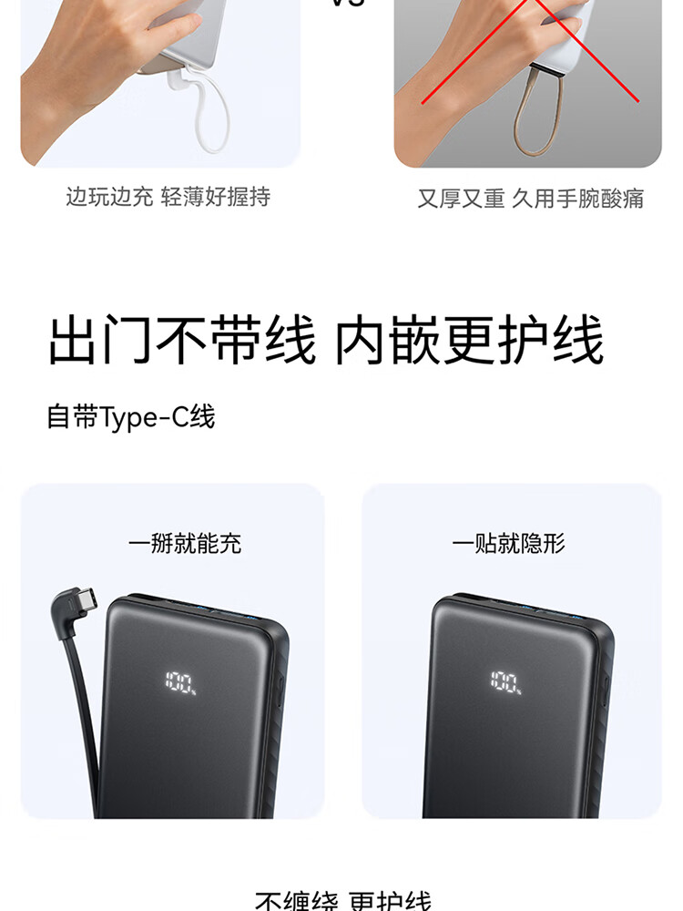 ANKER安克【新3C认证可上飞机,苹果17/iPhone16】自带type-c线充电宝快充10000mAh移动电源黑适用安卓