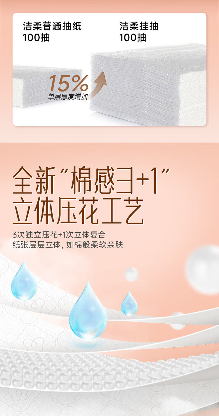 洁柔Face粉百花香味软抽3层100抽可湿水干湿两用软抽hd 3层 300张*24包 整箱装