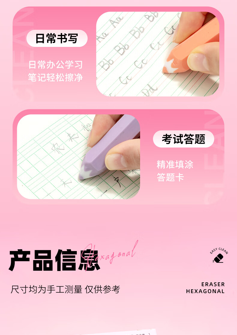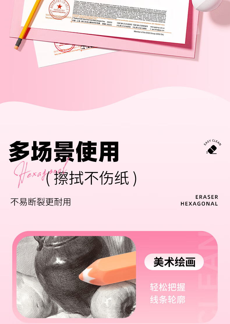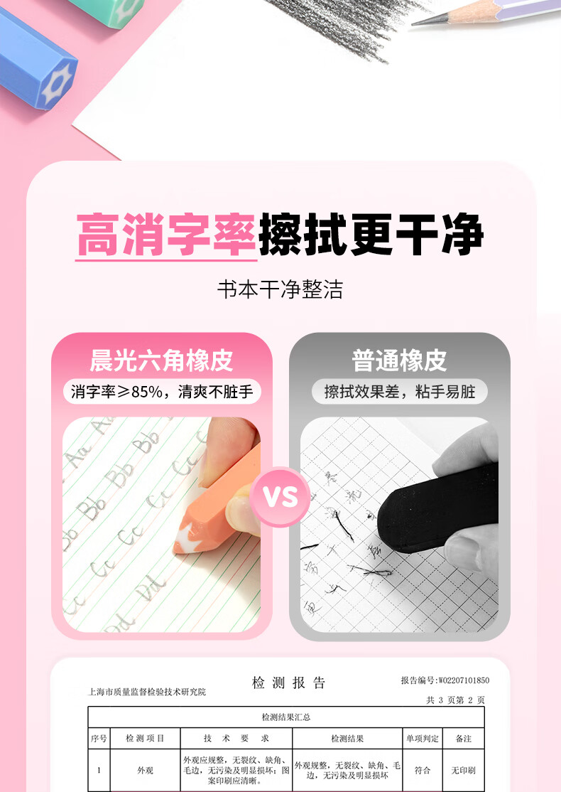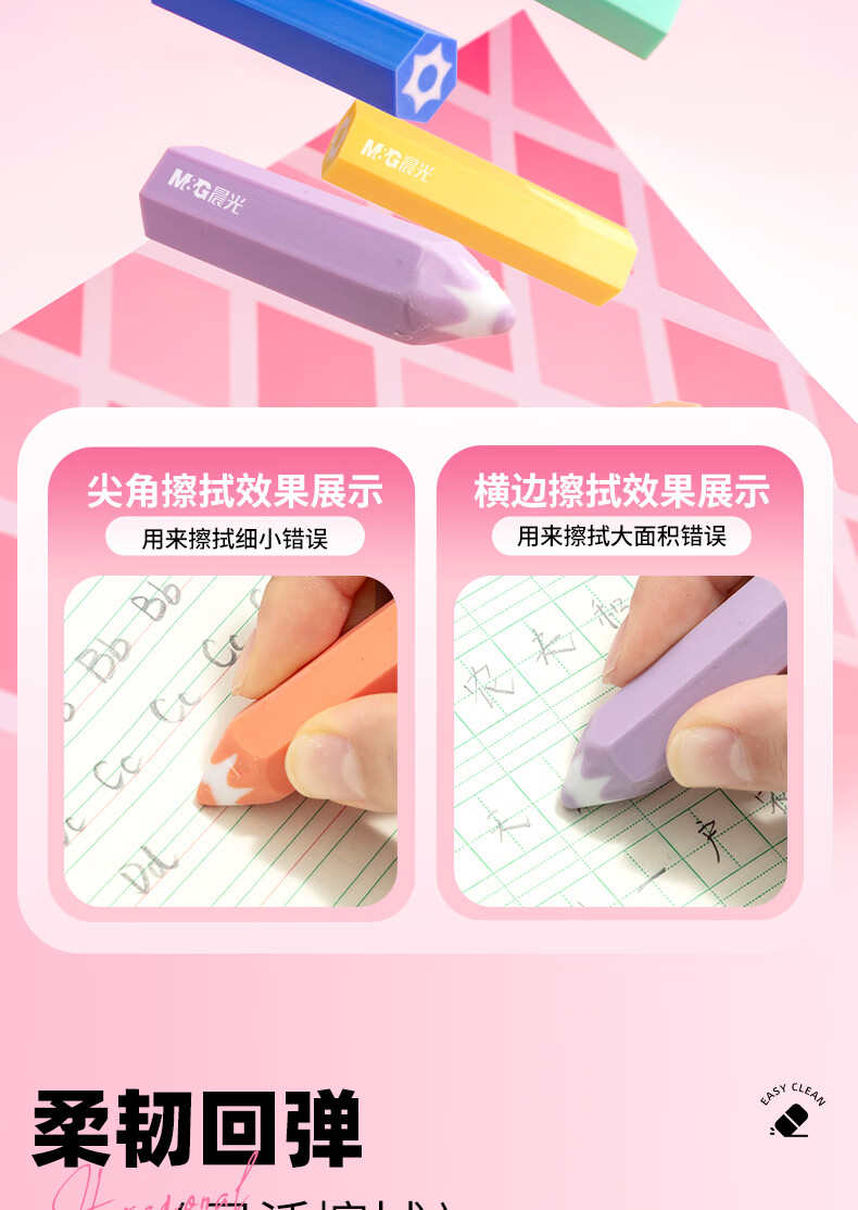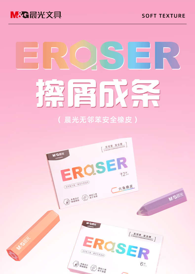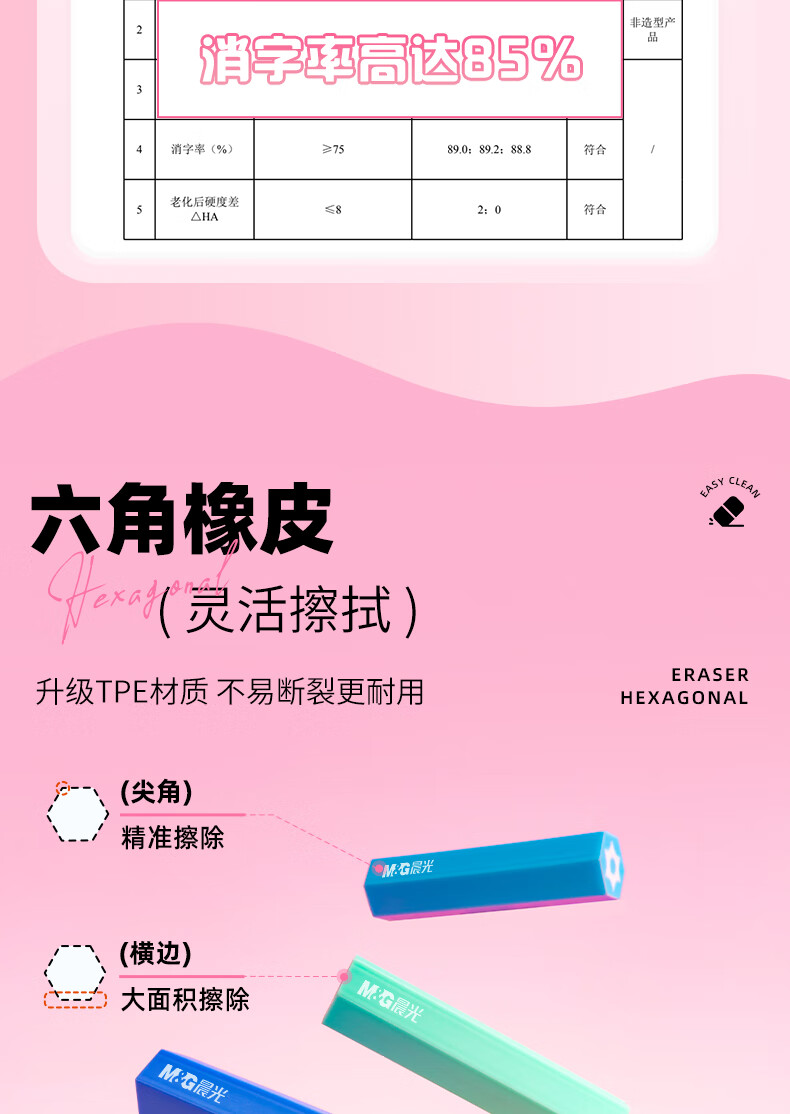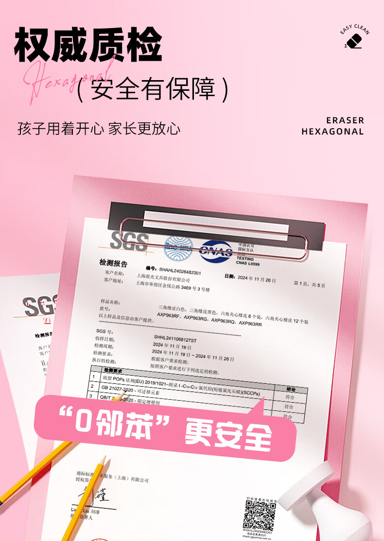 晨光(M&G)文具橡皮擦无屑干净小学生专用铅笔橡皮 彩色六角夹心橡皮6个装 AXP963RQ