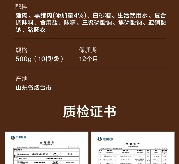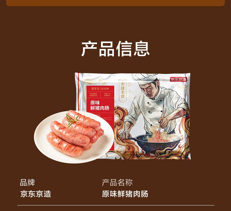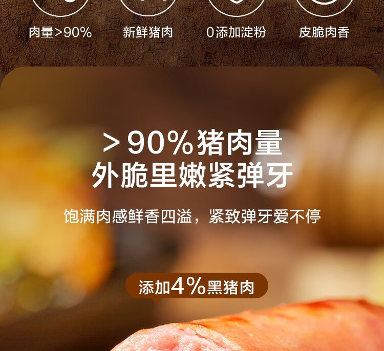 京东京造 原味猪肉肠500g/10根 0添加淀粉黑猪鲜肉肠纯肉烤肠