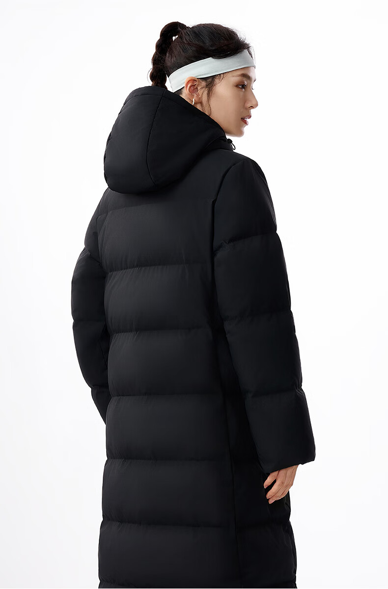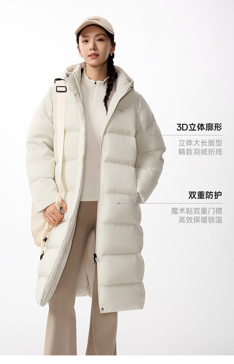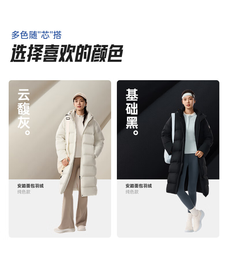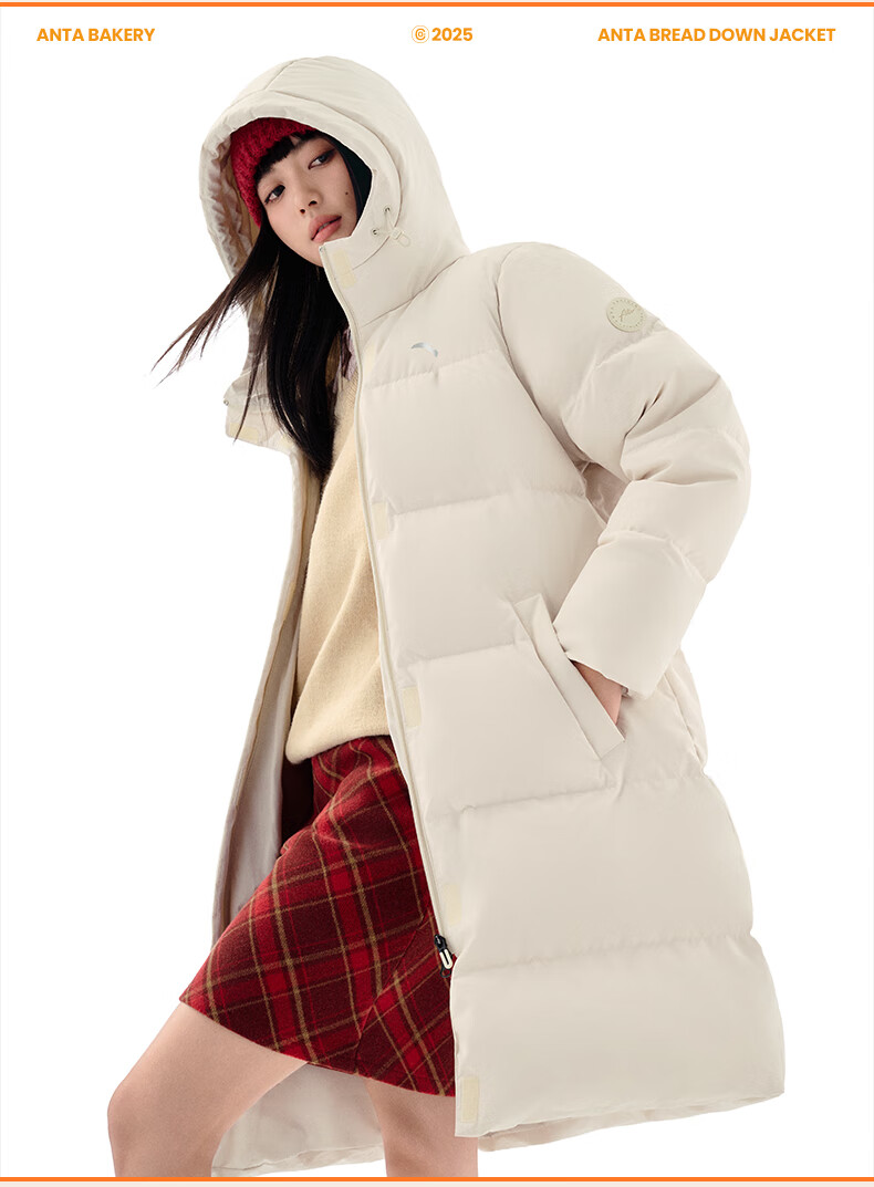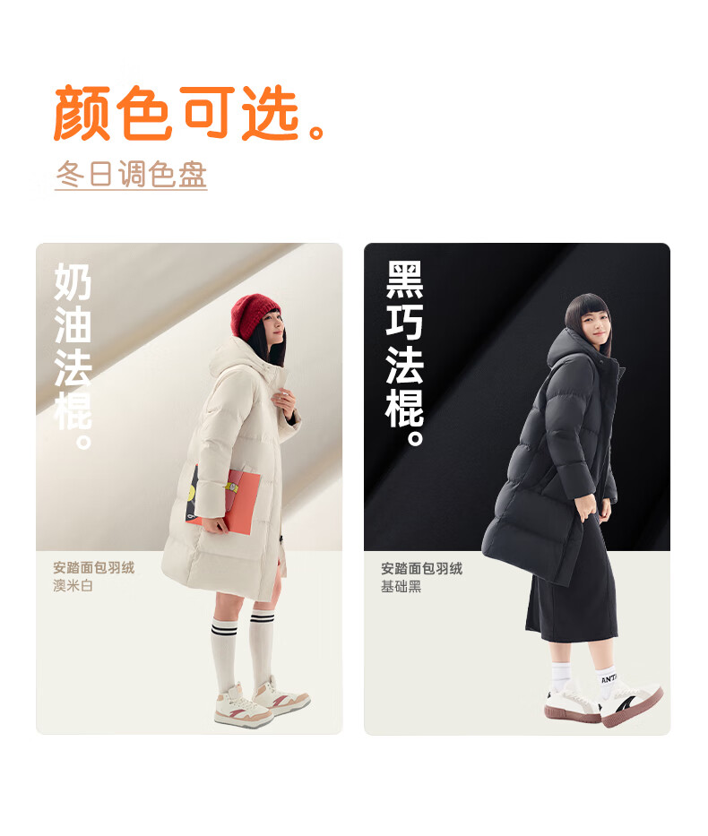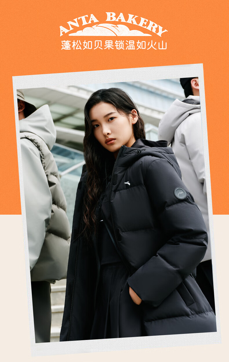 安踏(ANTA)面包羽绒丨中长款连帽羽绒服女装冬季新款防泼水加厚鸭绒保暖外套 【黑巧法棍-中长款】基础黑-3 M (充绒量175)