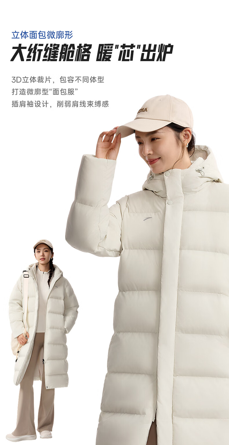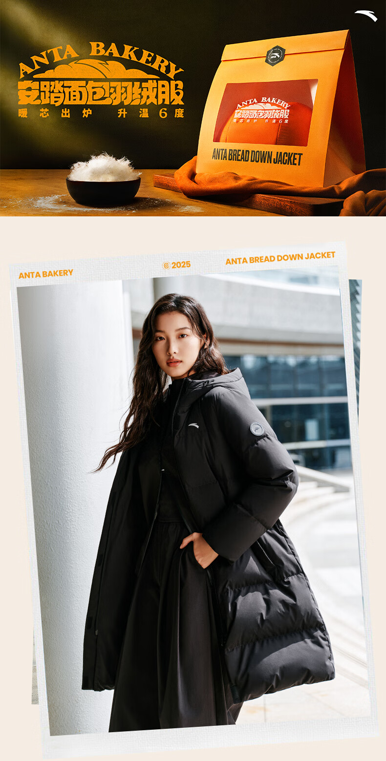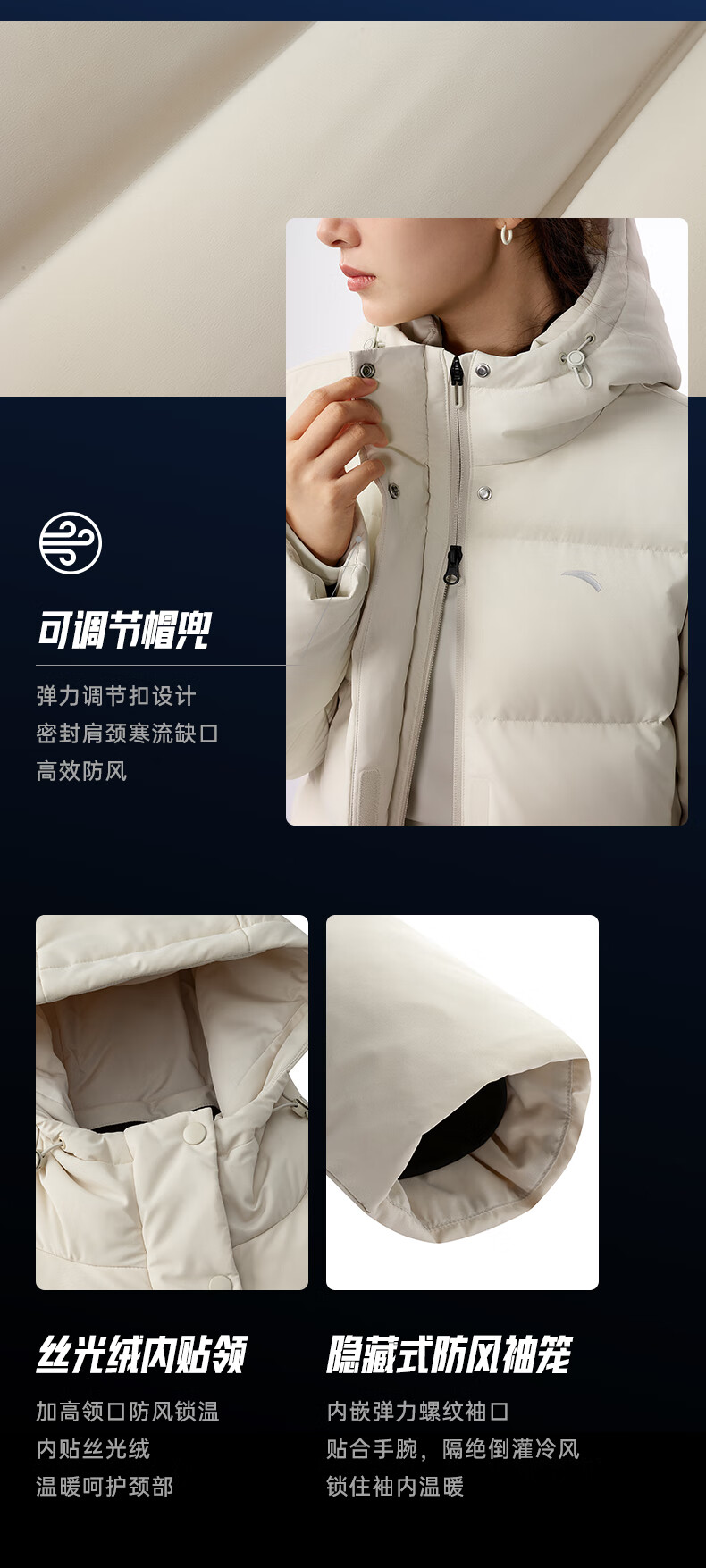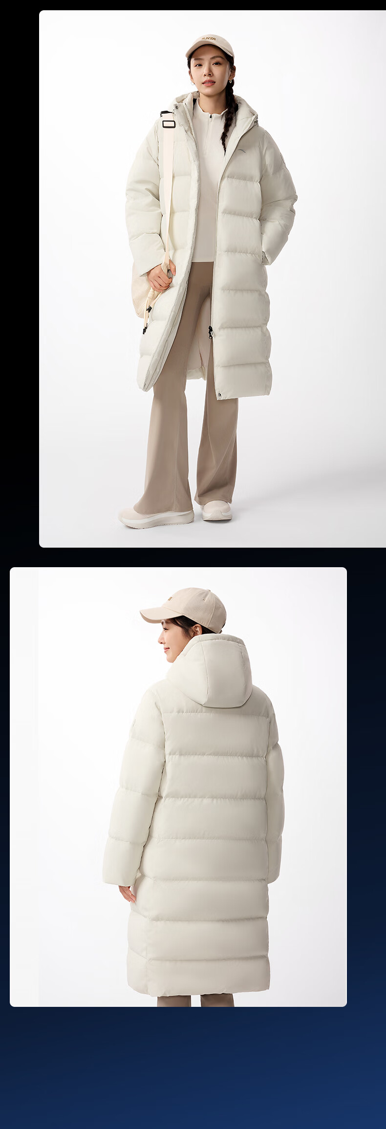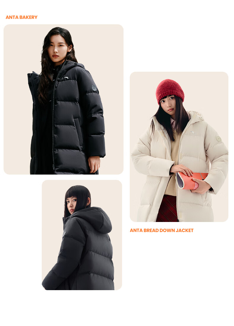 安踏(ANTA)面包羽绒丨中长款连帽羽绒服女装冬季新款防泼水加厚鸭绒保暖外套 【黑巧法棍-中长款】基础黑-3 M (充绒量175)