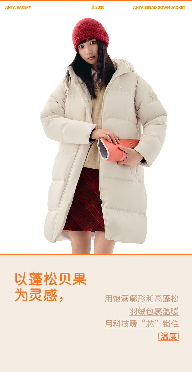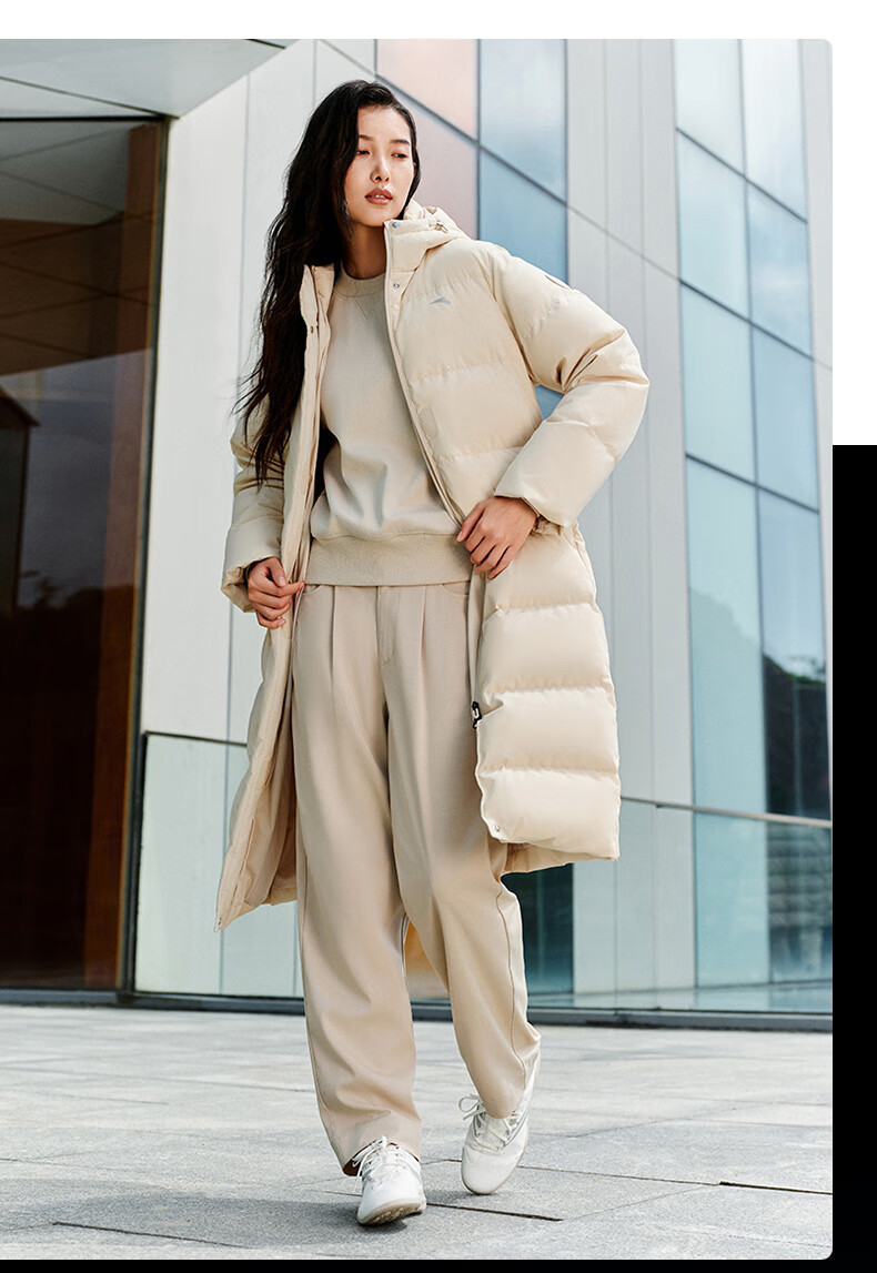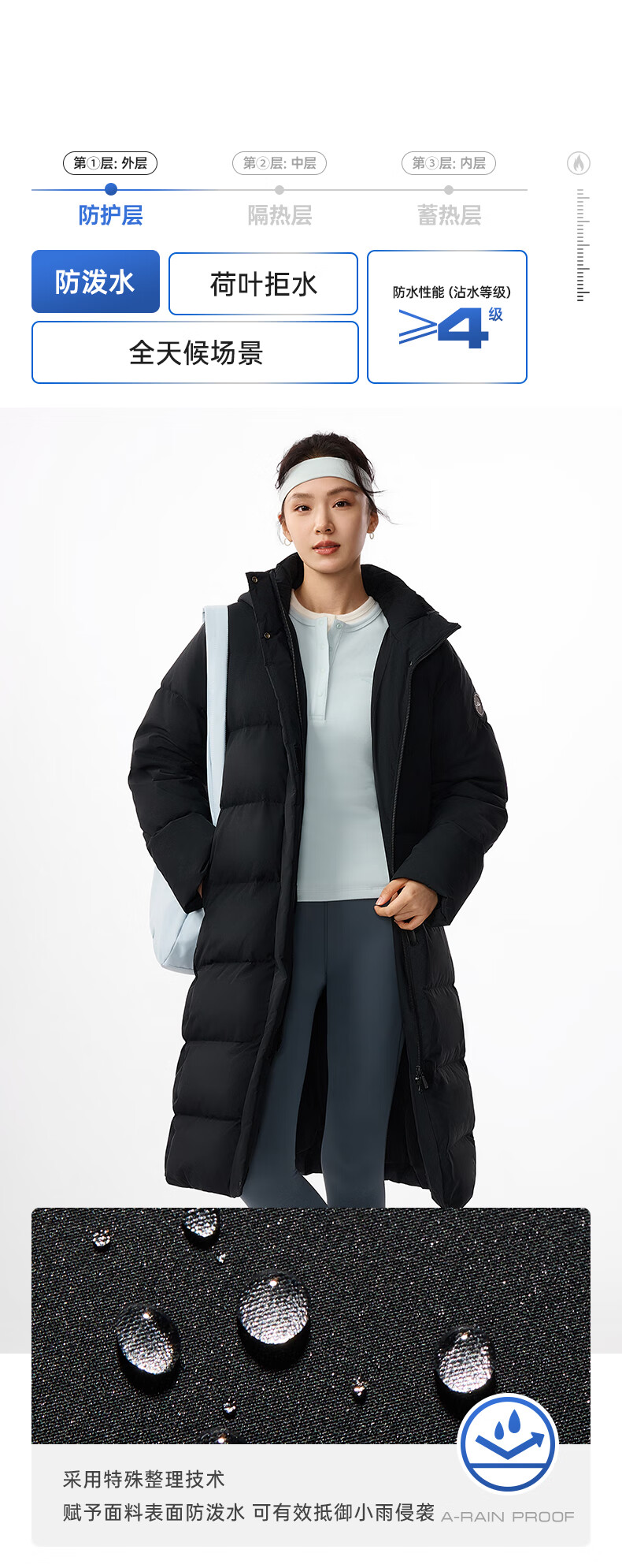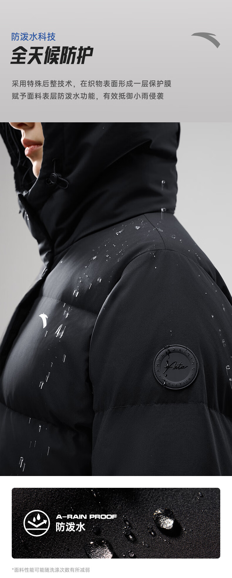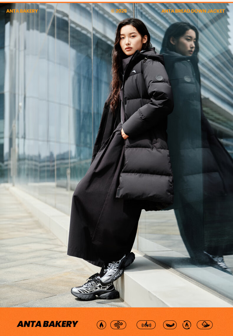 安踏(ANTA)面包羽绒丨中长款连帽羽绒服女装冬季新款防泼水加厚鸭绒保暖外套 【黑巧法棍-中长款】基础黑-3 M (充绒量175)