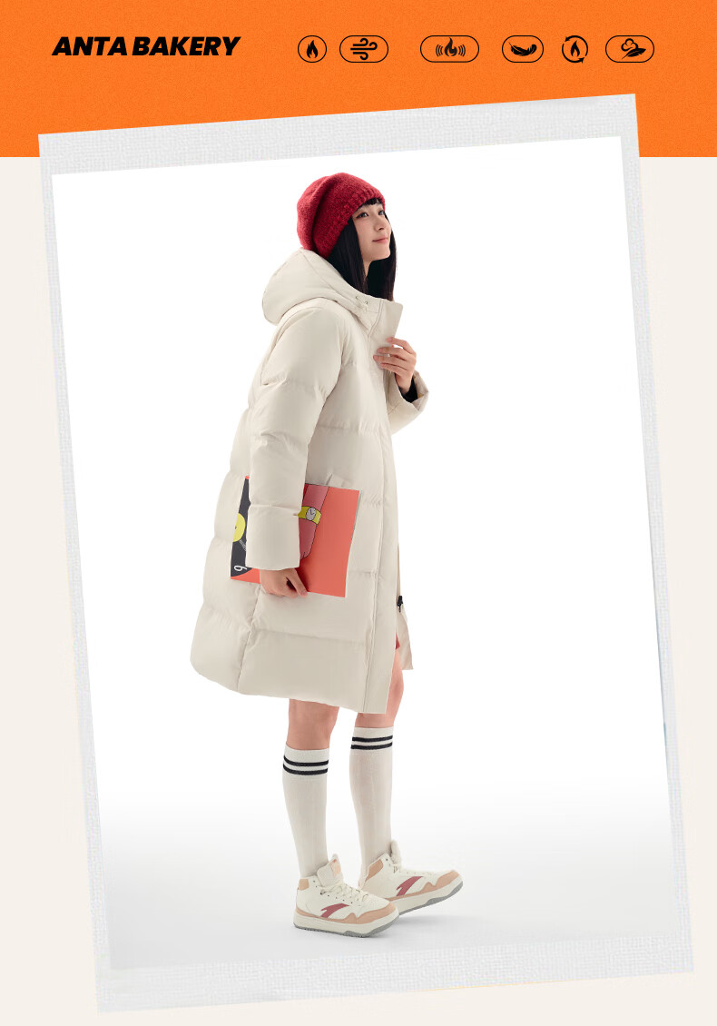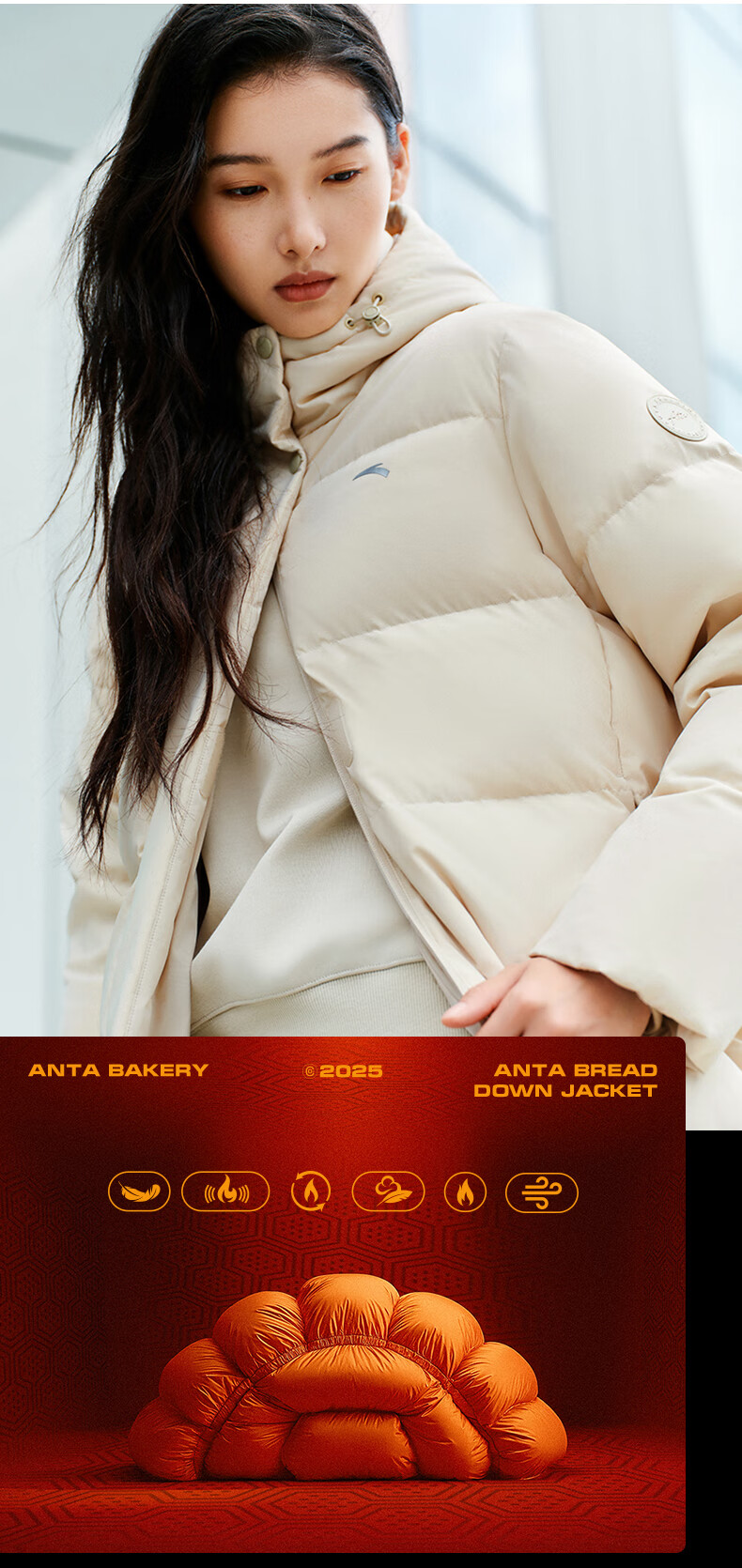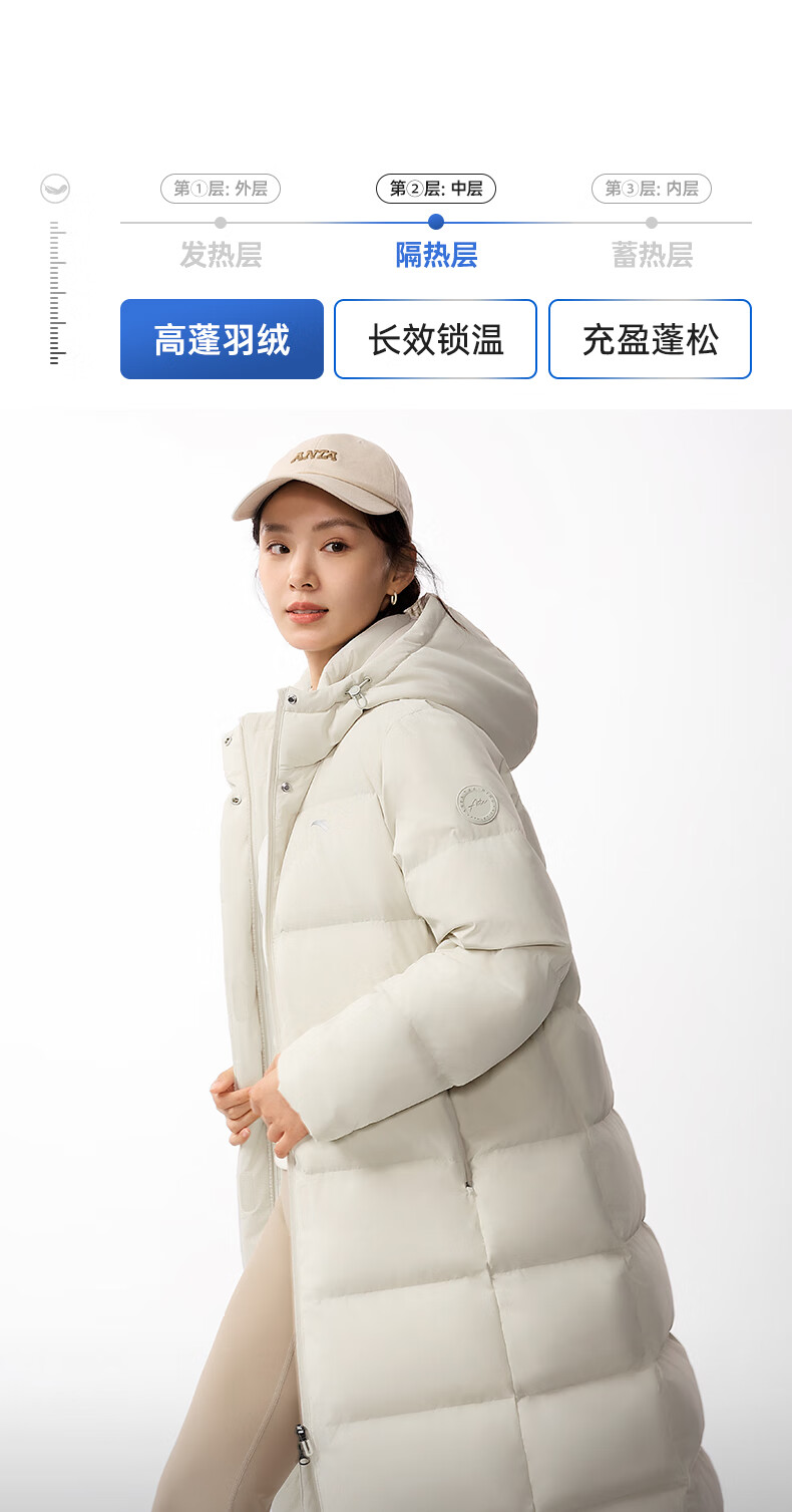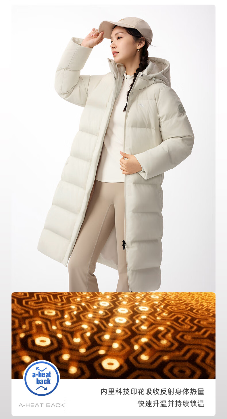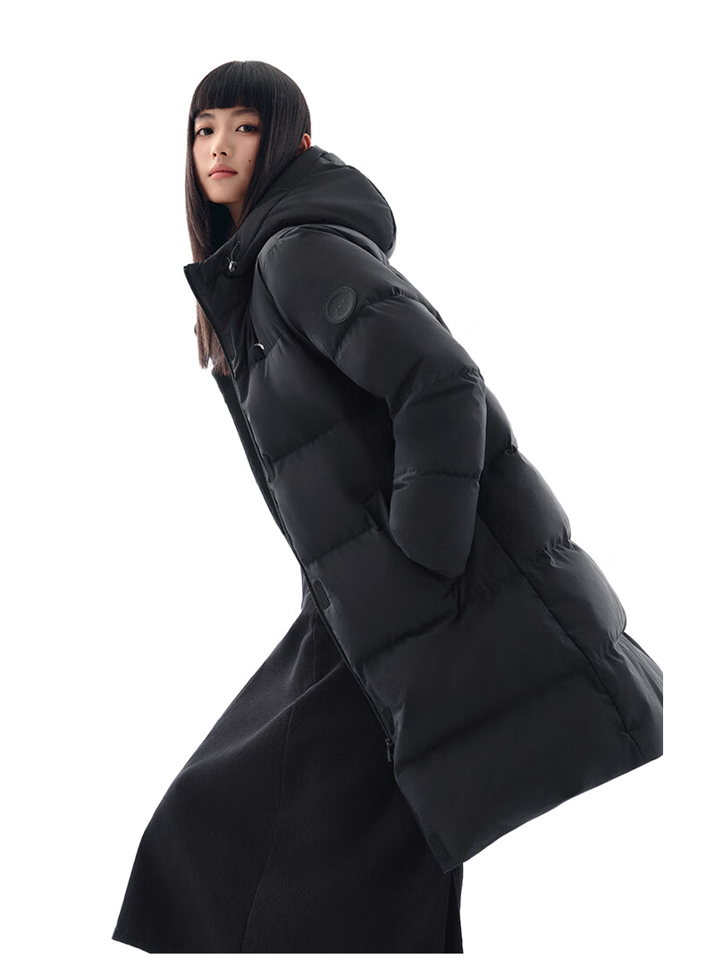 安踏(ANTA)面包羽绒丨中长款连帽羽绒服女装冬季新款防泼水加厚鸭绒保暖外套 【黑巧法棍-中长款】基础黑-3 M (充绒量175)