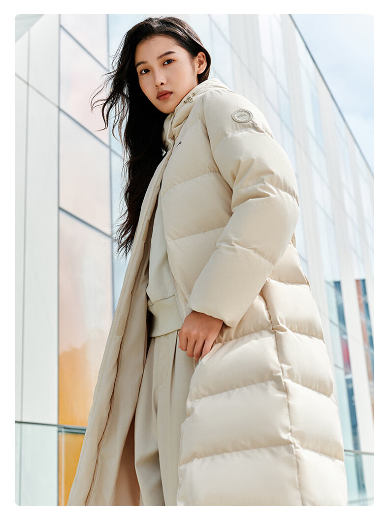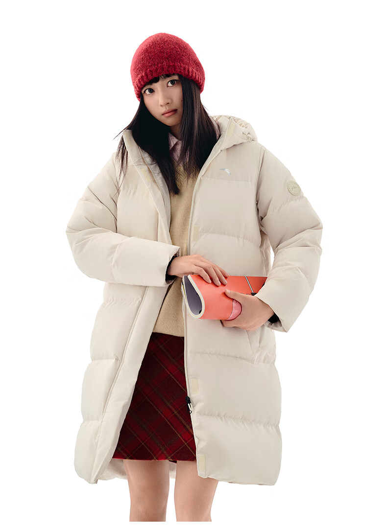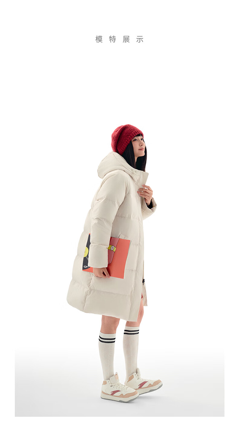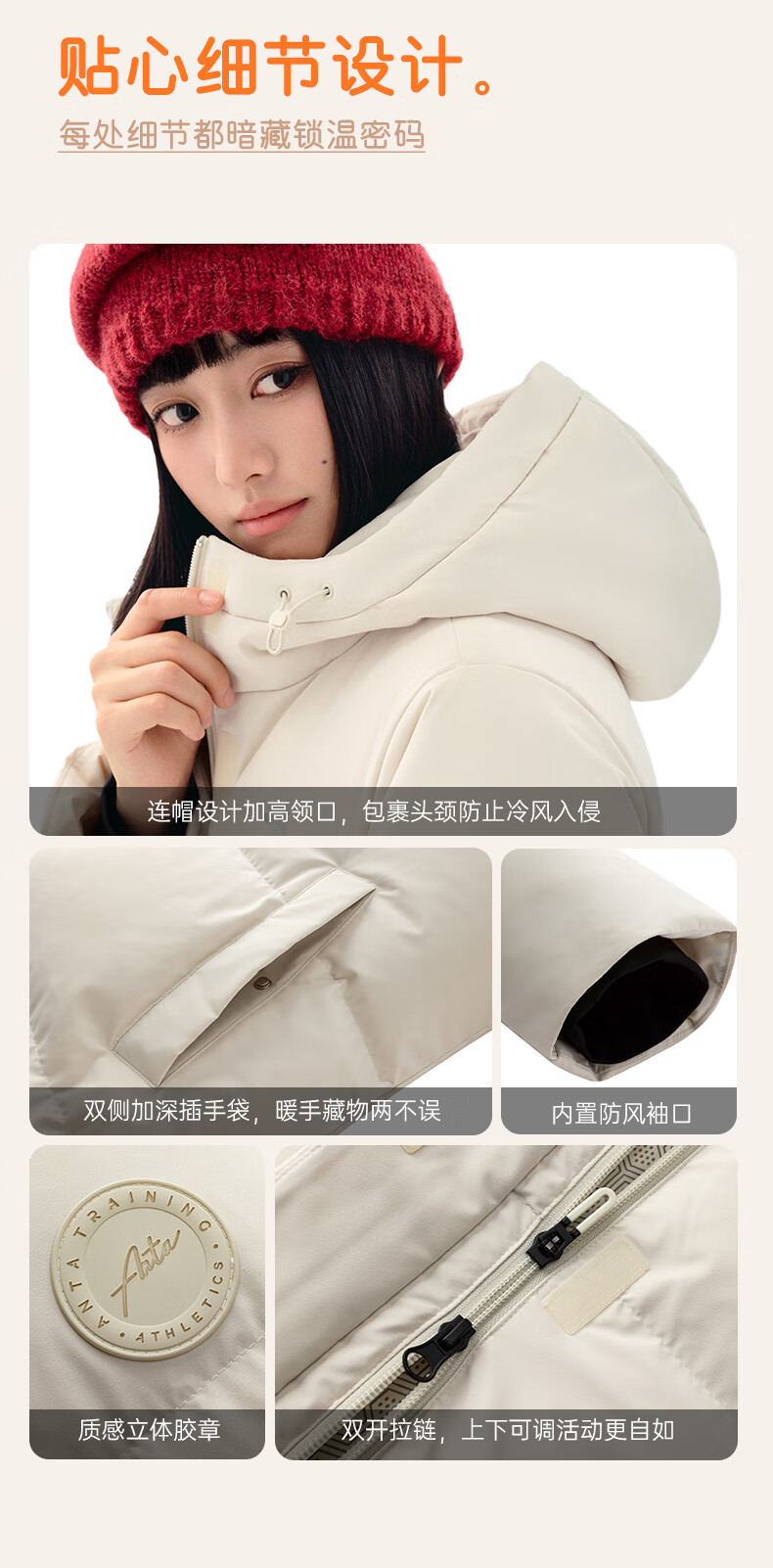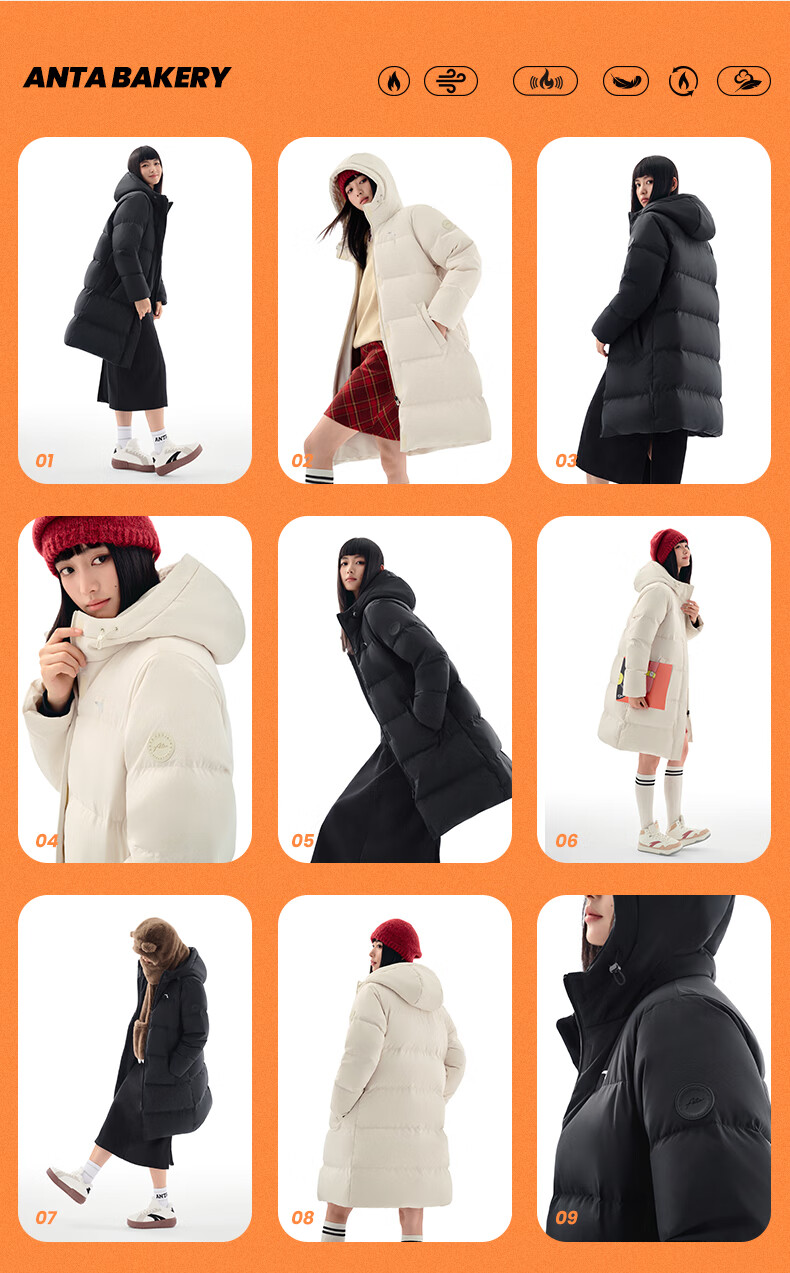 安踏(ANTA)面包羽绒丨中长款连帽羽绒服女装冬季新款防泼水加厚鸭绒保暖外套 【黑巧法棍-中长款】基础黑-3 M (充绒量175)