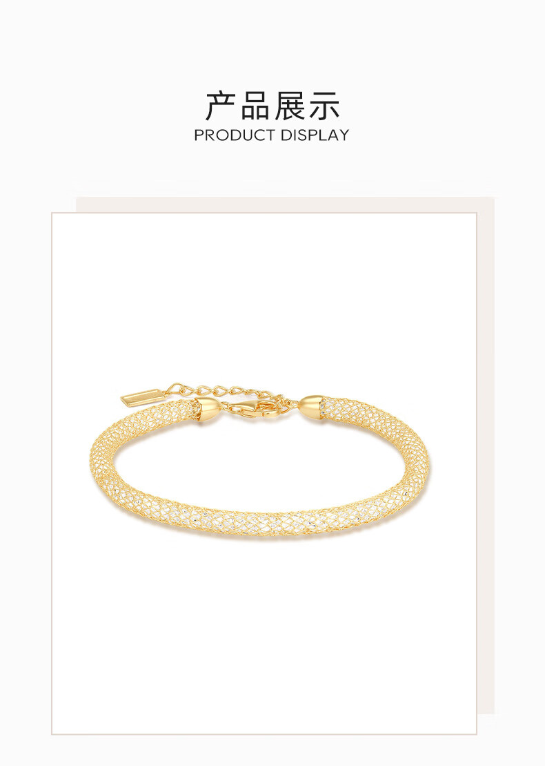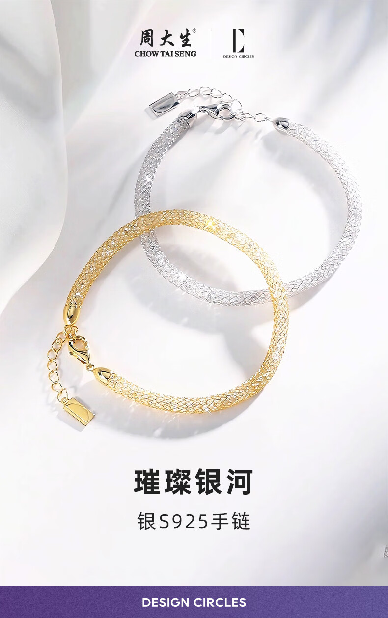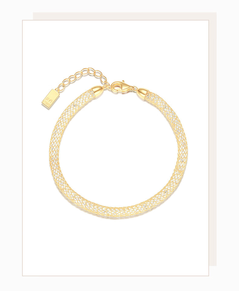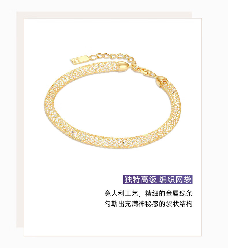 周大生*DC金色钱袋子手链纯银S925细闪缠绕网格生日礼物送女友【金色】