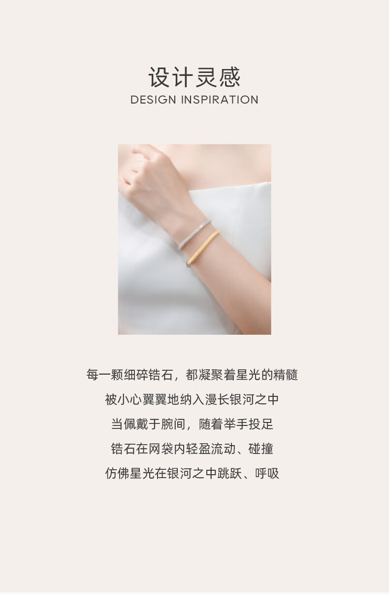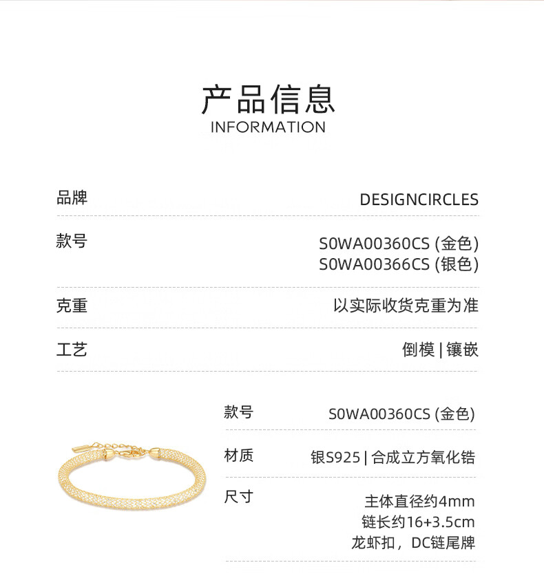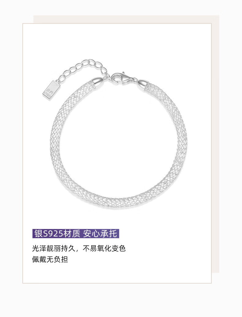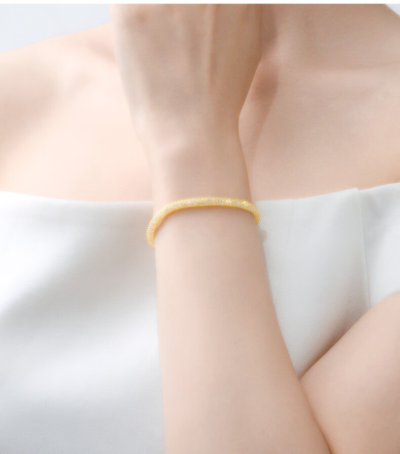 周大生*DC金色钱袋子手链纯银S925细闪缠绕网格生日礼物送女友【金色】