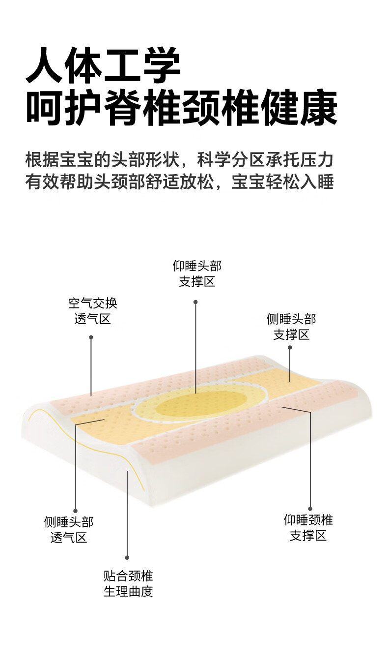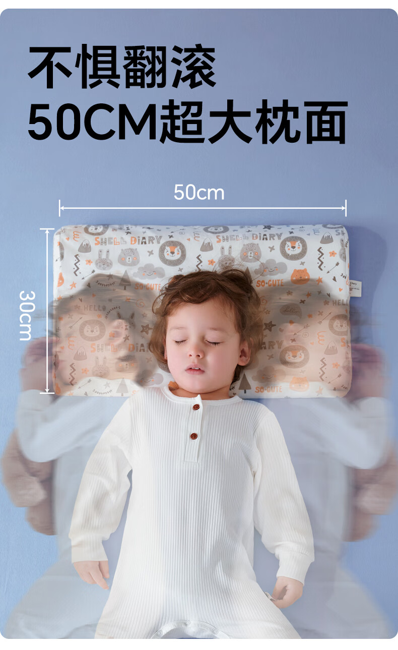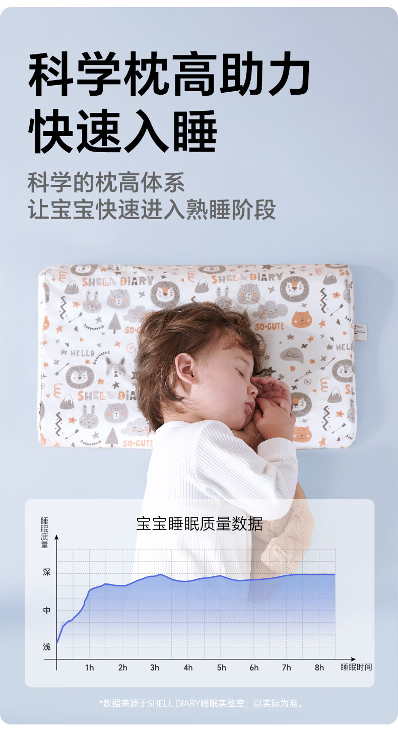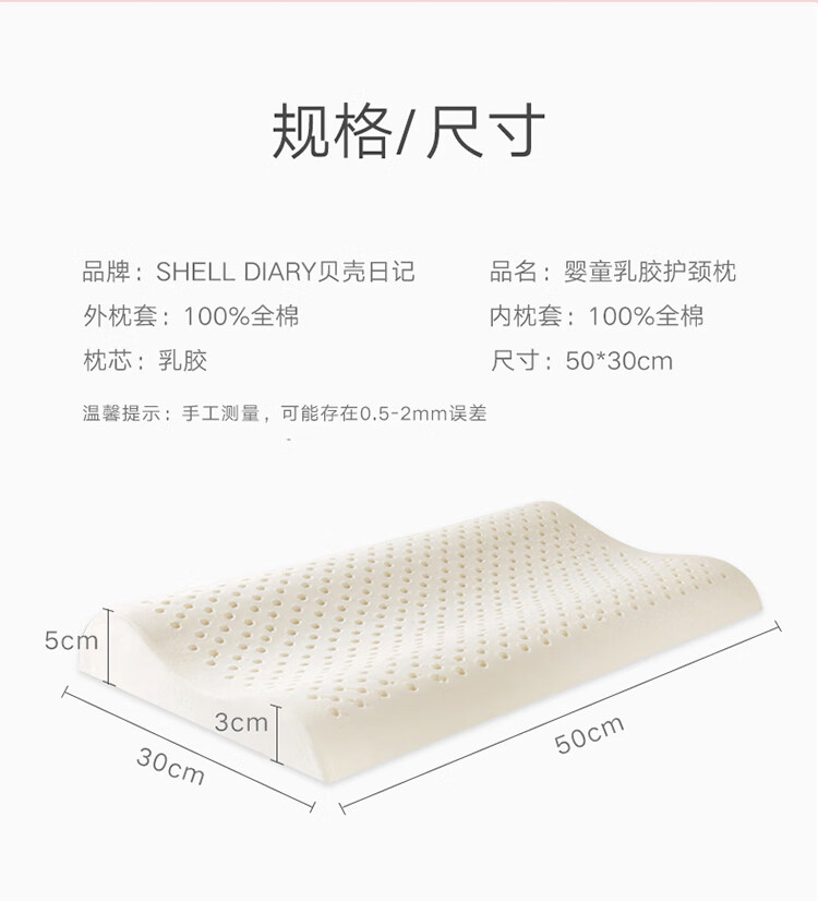 贝壳日记泰国天然儿童乳胶枕头0-1-3-6-12岁宝宝婴儿护颈枕头
