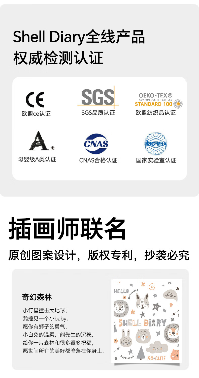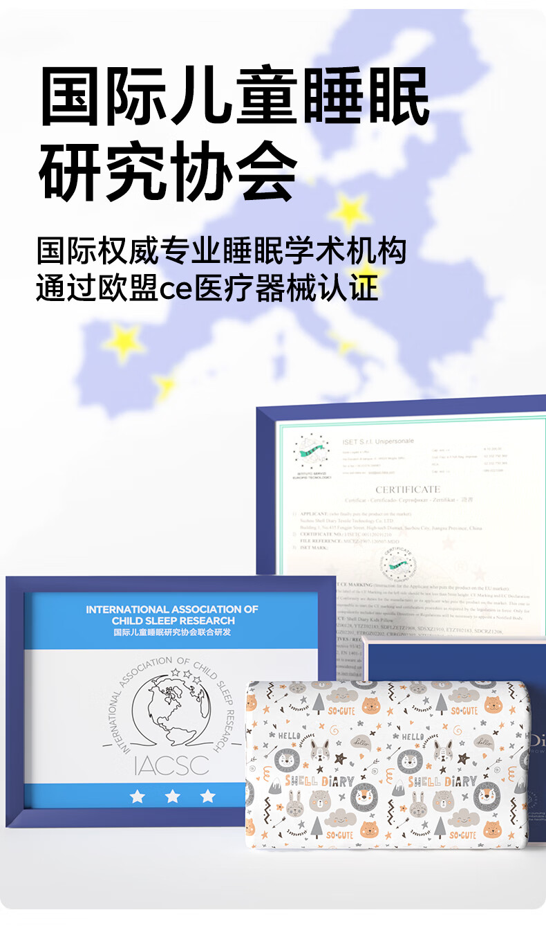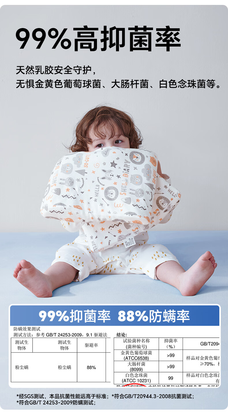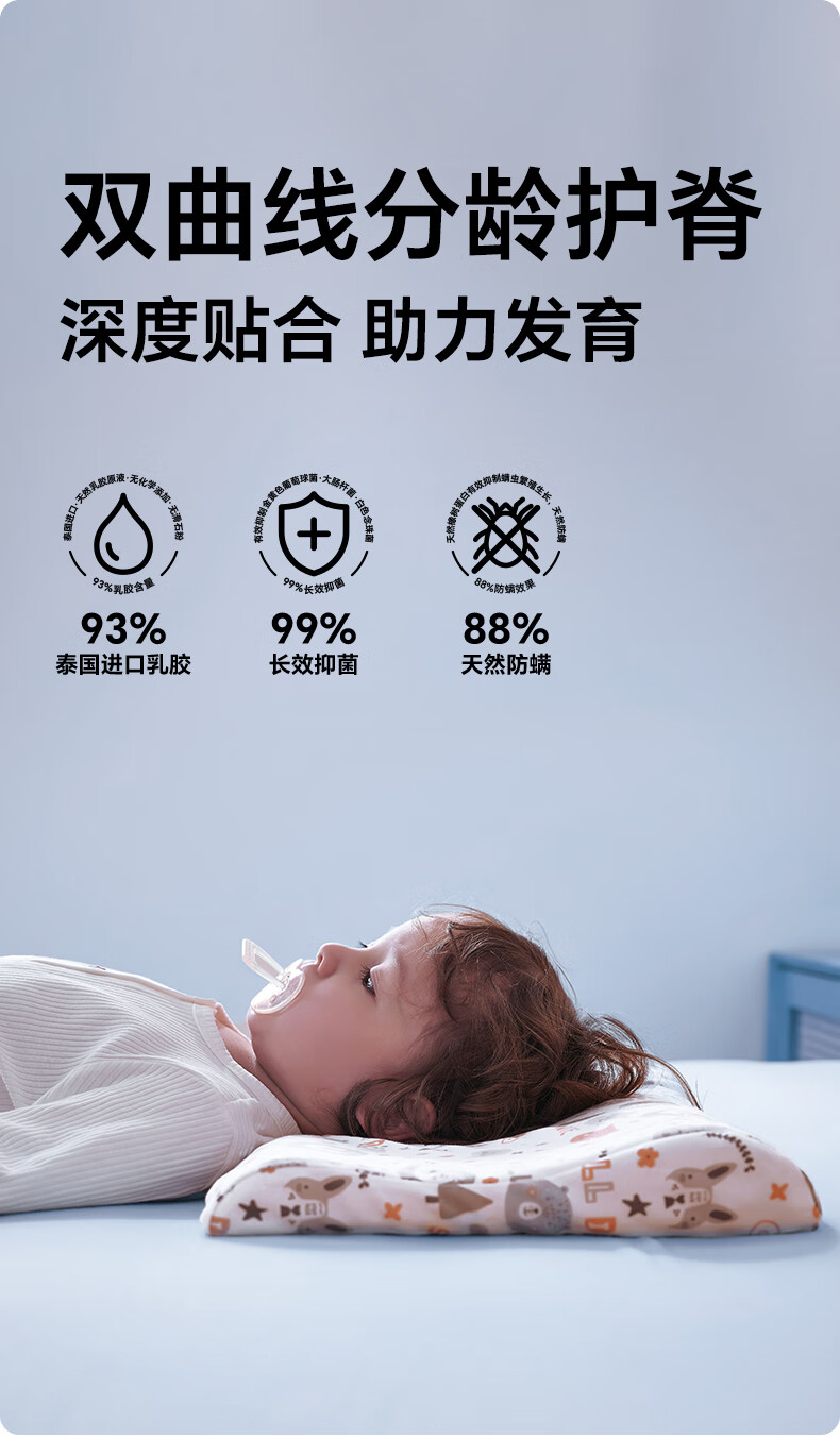 贝壳日记泰国天然儿童乳胶枕头0-1-3-6-12岁宝宝婴儿护颈枕头